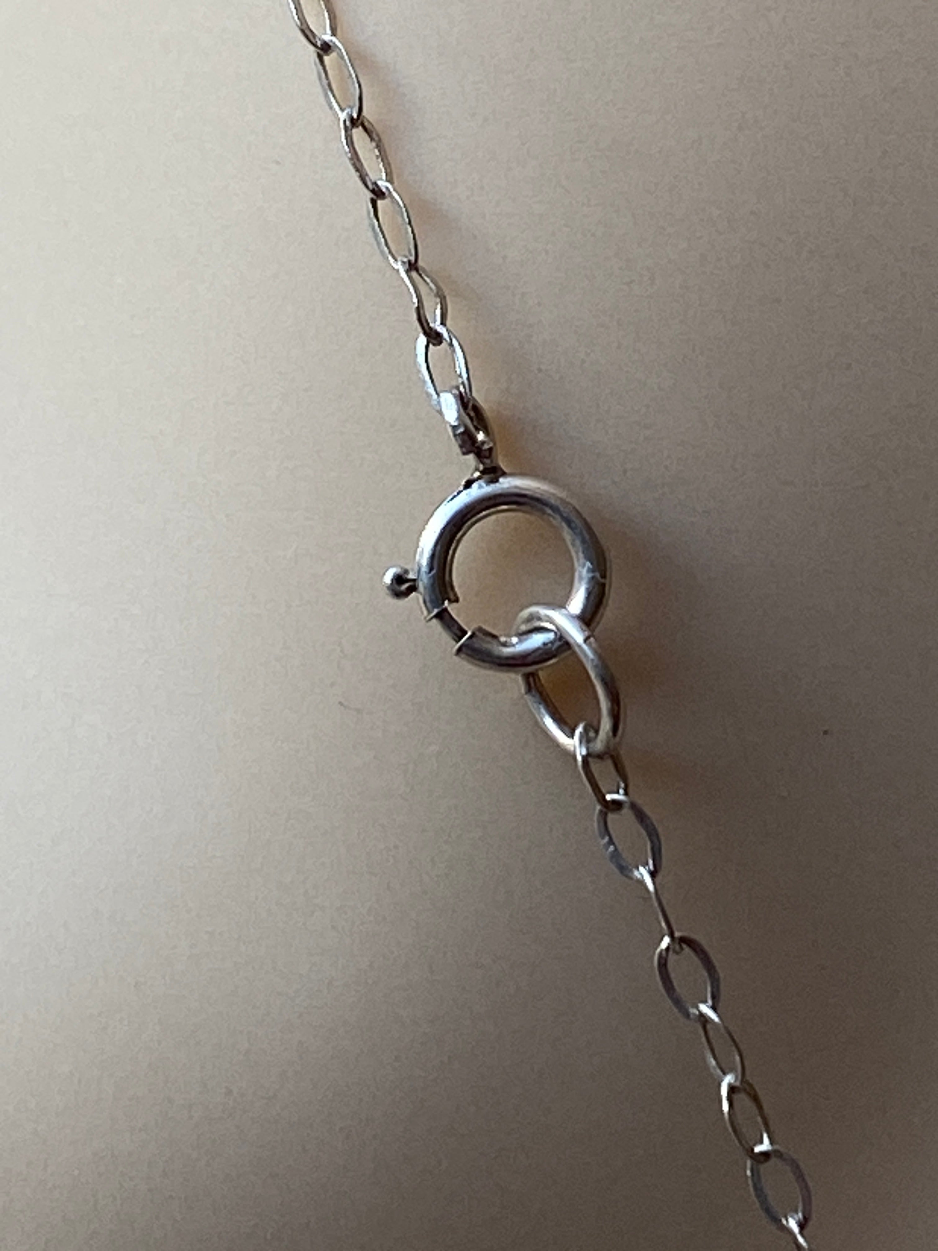 Suspended from a sterling silver 16 Inch chain with bolt ring fastening