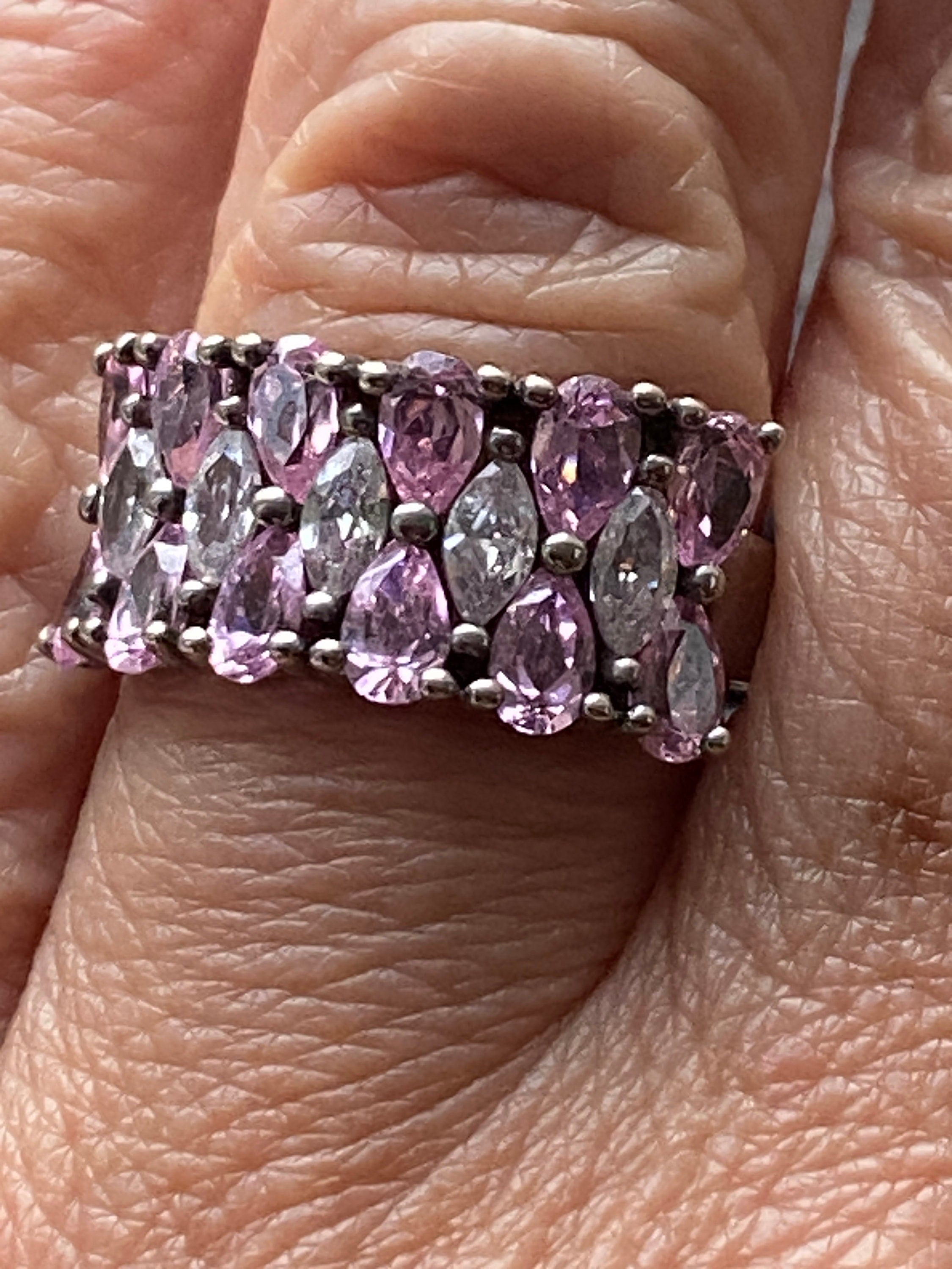 Pink & White Wide Band Ring Set With Cubic Zirconia In Sterling Silver Size P or 7 3/4 US.