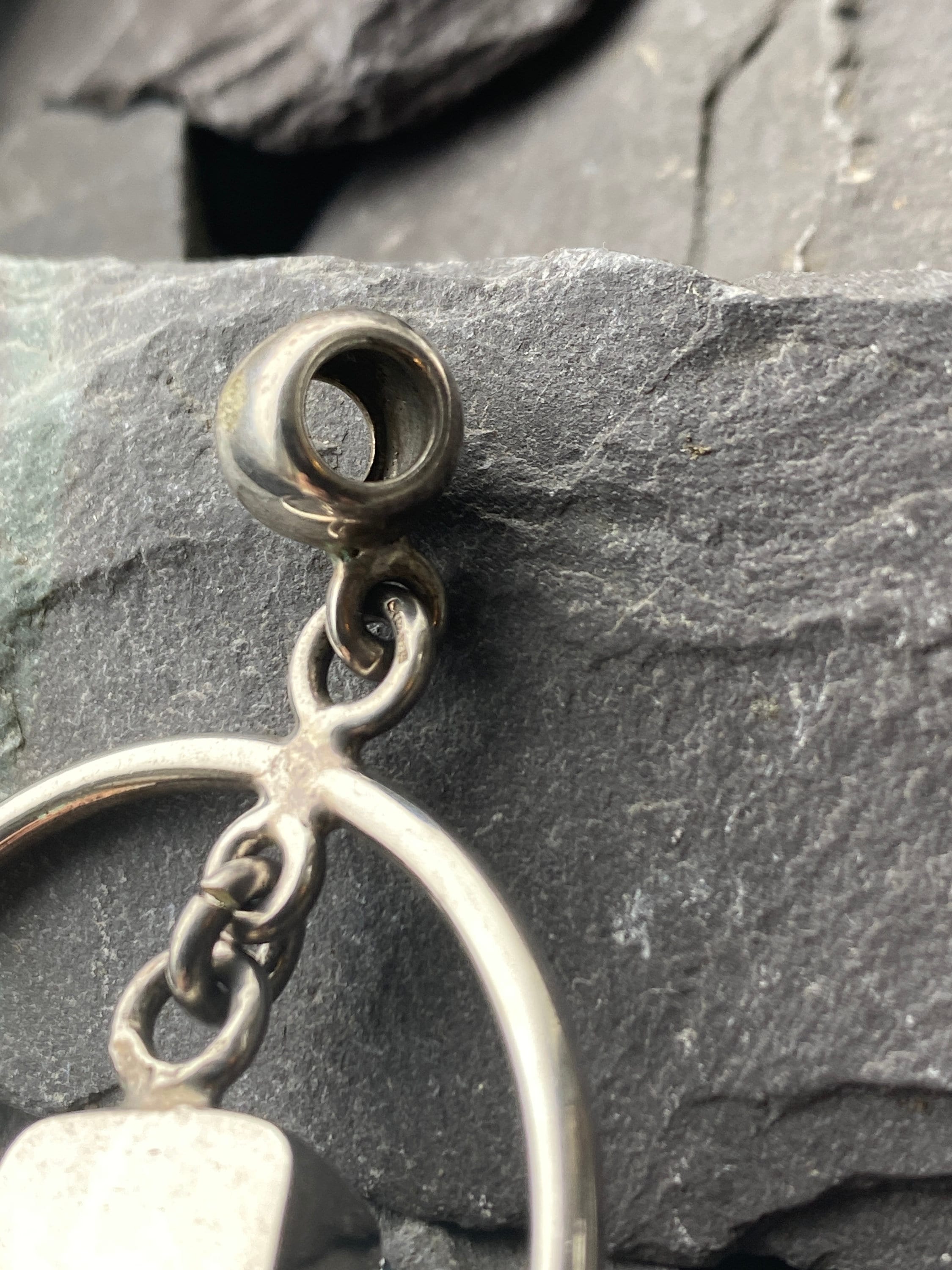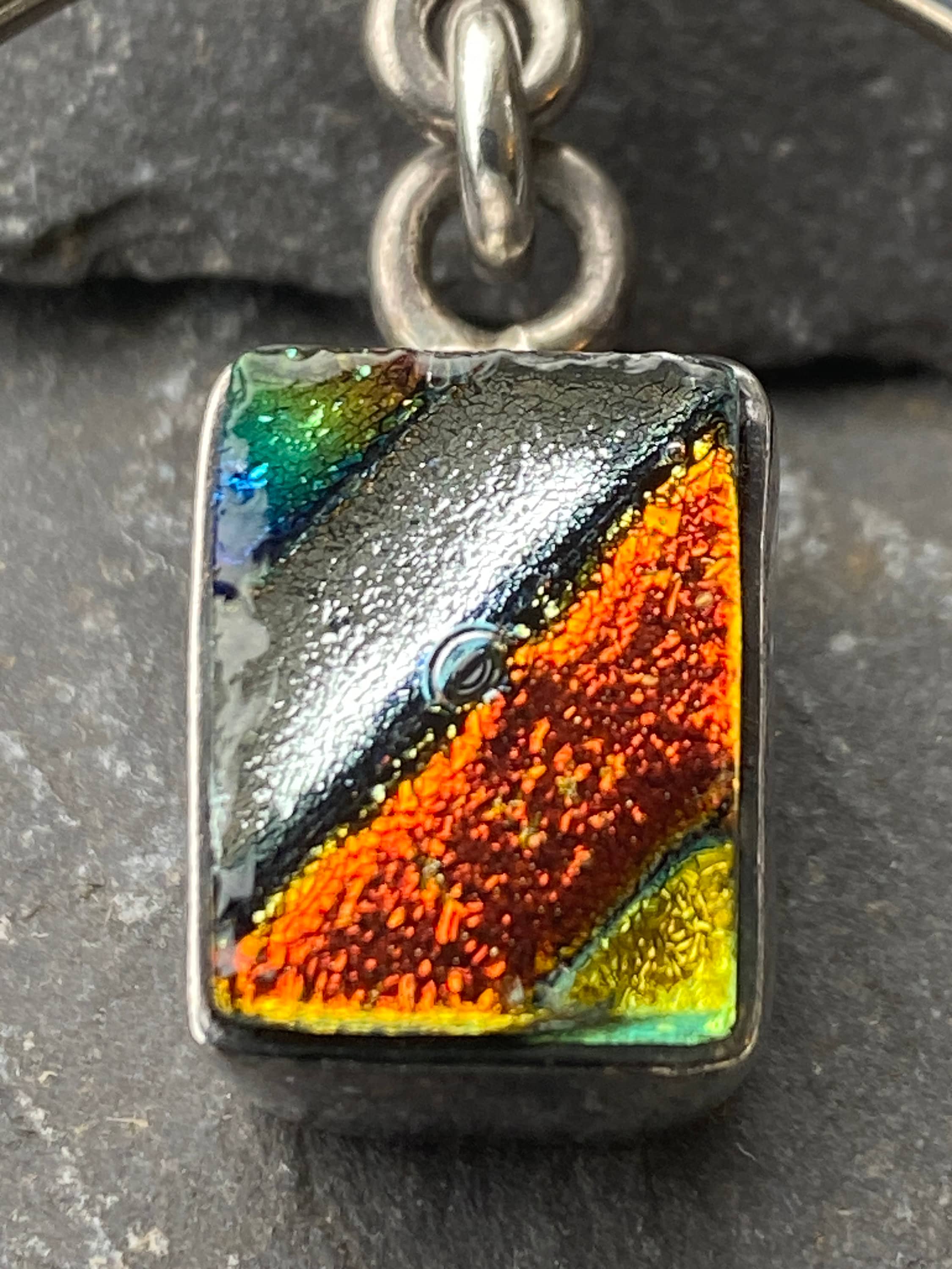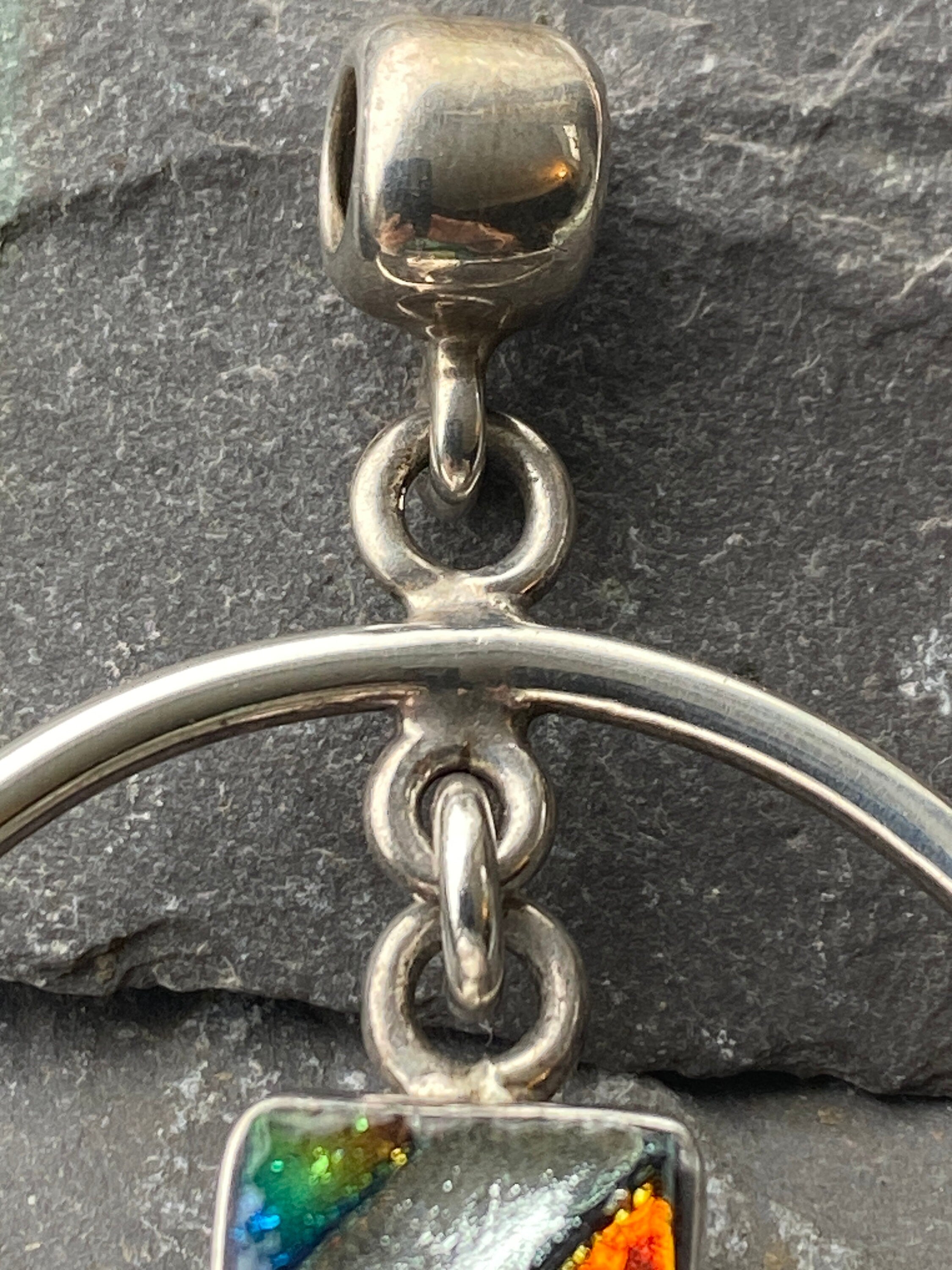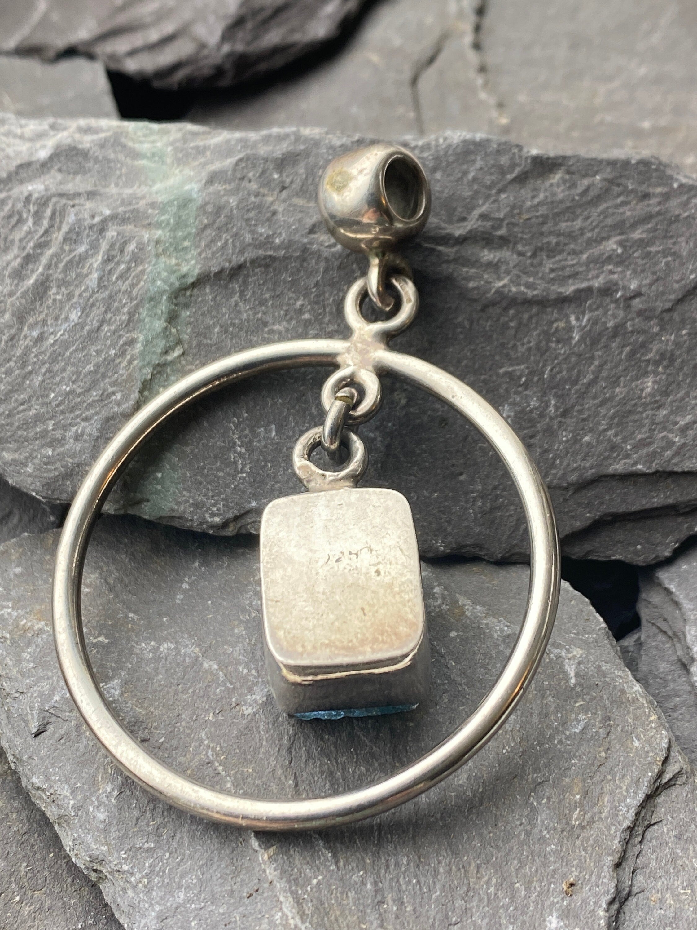 A vintage minimalist pendant in sterling silver set with a piece of art glass in an abstract pendant Very feint 925 stamp Sterling silver Will take a mid...