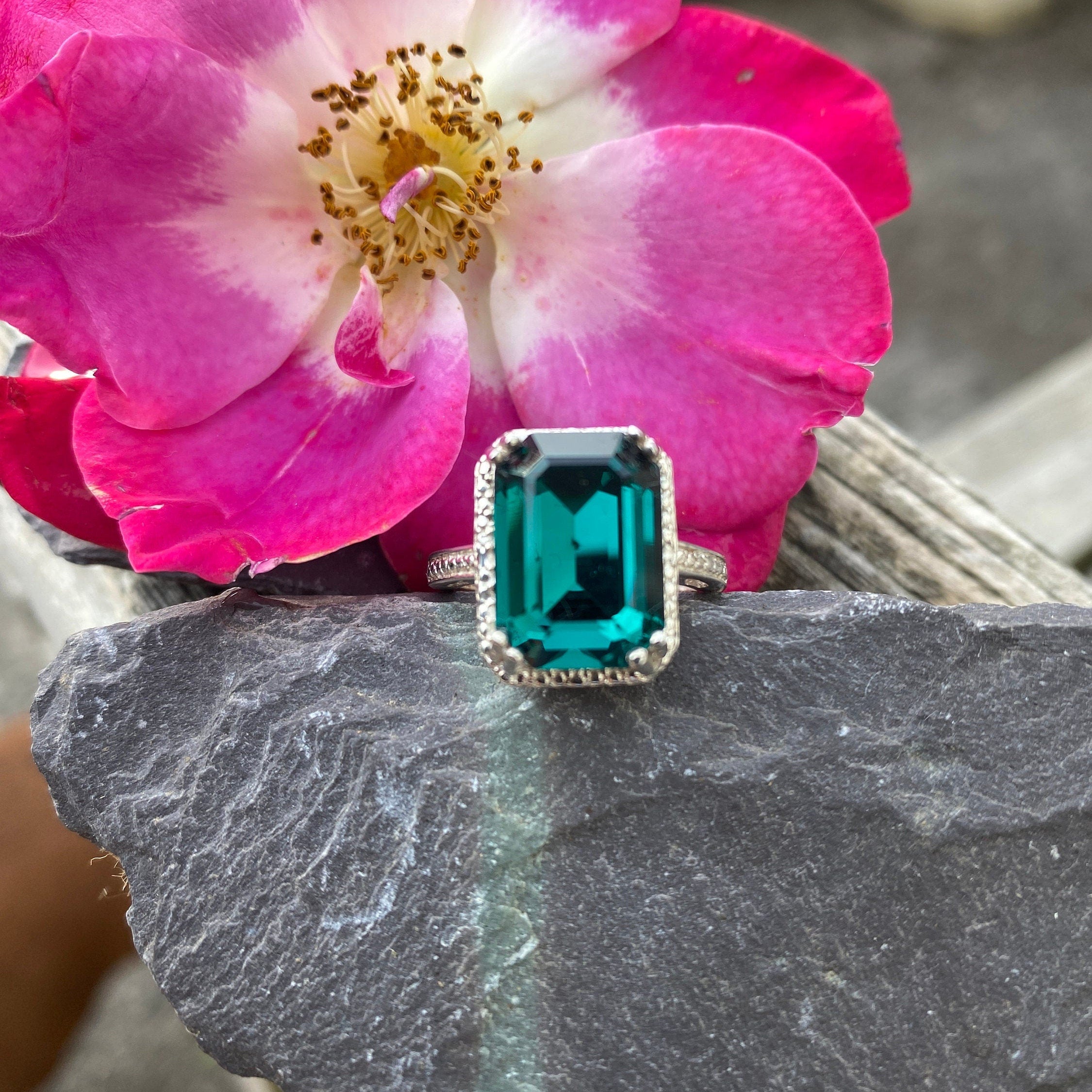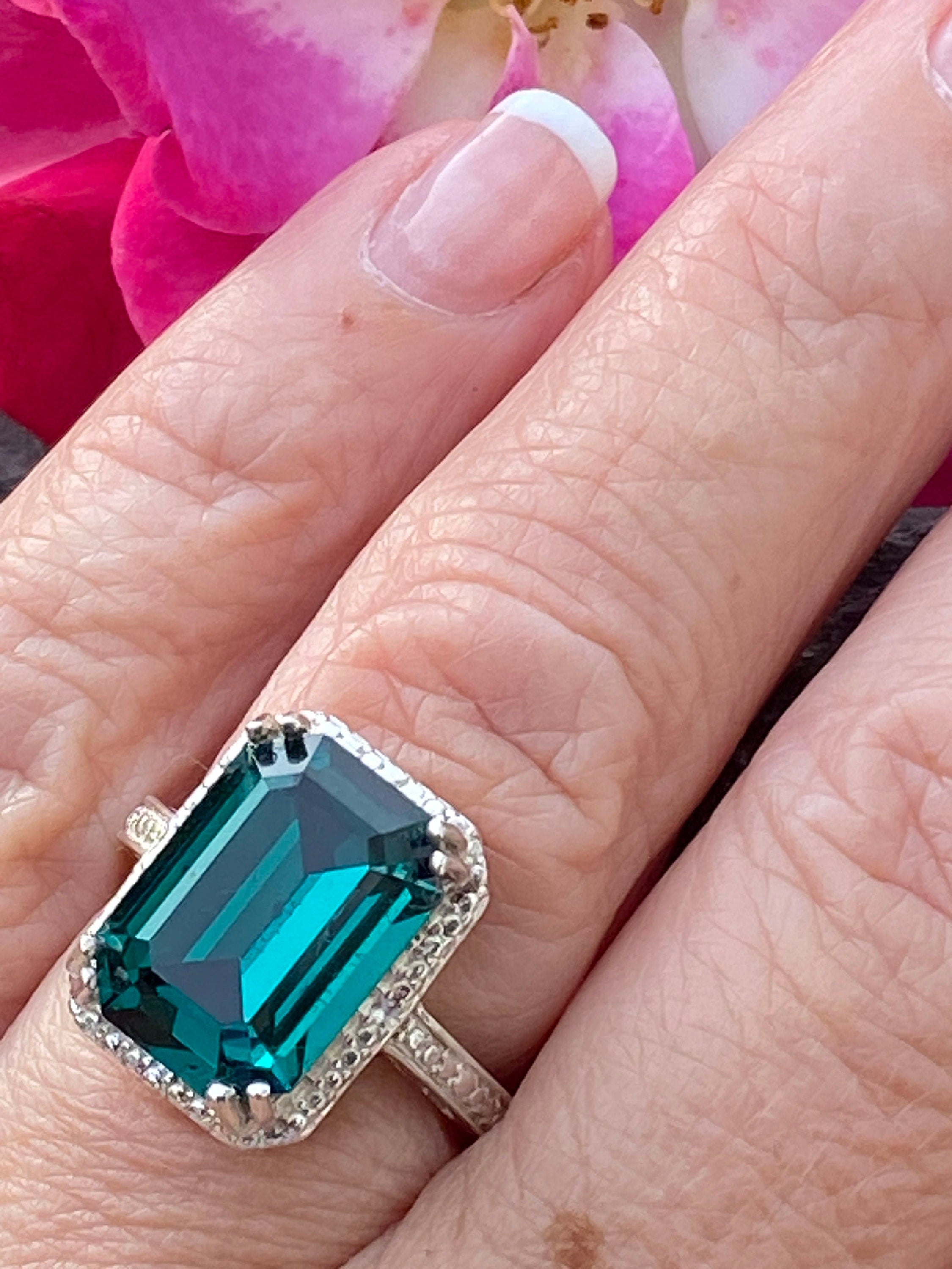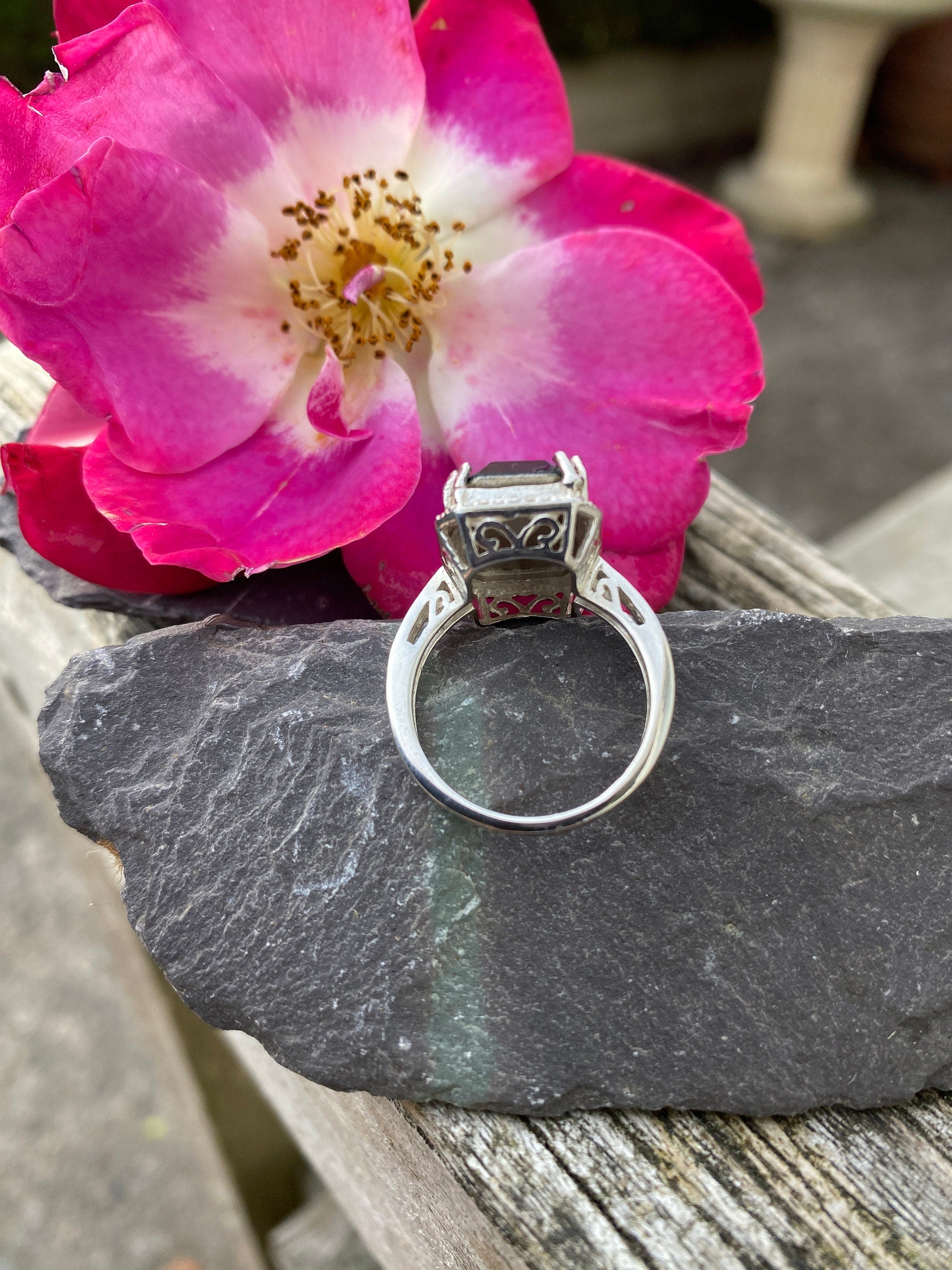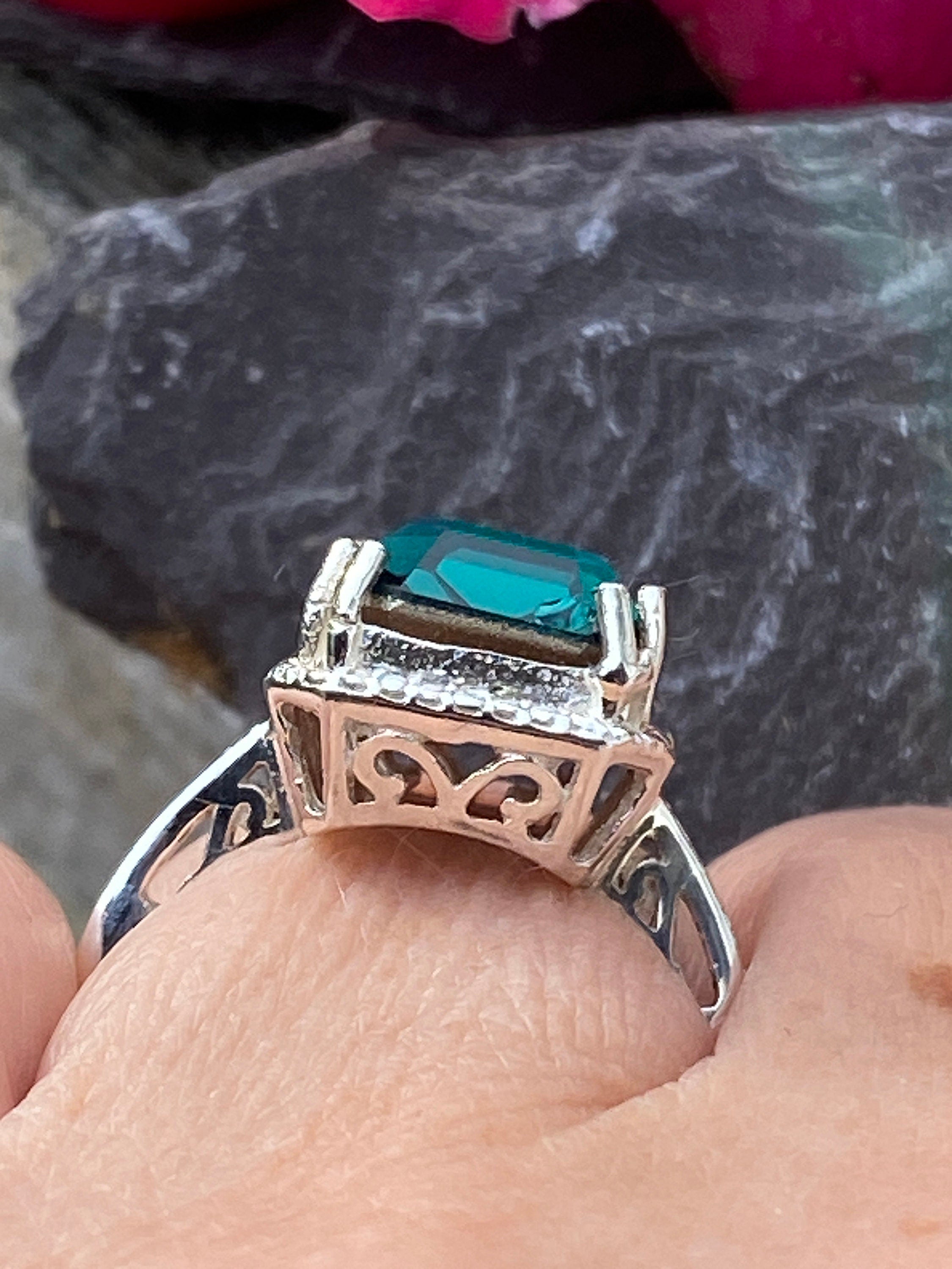 A very smart sterling silver ring set with a foil backed simulated Tourmaline.