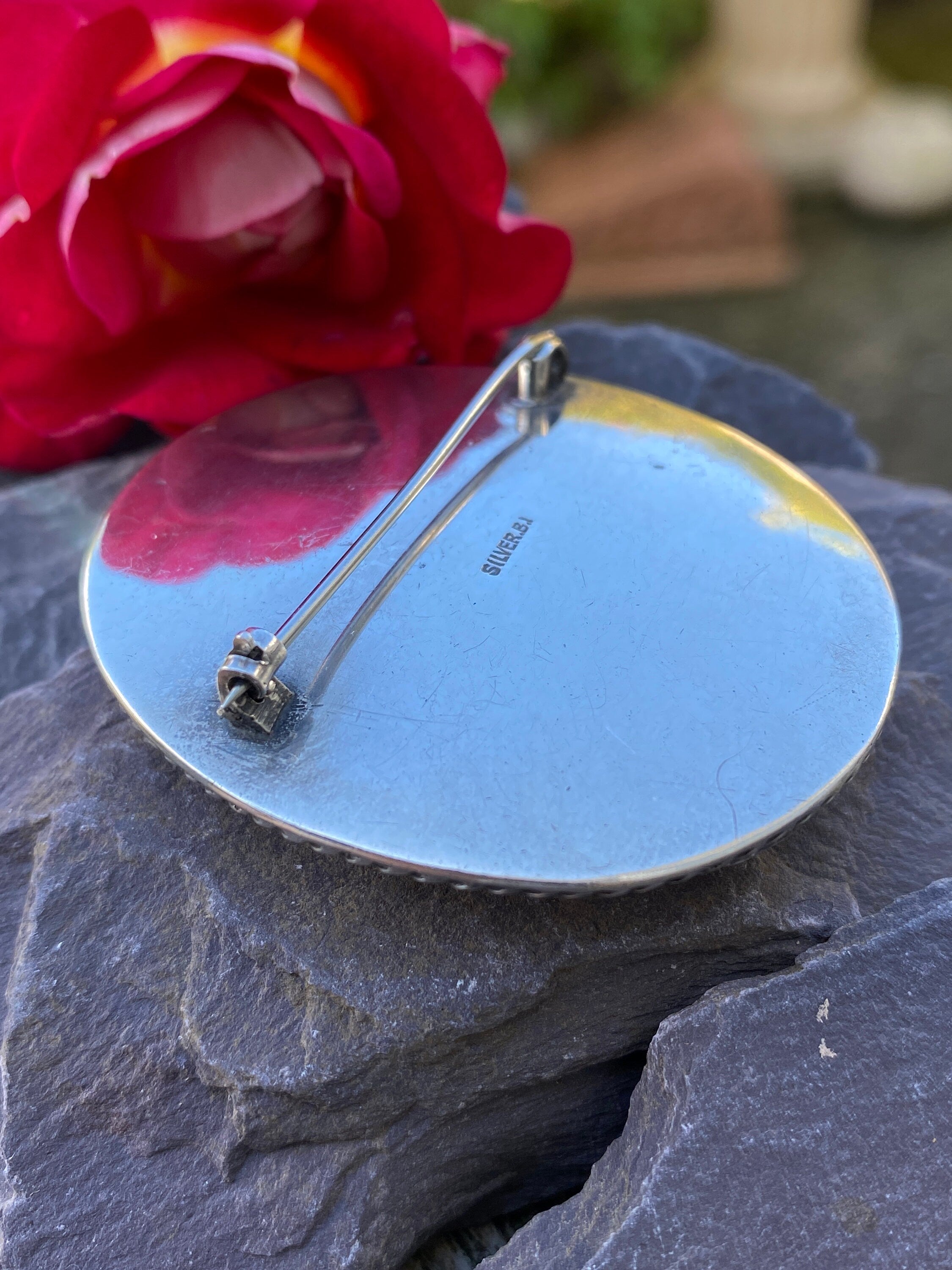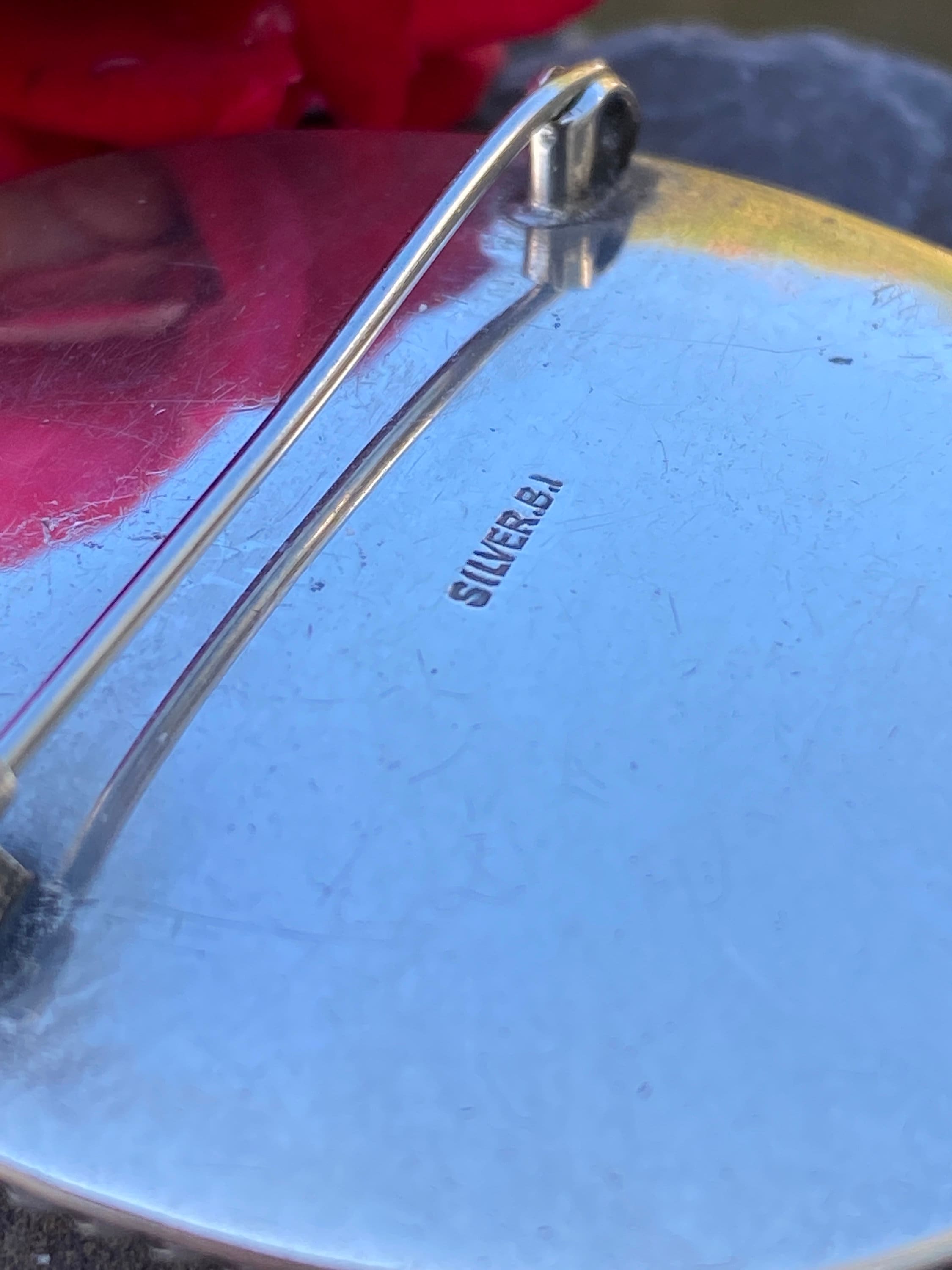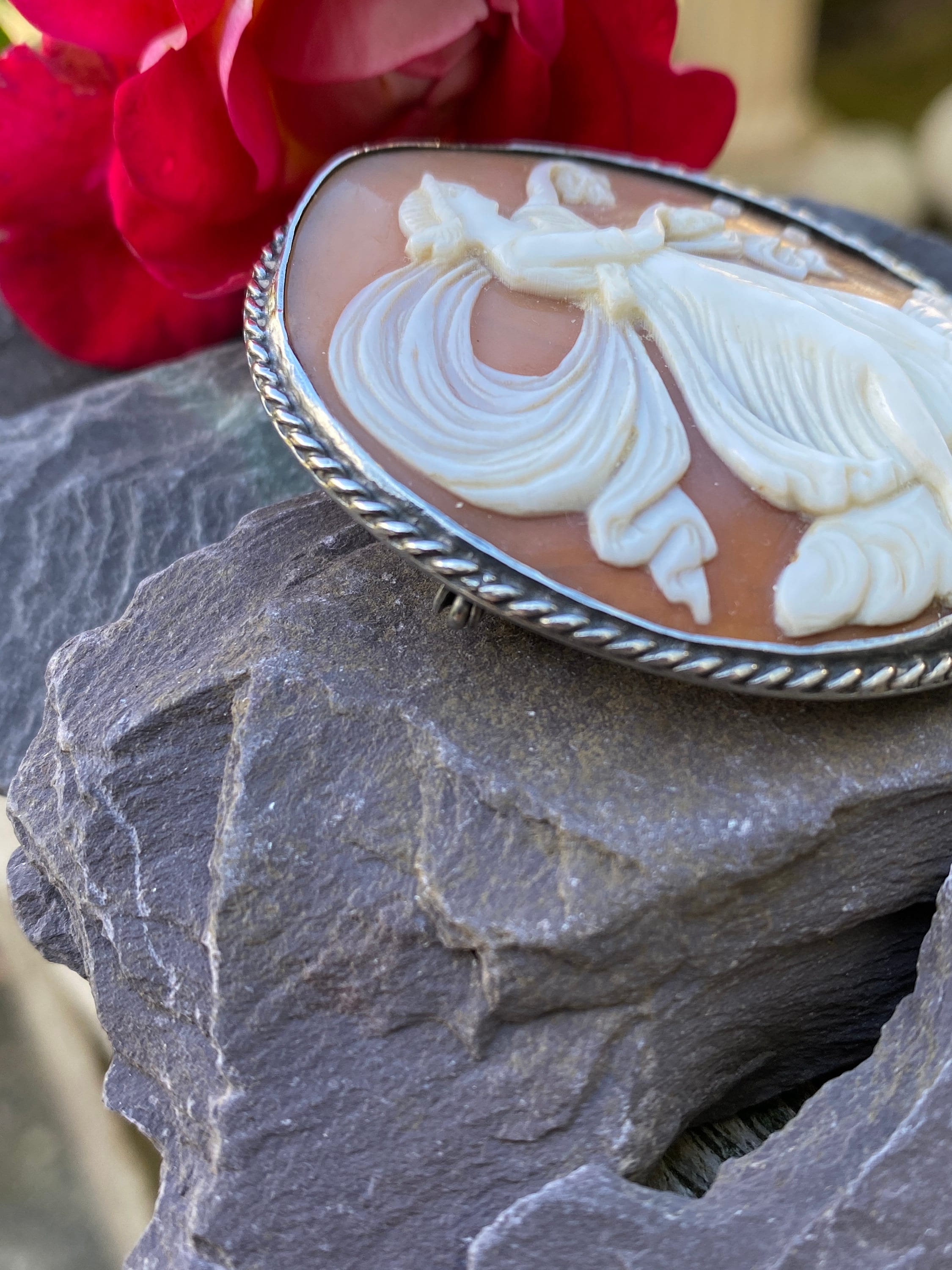 A beautiful sterling silver set Conch shell cameo brooch signed B.I. for Bernard Instone