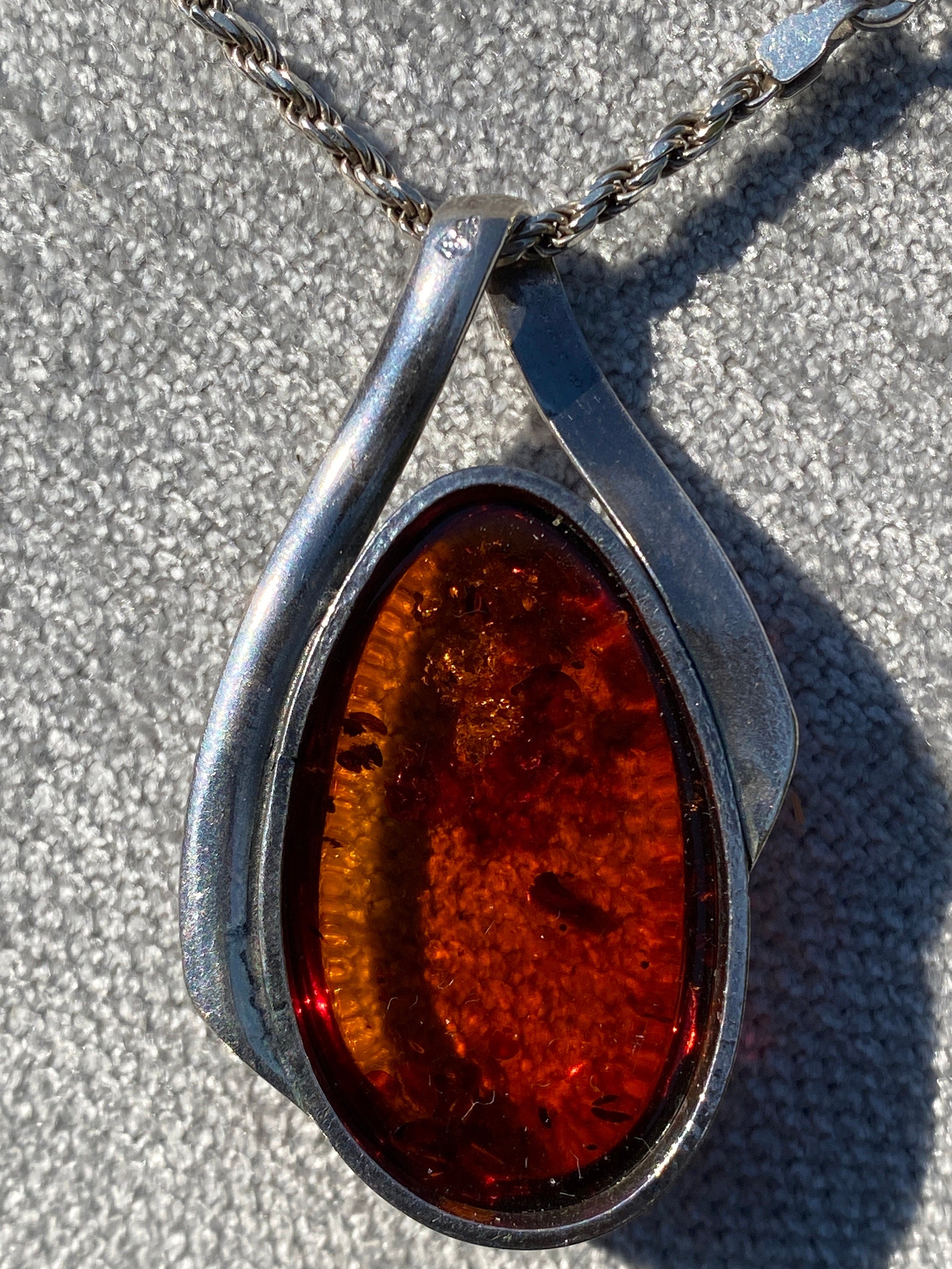 A stunning vintage sterling silver pendant set with a large polished natural Amber.