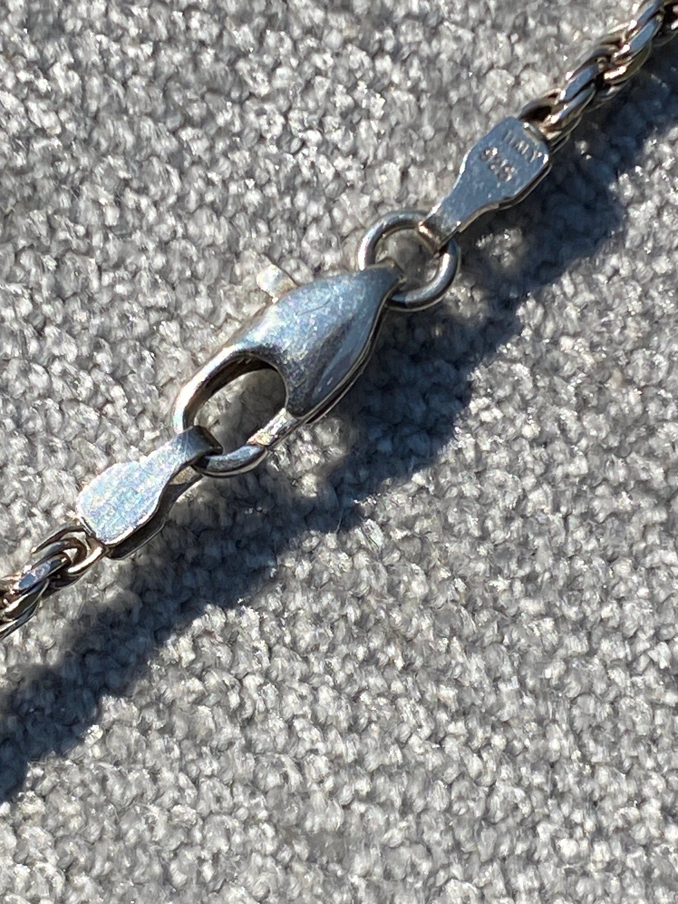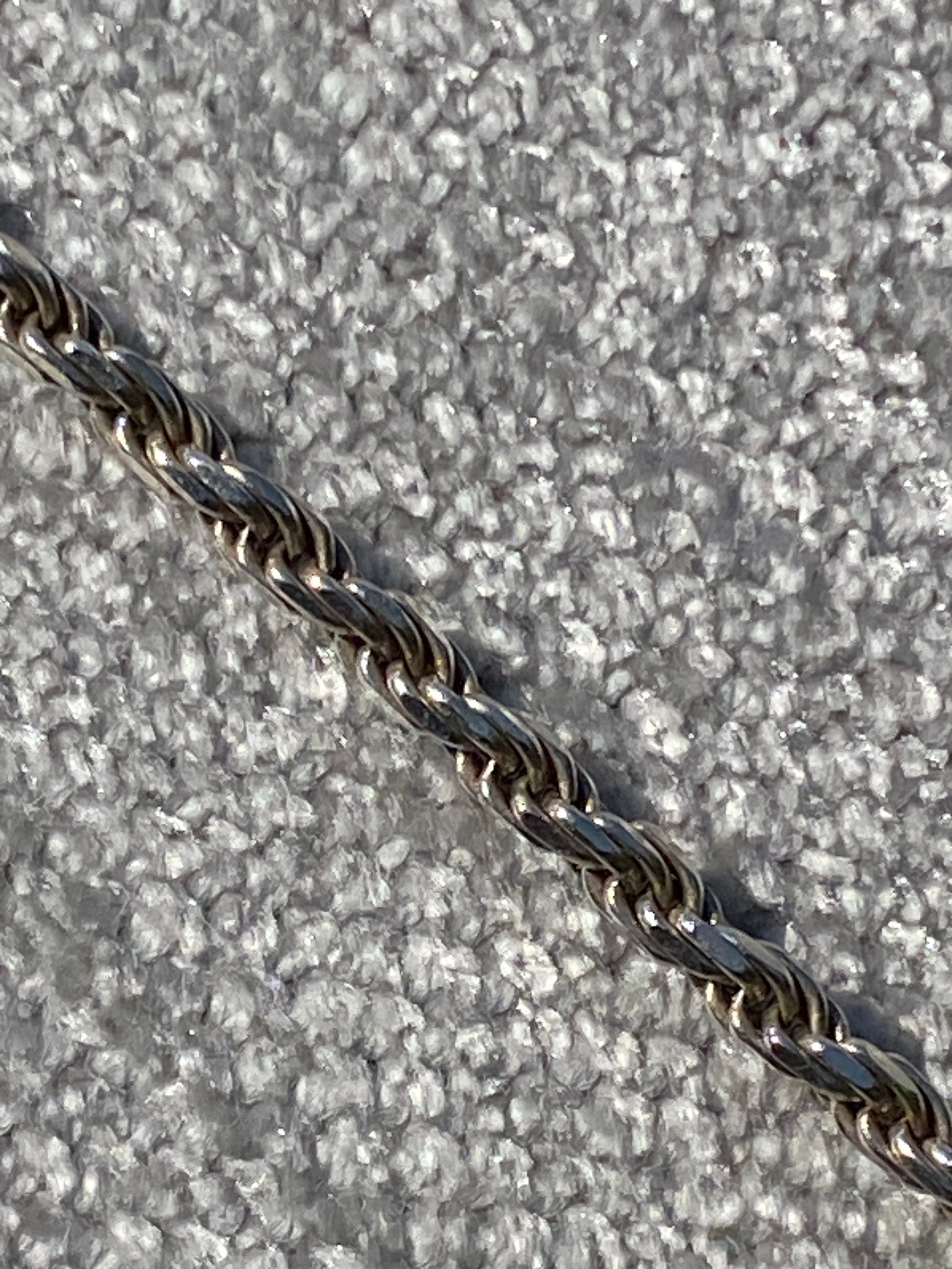 Set on an 18 inch rope twist with trigger clasp, all in sterling silver.