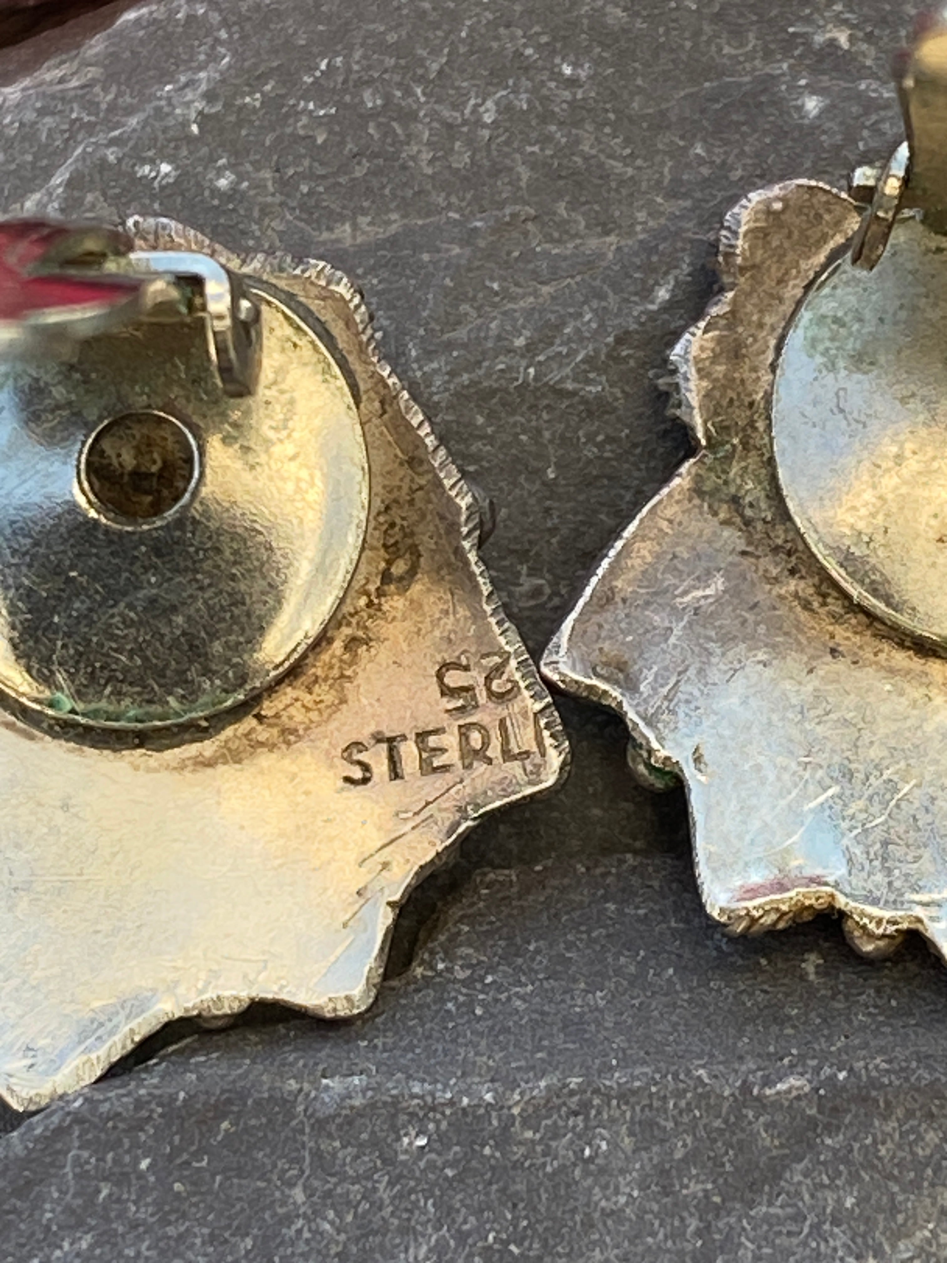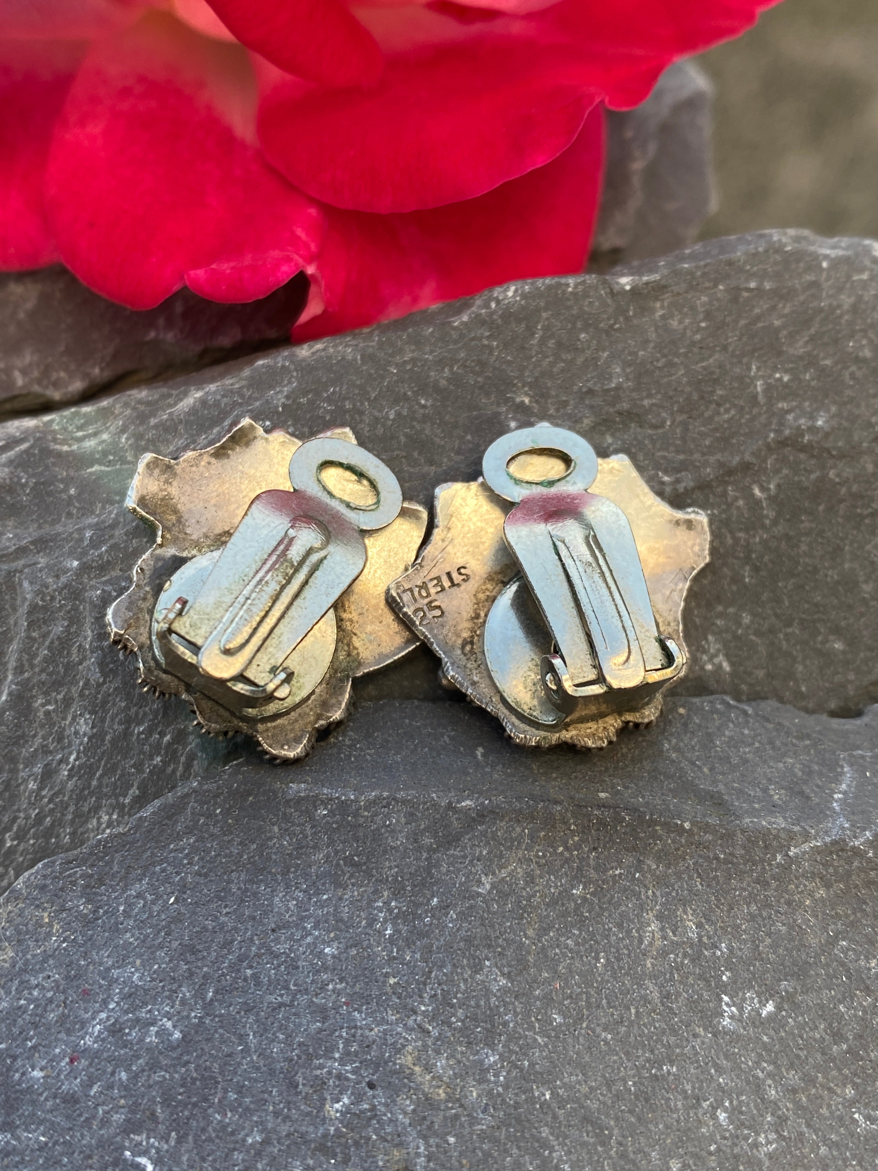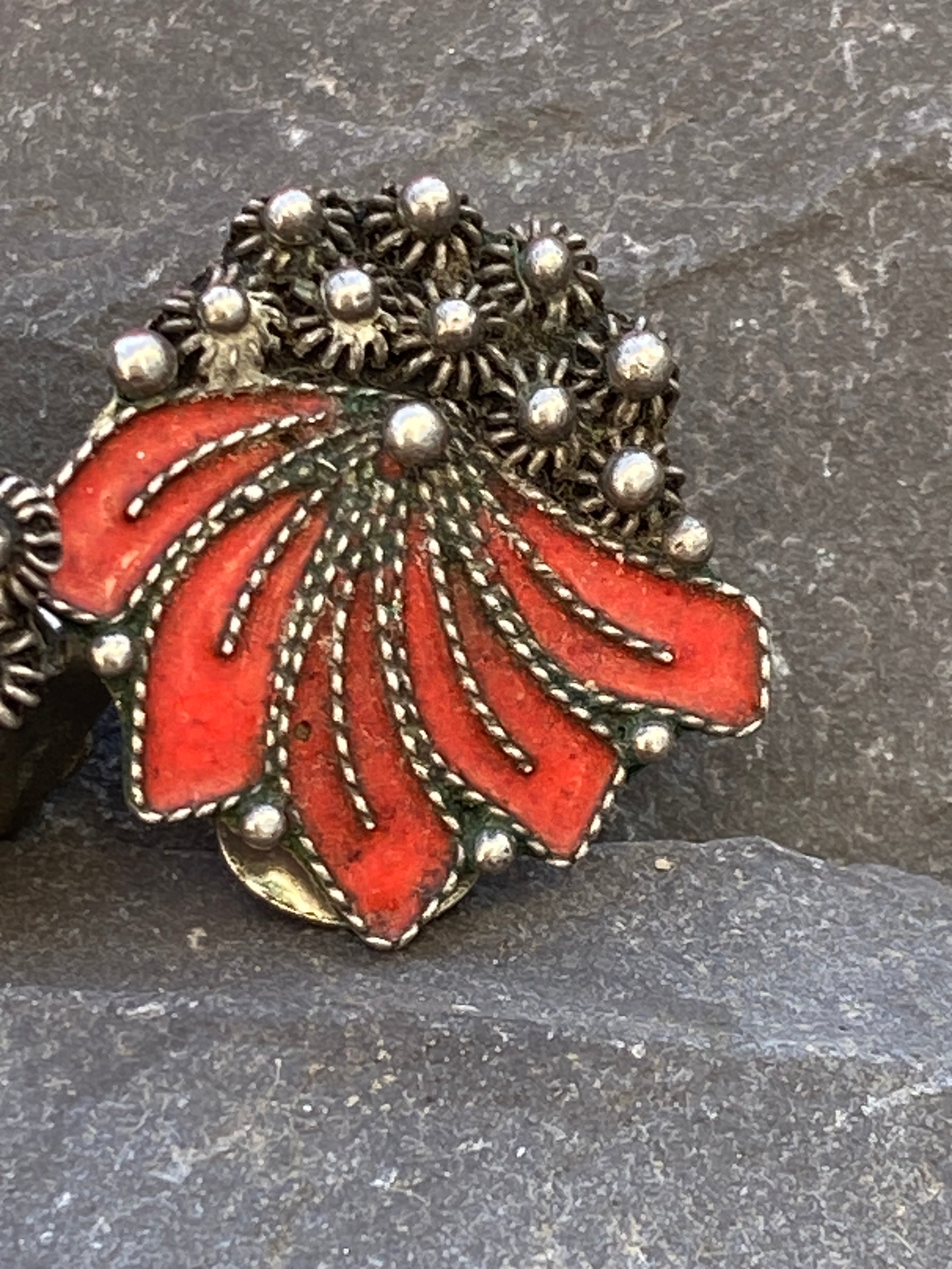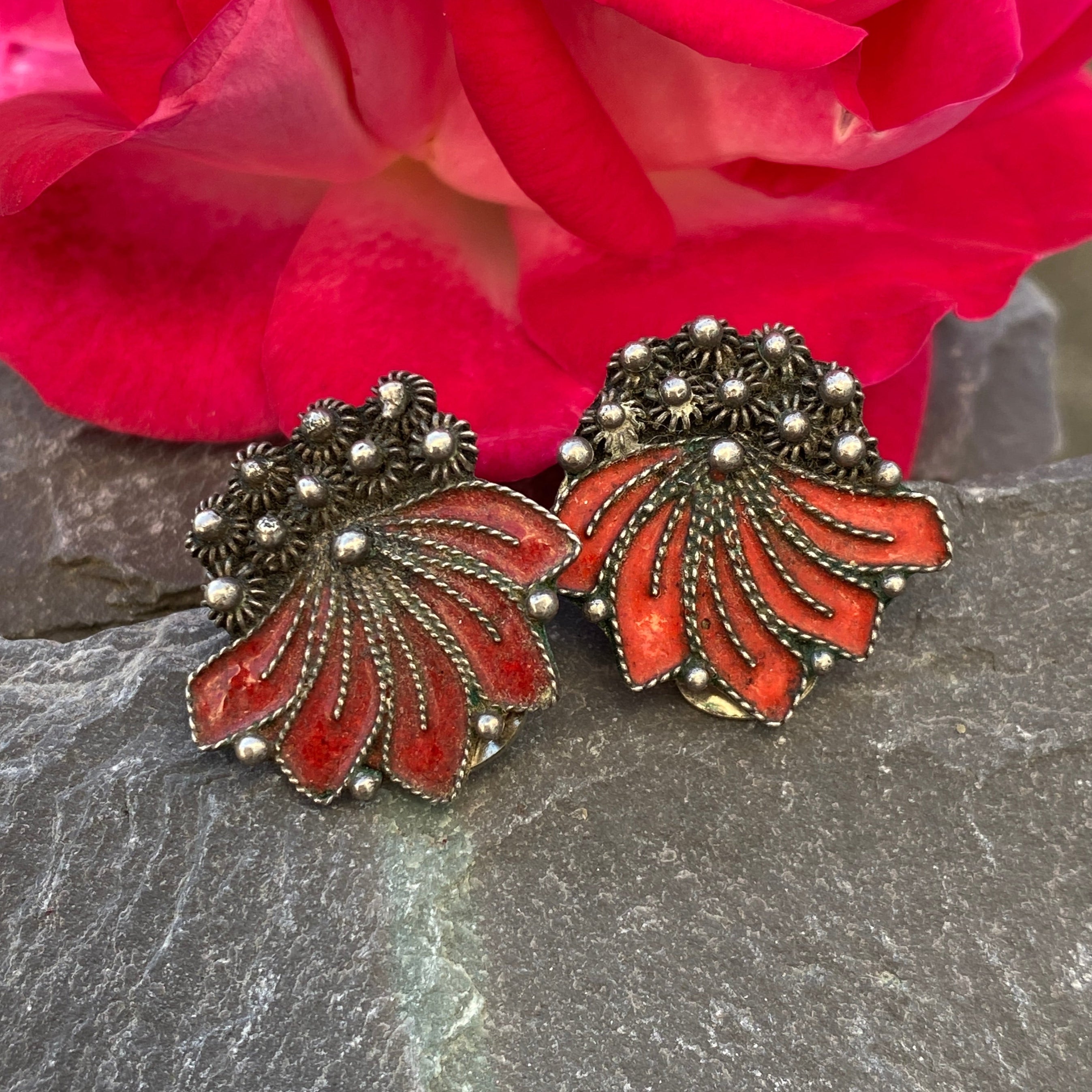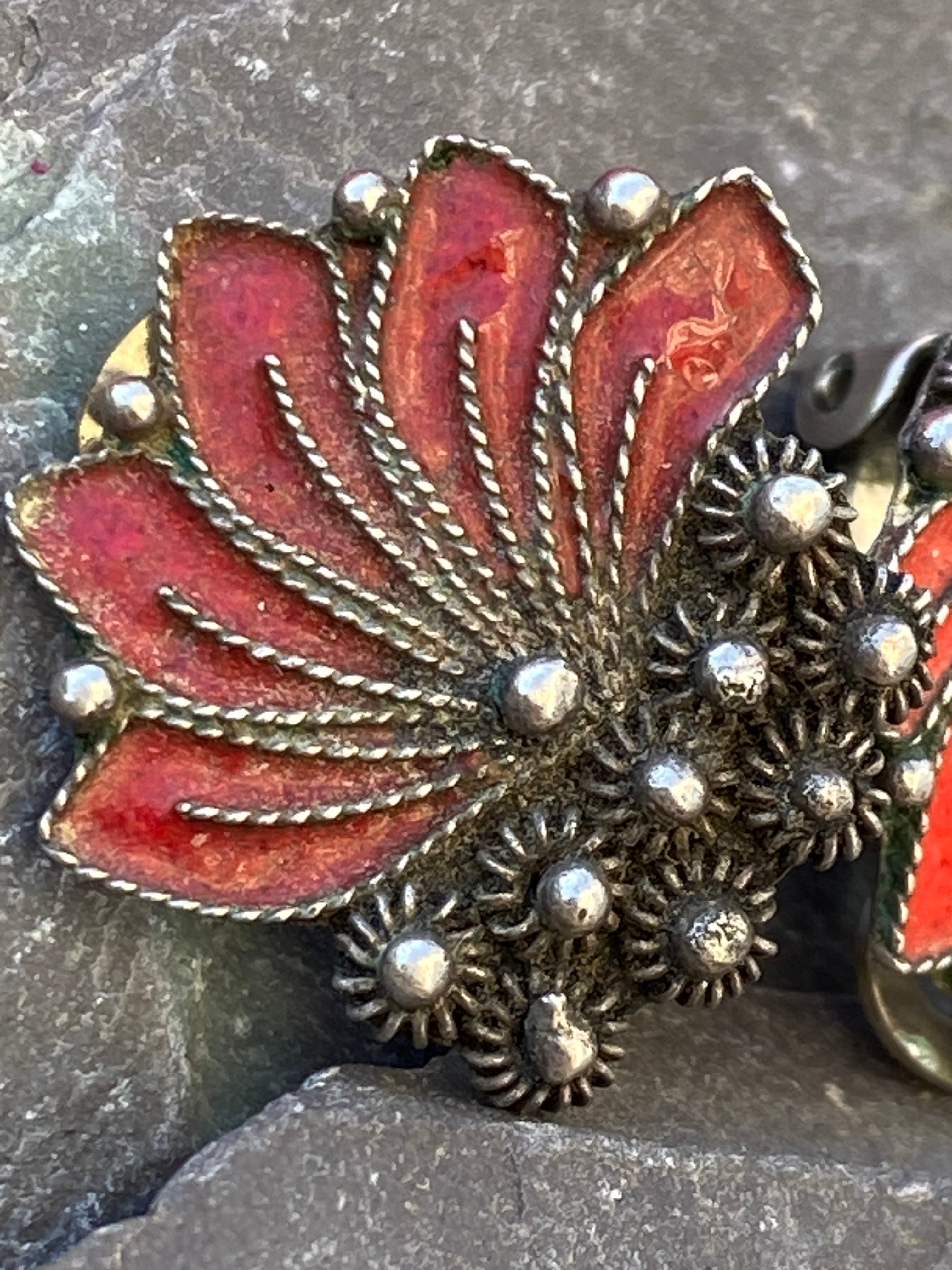 Art Deco Silver & Enamel Clip Earrings Scandinavian.