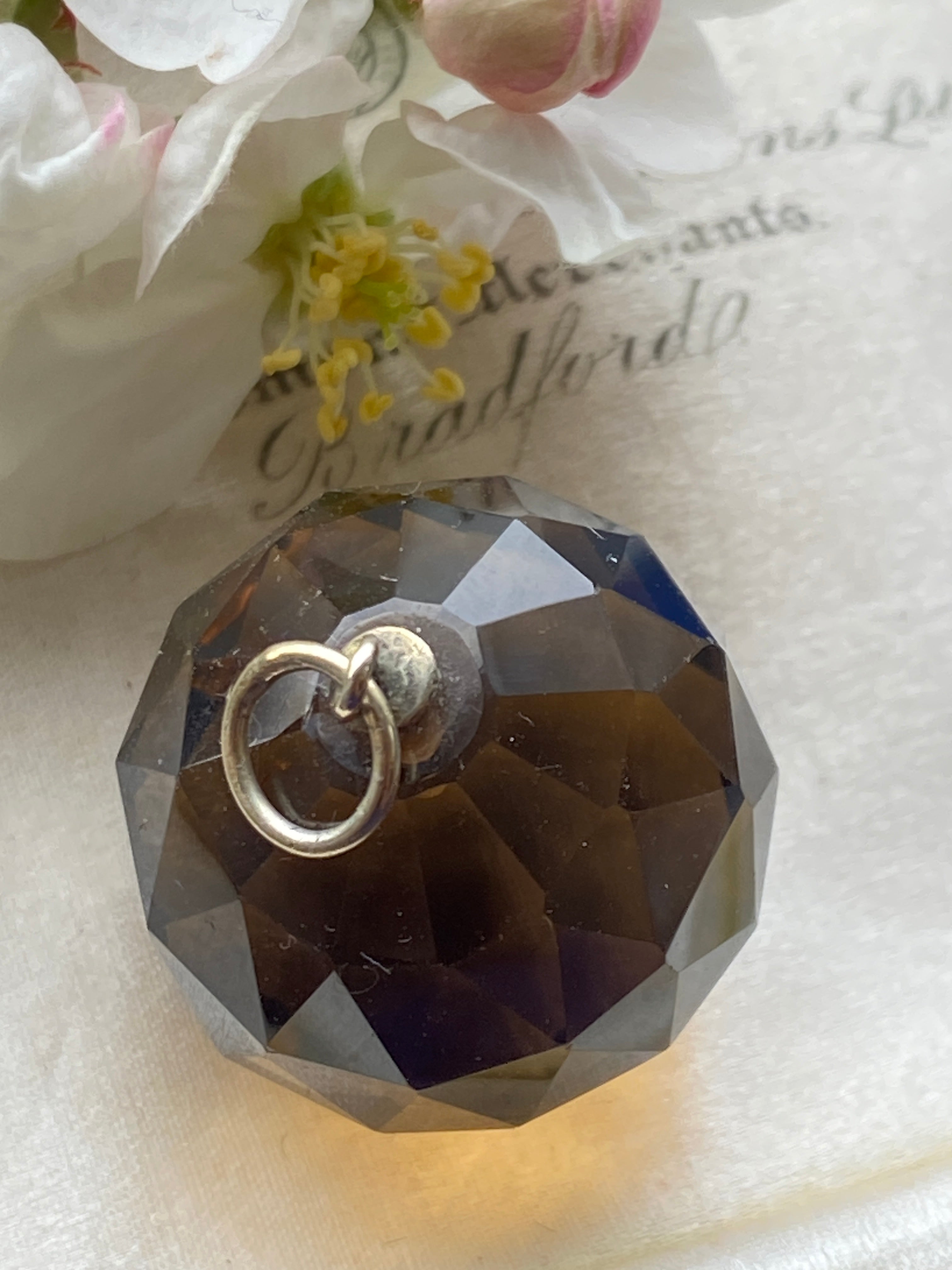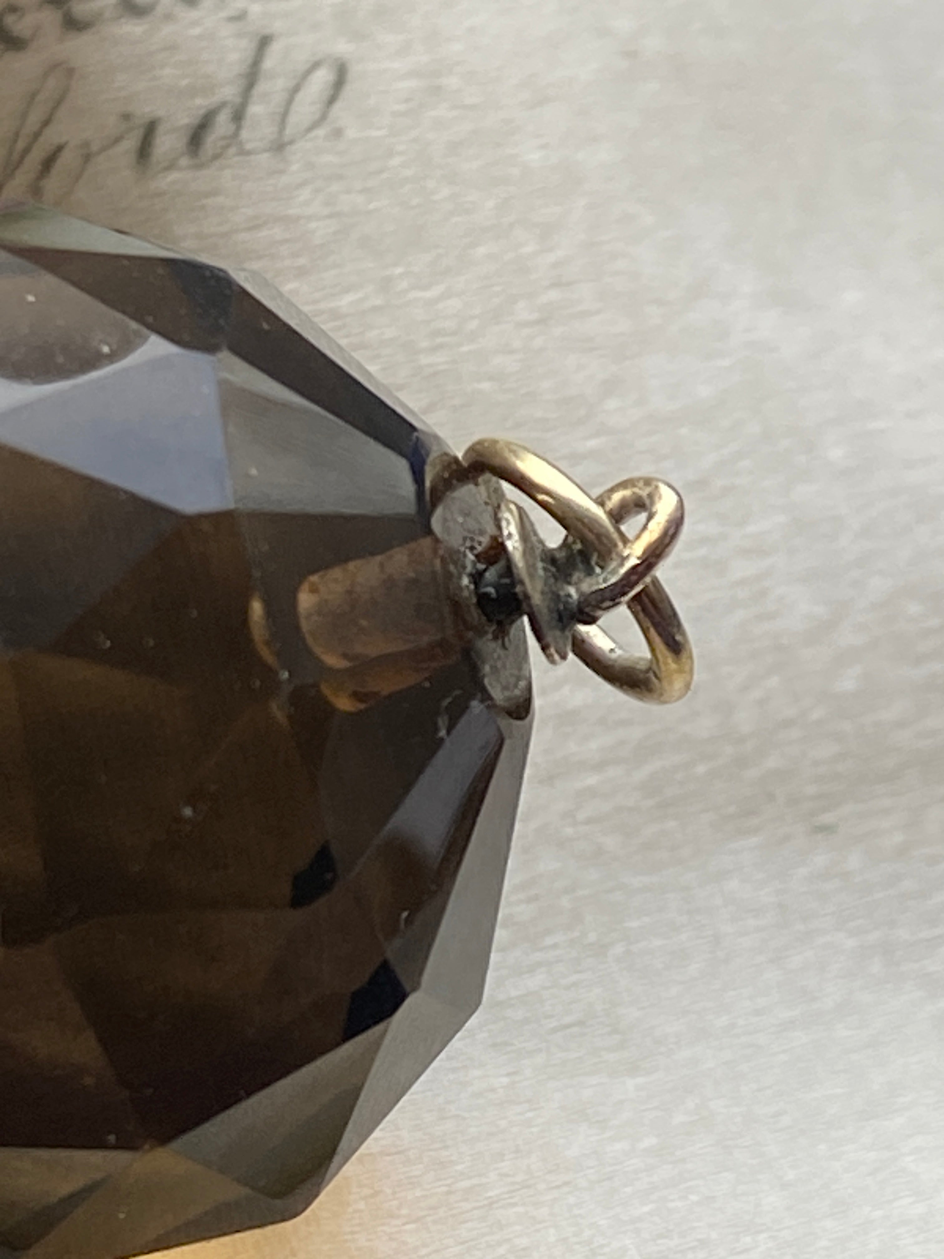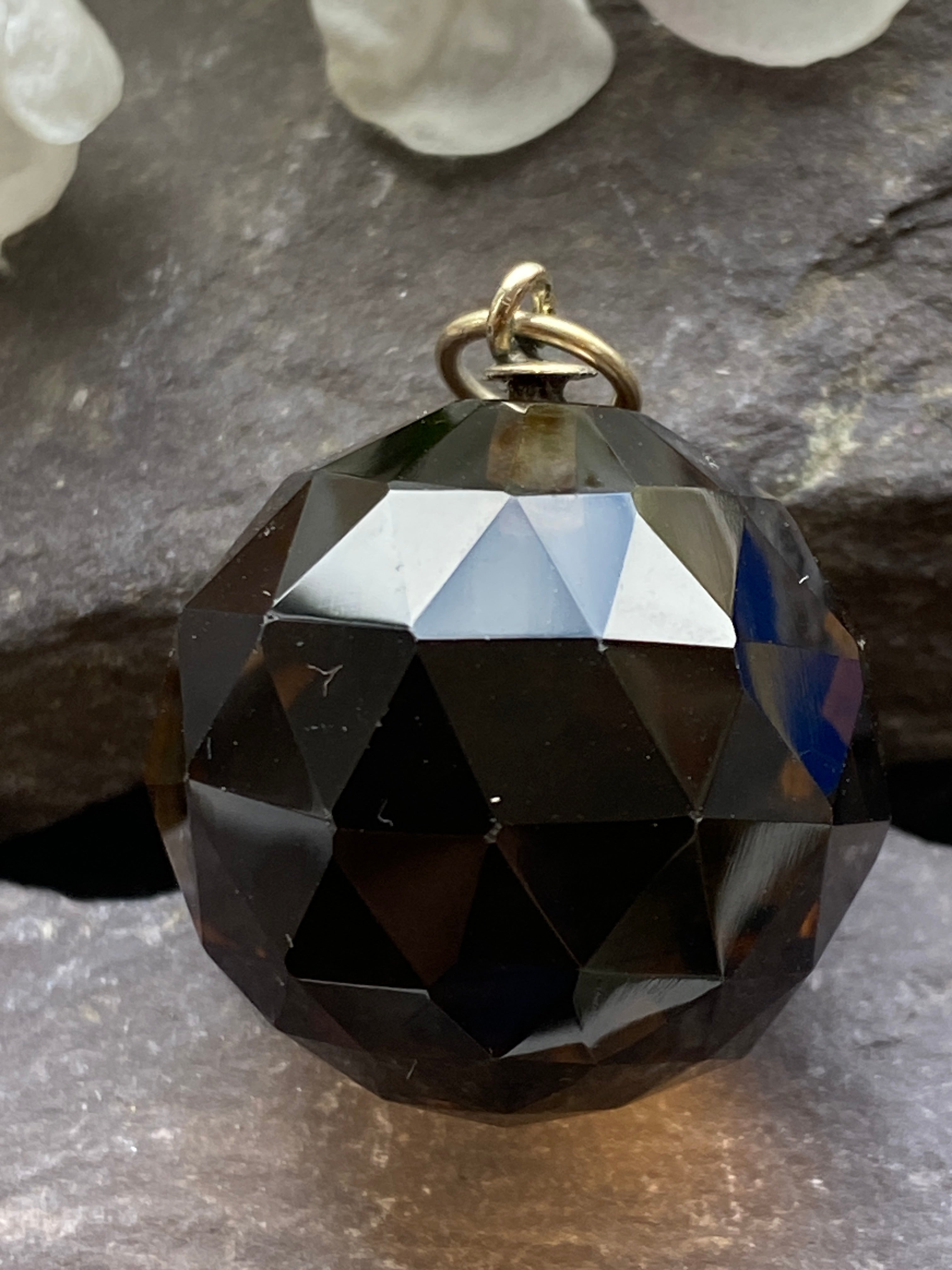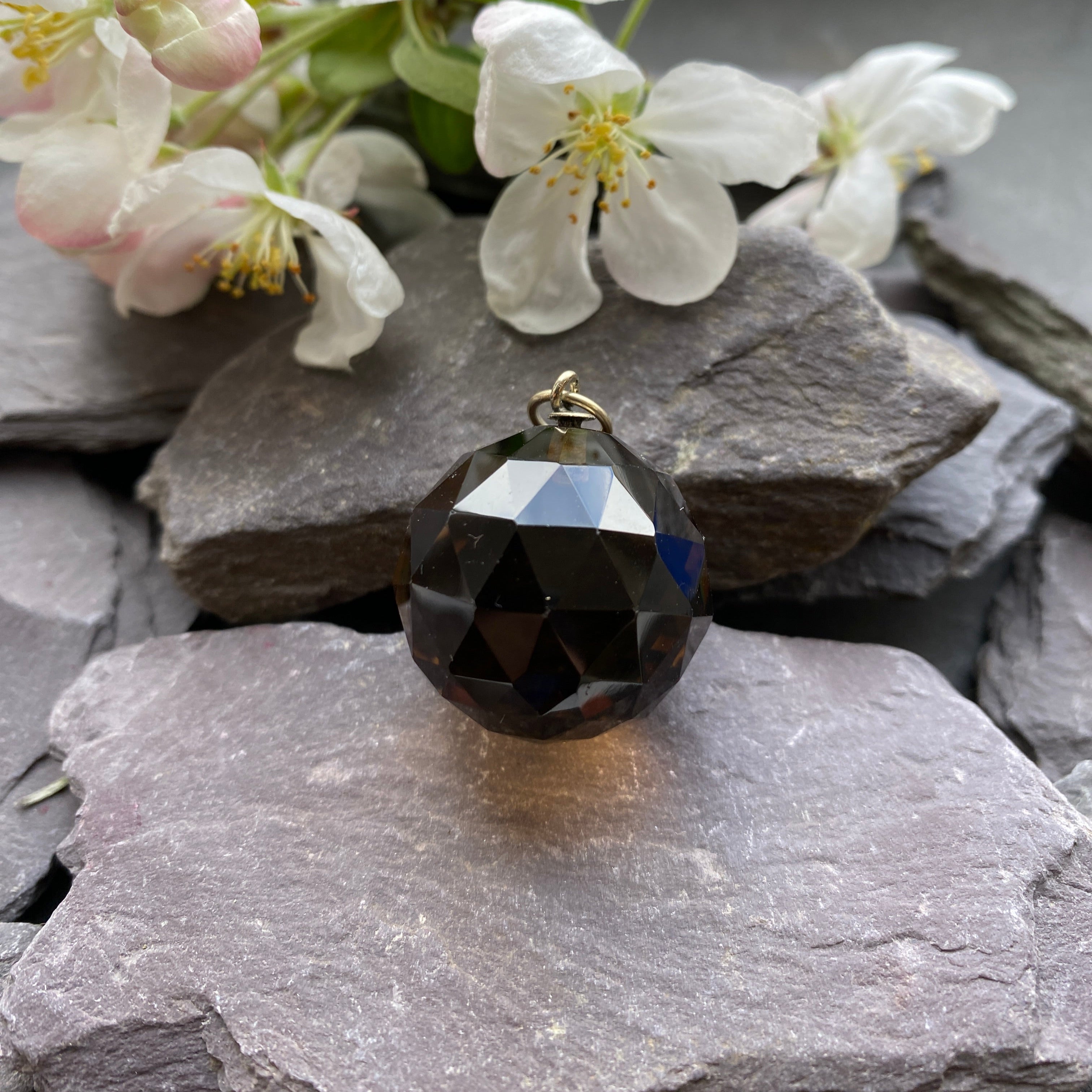 Vintage Faceted Smoky Quartz Ball Pendant With 9ct Fitting.