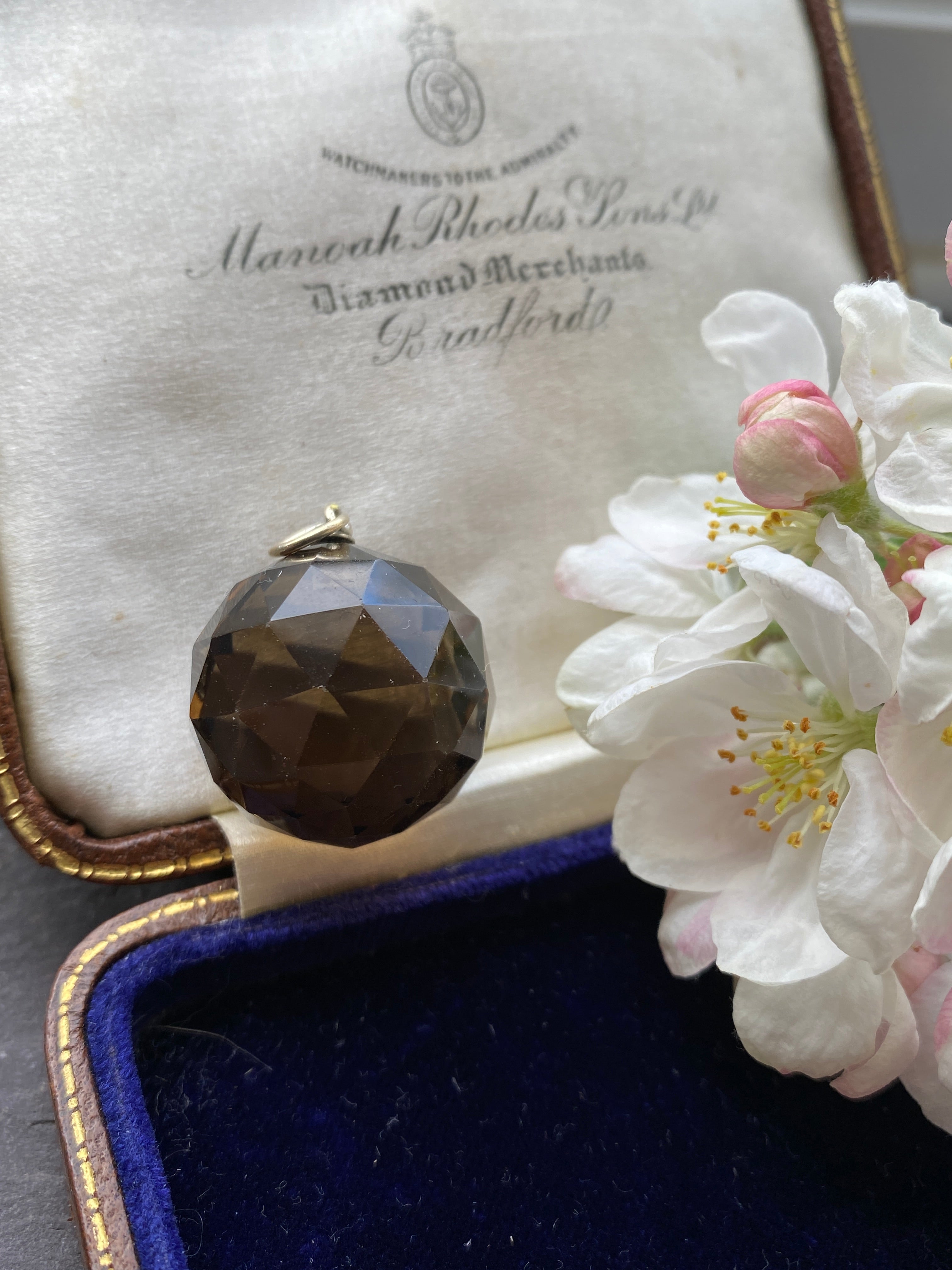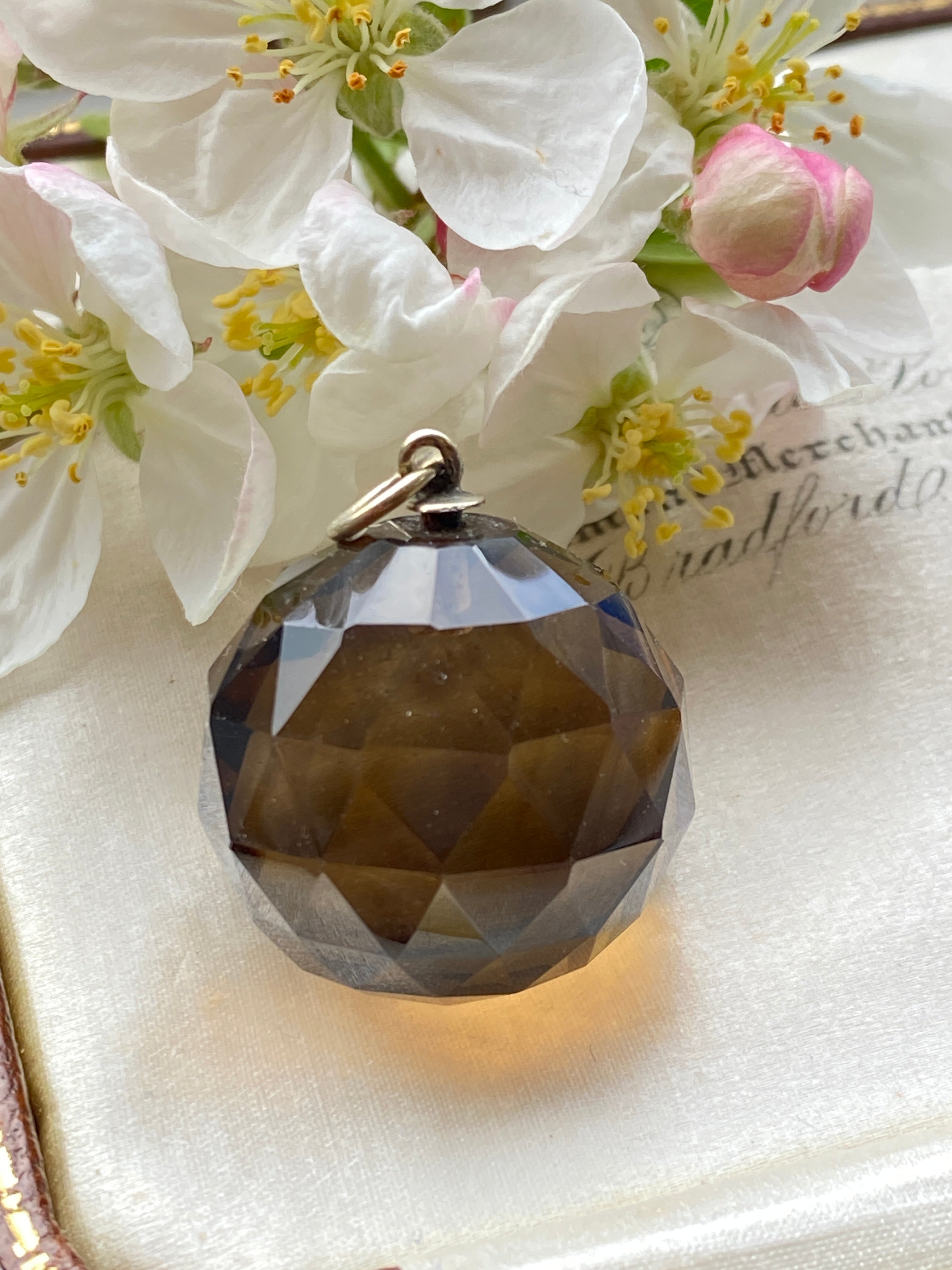 A stunning vintage faceted smoky quartz ball pendant with 9ct fitting