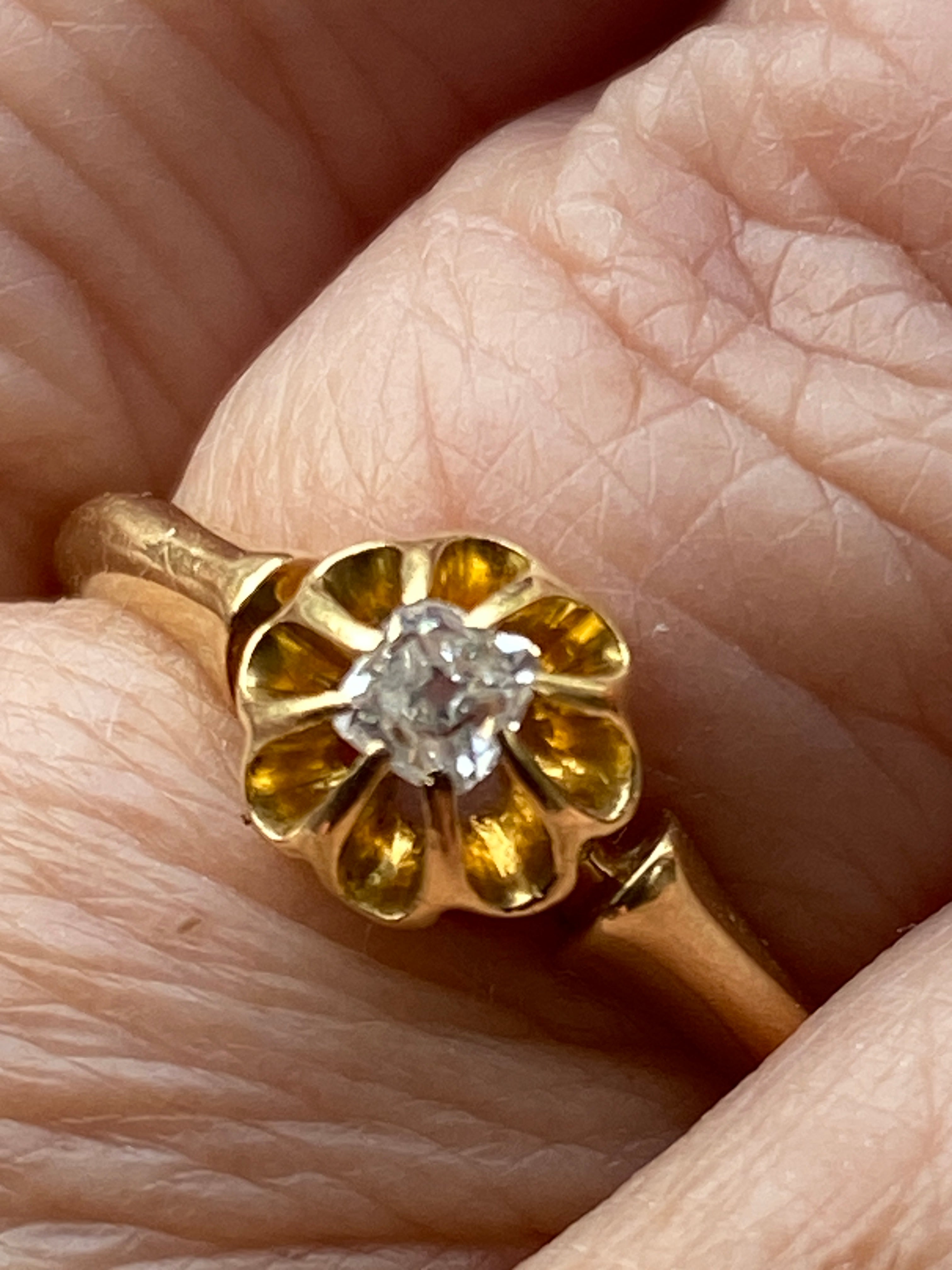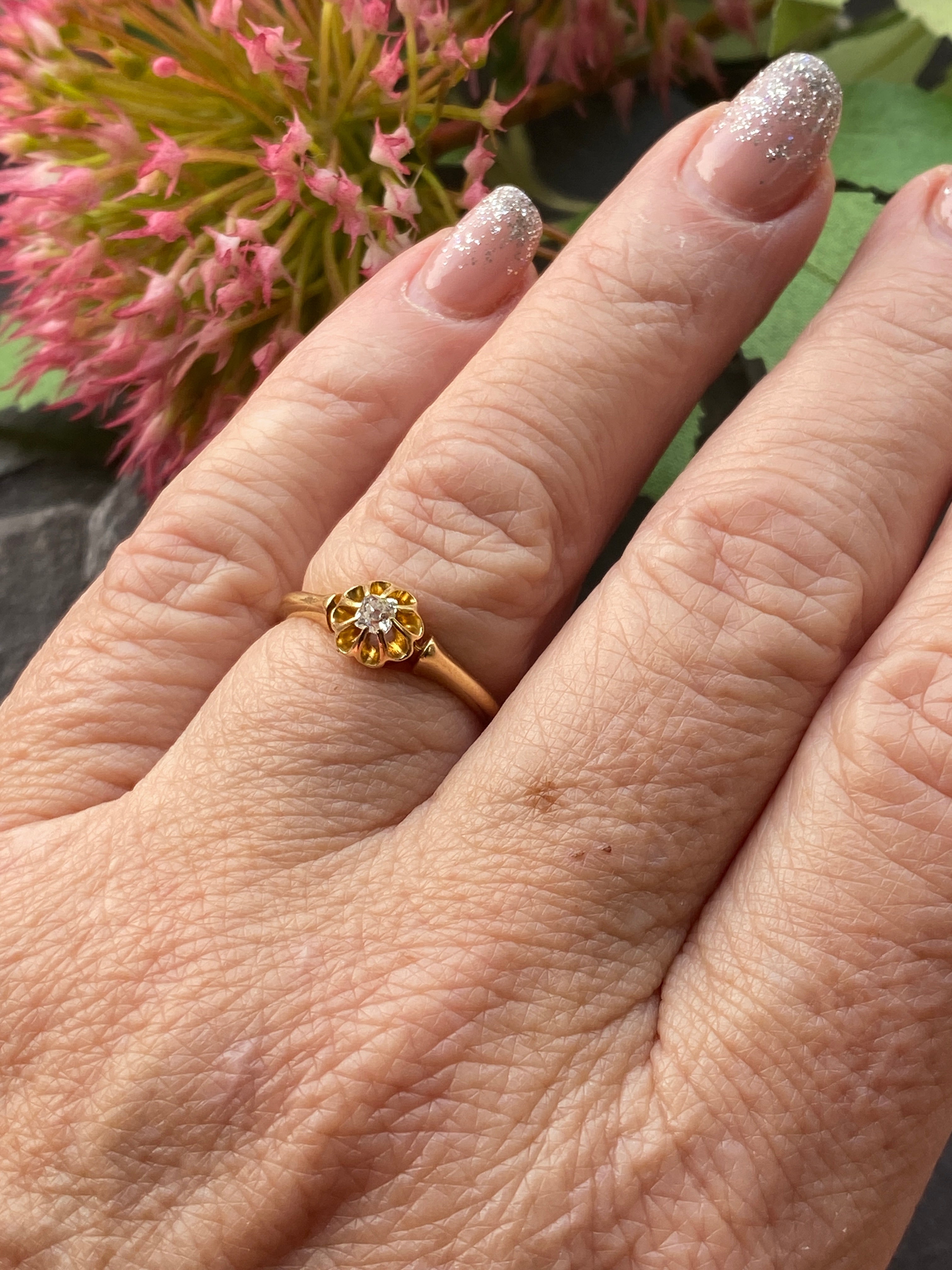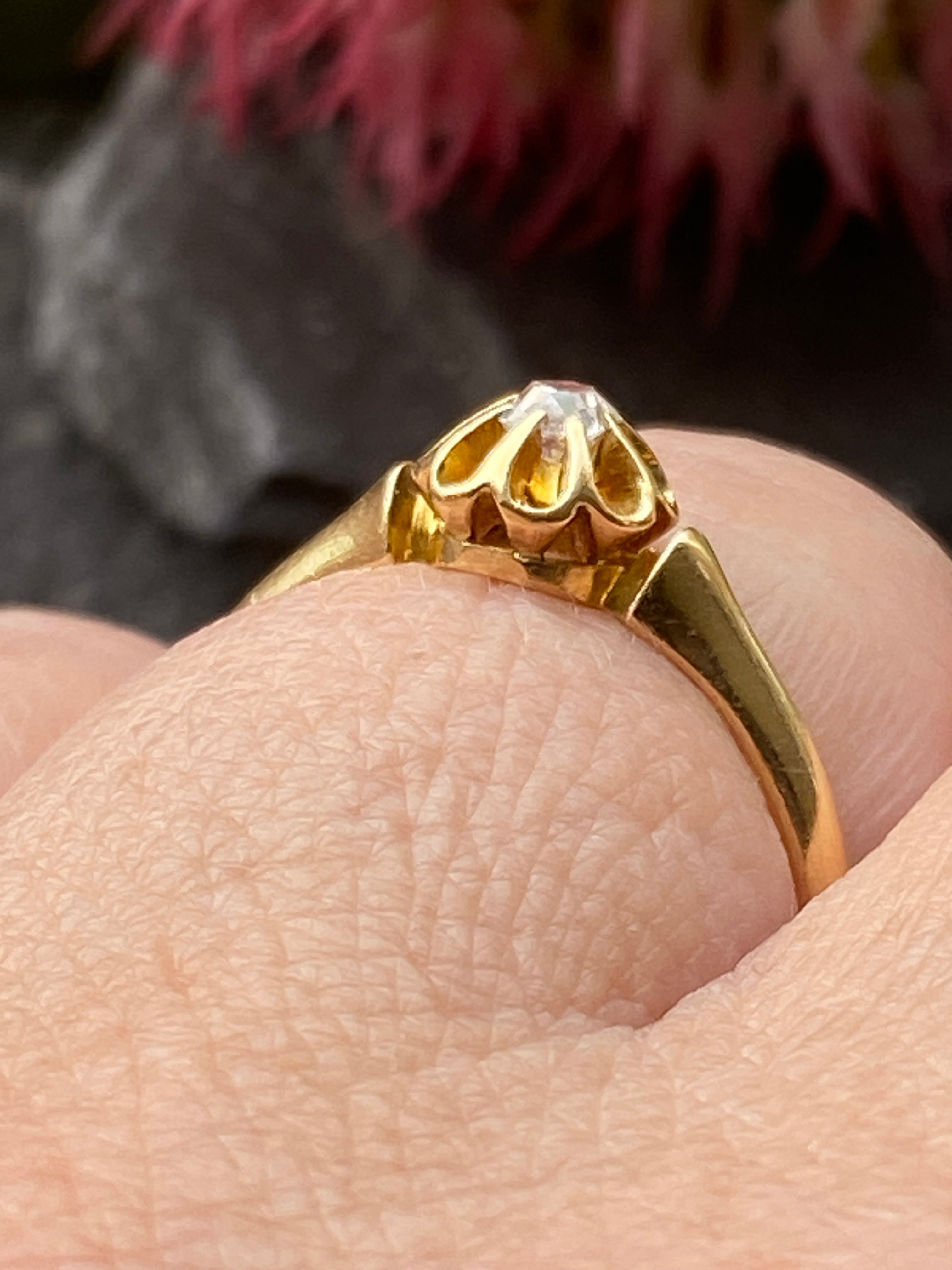 A beautiful 18ct gold ring set with an Old brilliant cut solitaire Diamond.