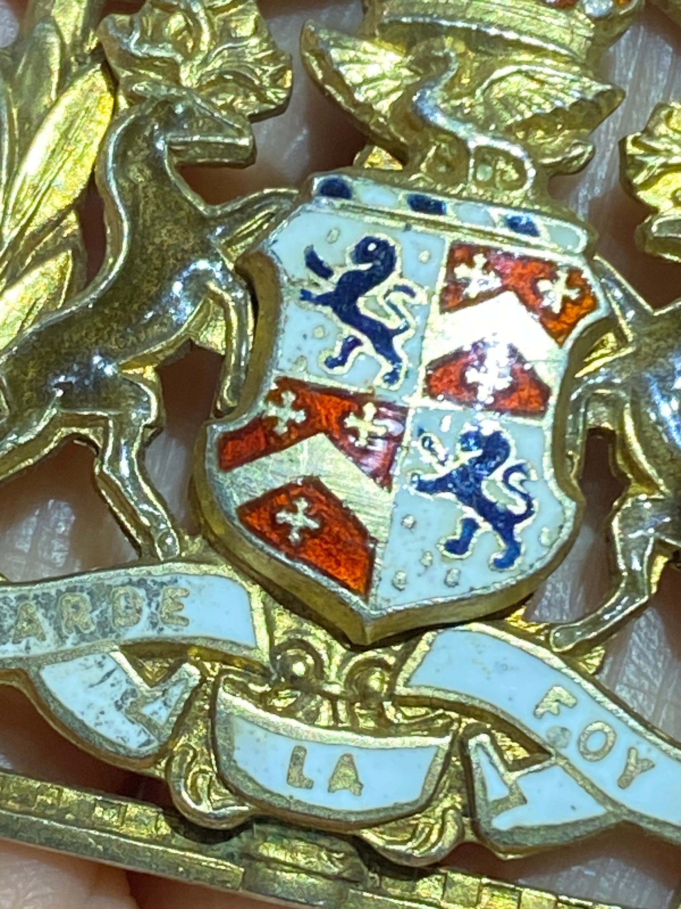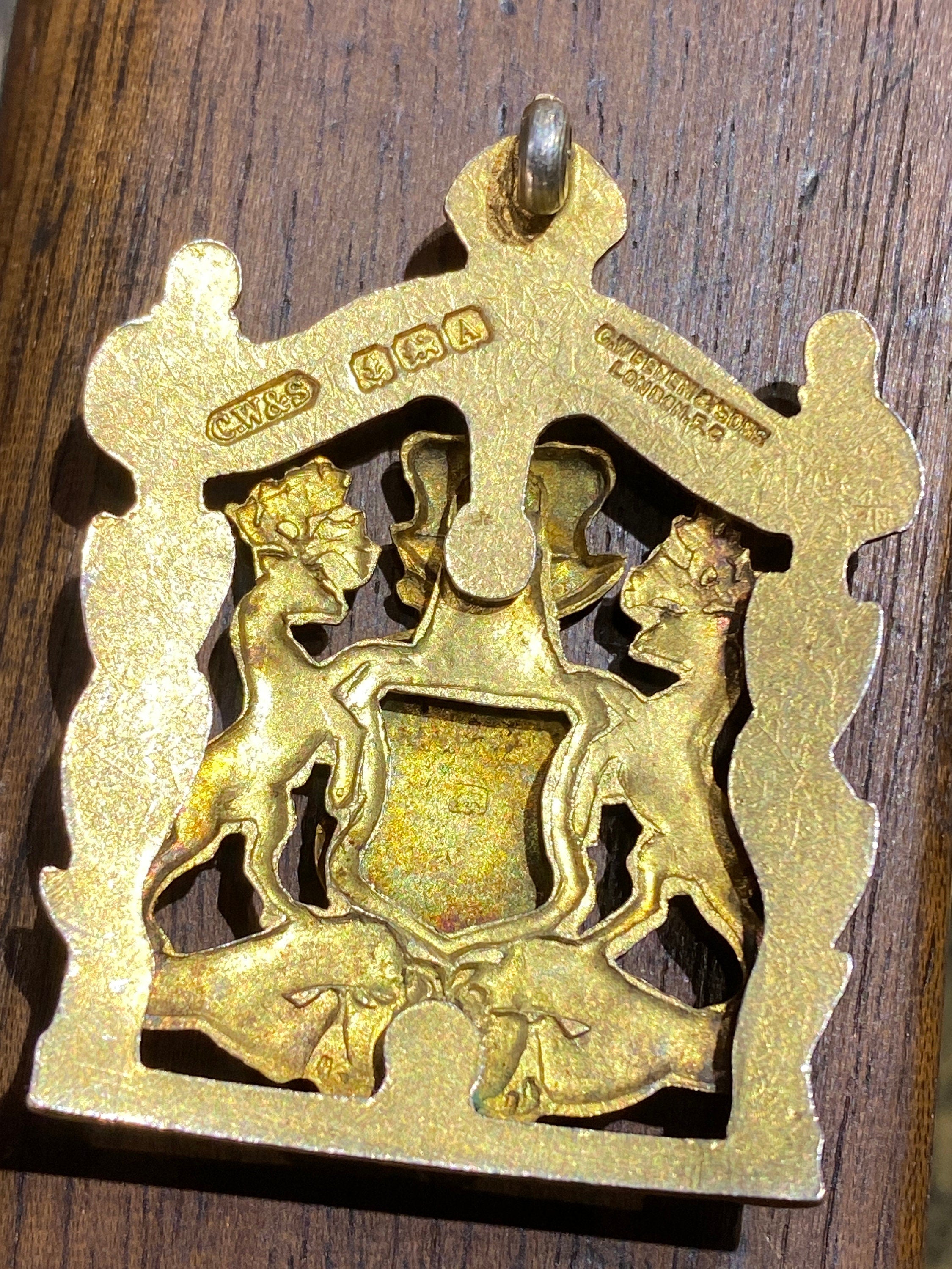 An antique sterling silver vermeil & enamel Masonic girls school medallion and fobFull hallmarks for Birmingham 1925Gold washed finish No damage to enamel, firing discolouration to the Latin...