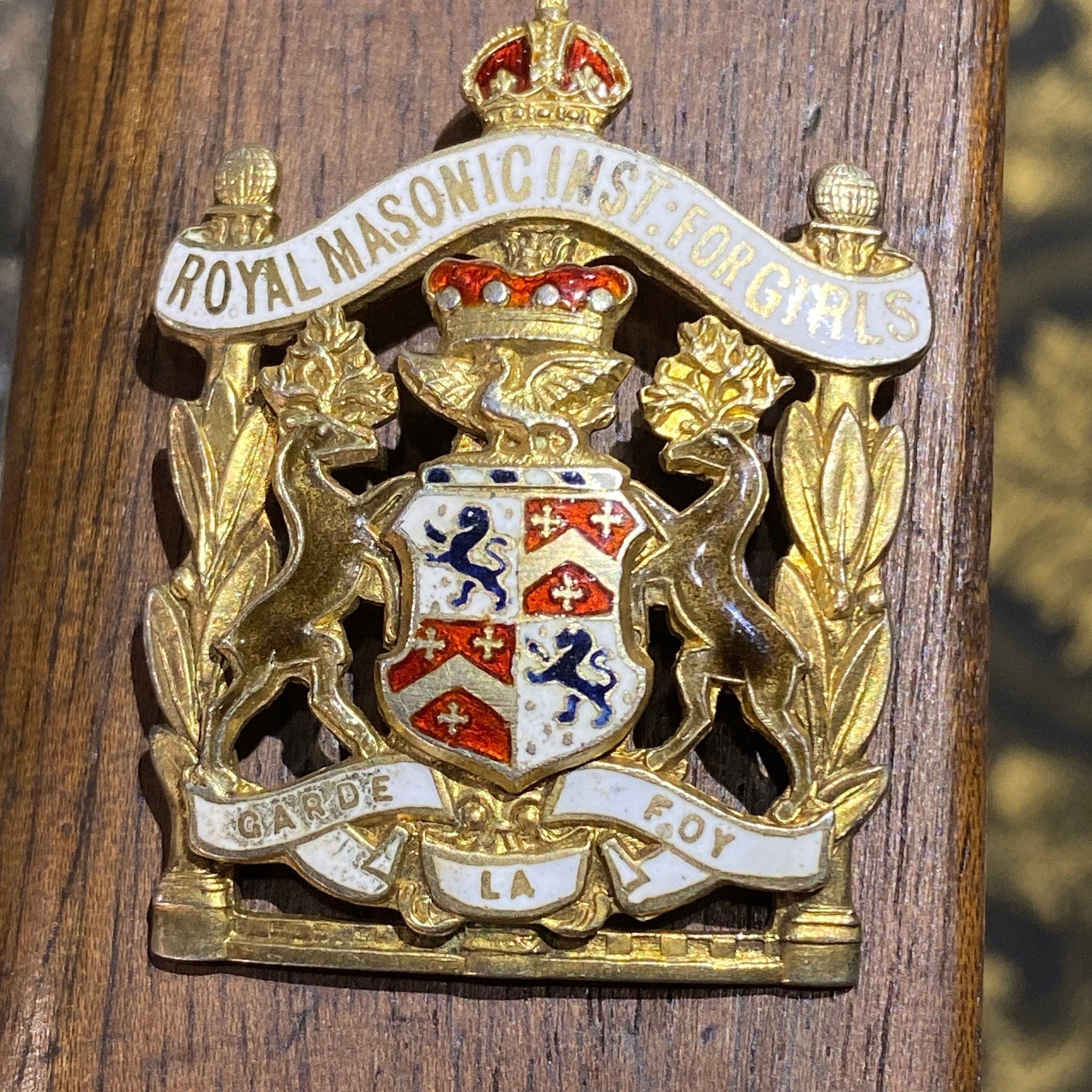 An antique sterling silver vermeil & enamel Masonic girls school medallion and fob