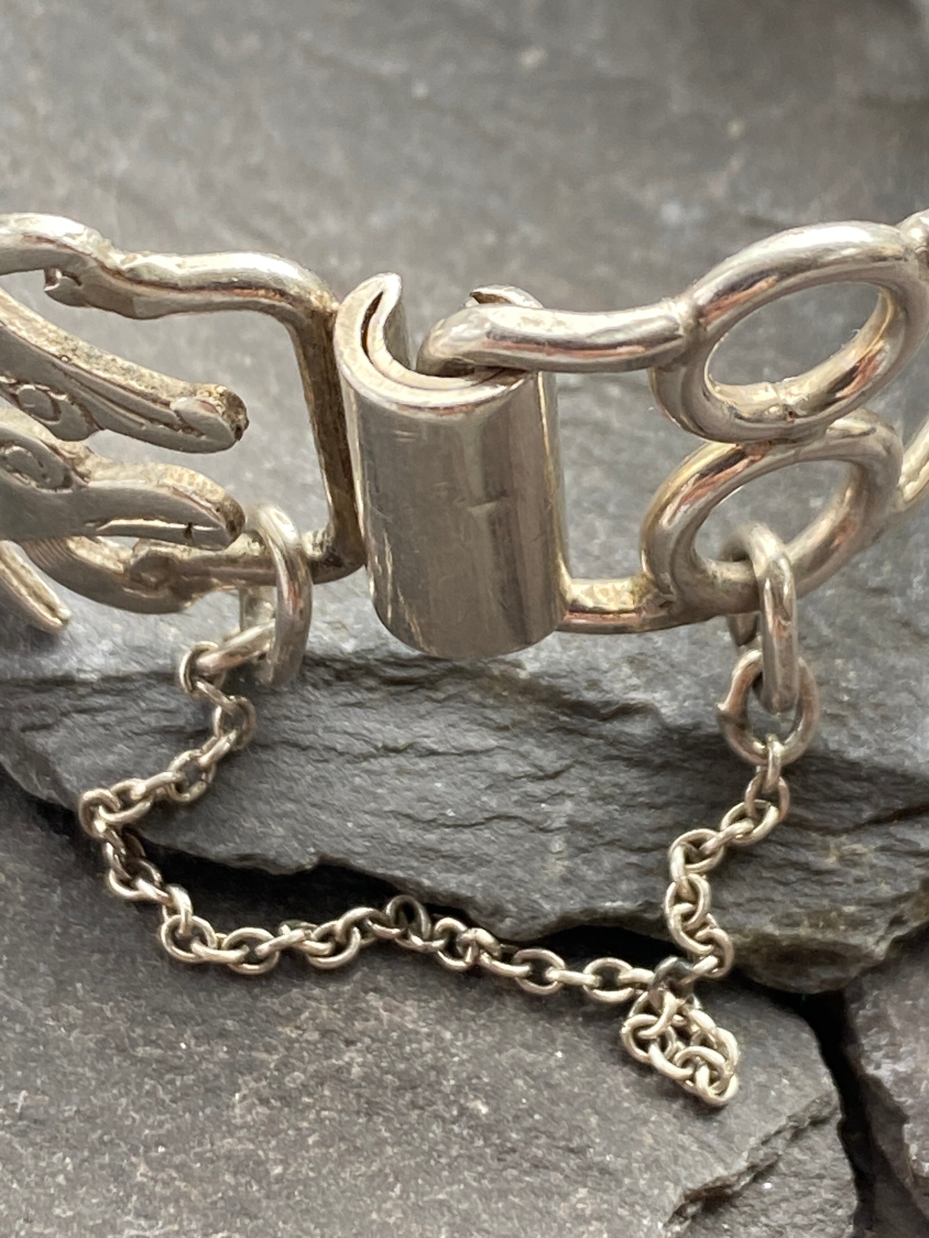 Quite a rare piece by this craftsman. Please be aware that this is a bracelet for a fairly small wrist of 7 Inches circumference. Please be sure to measure your wrist prior to purchasing.
