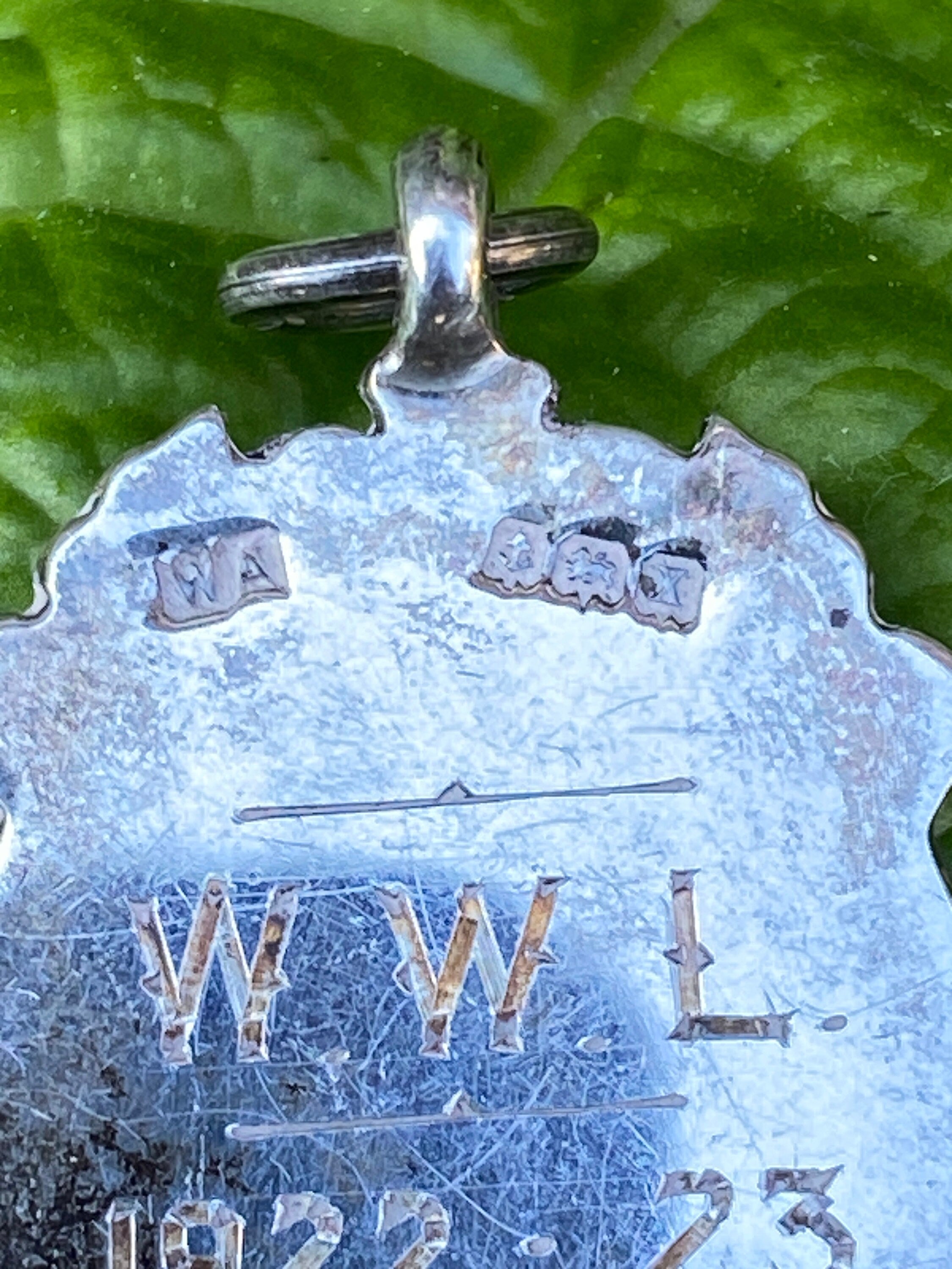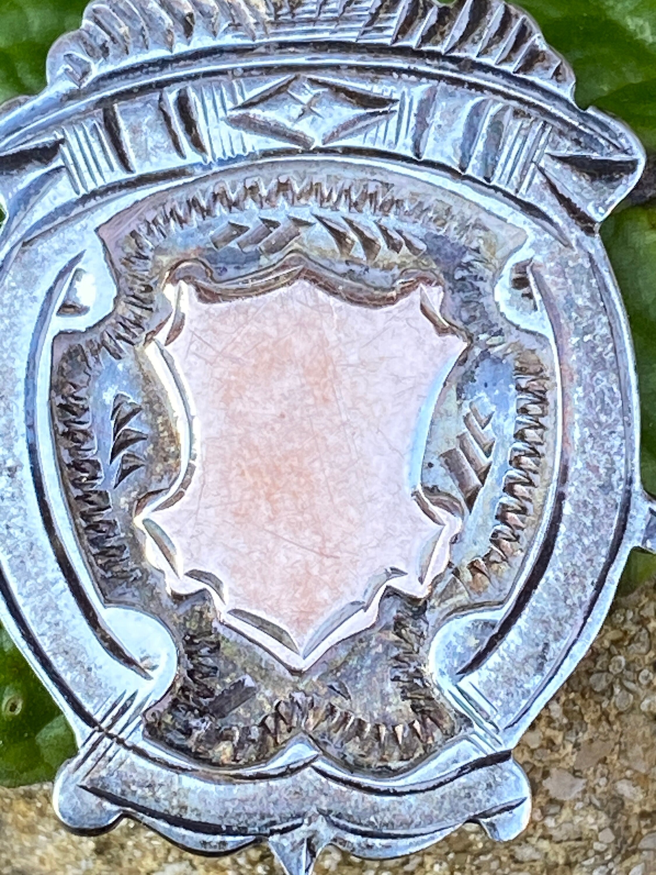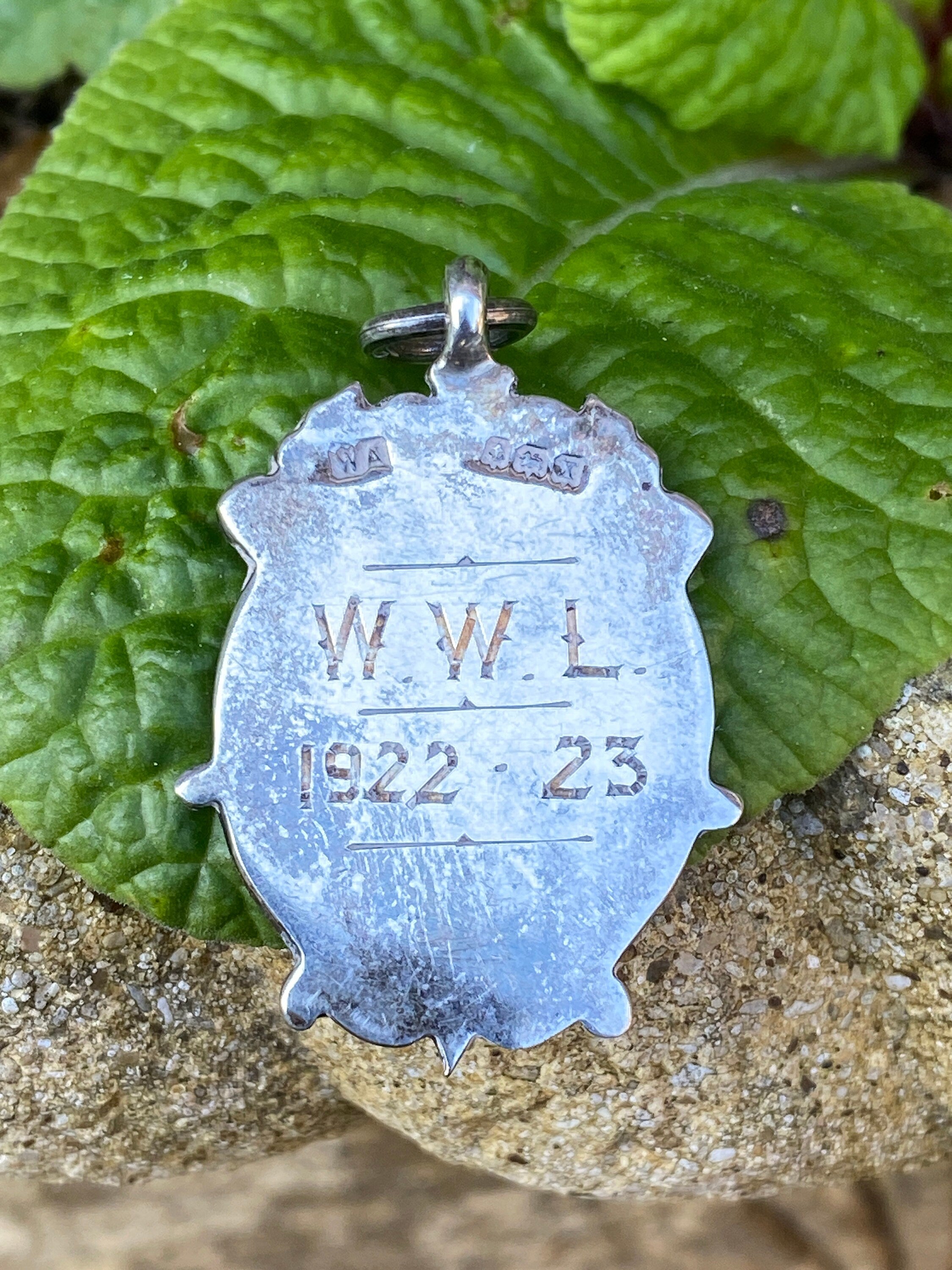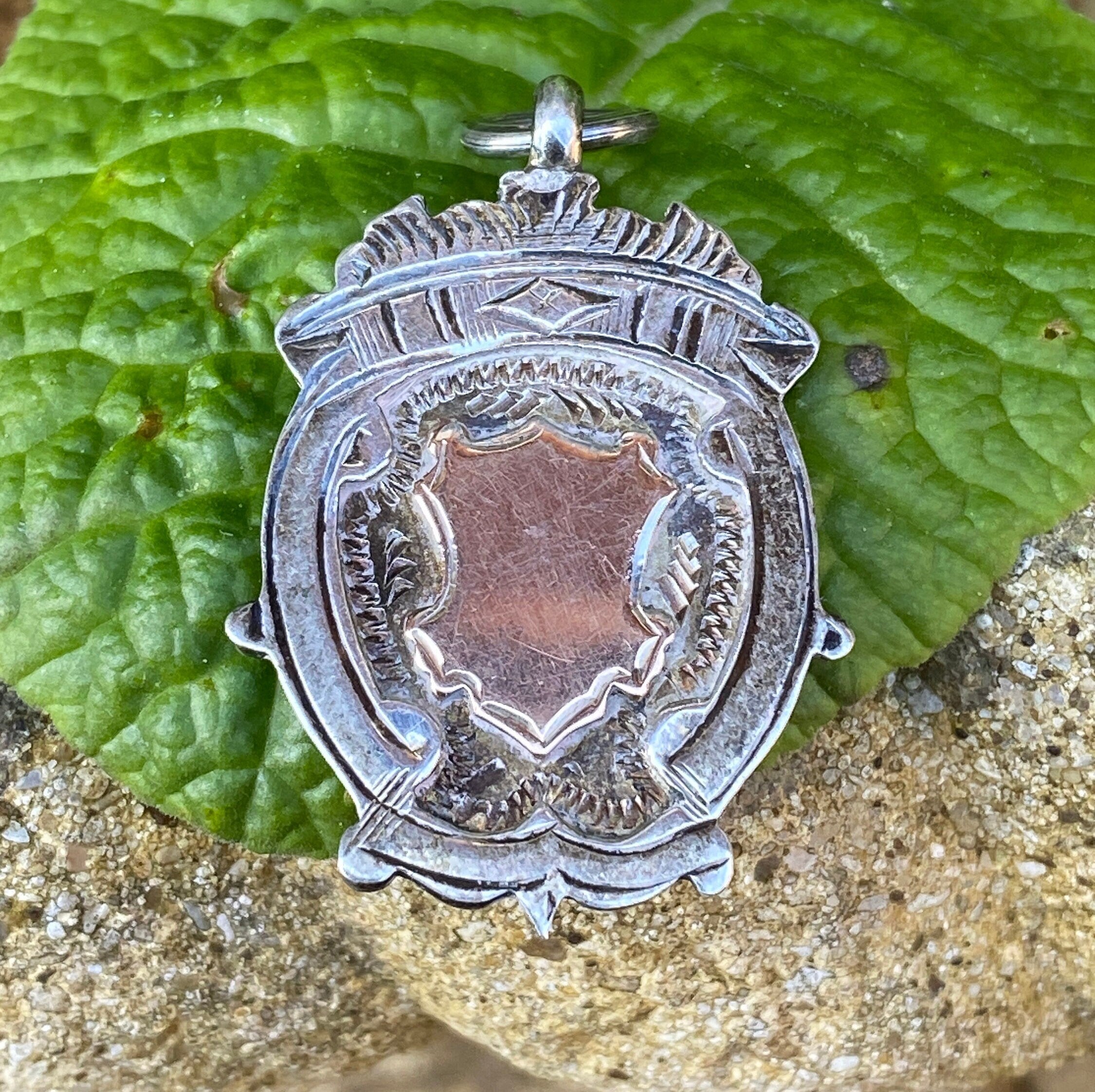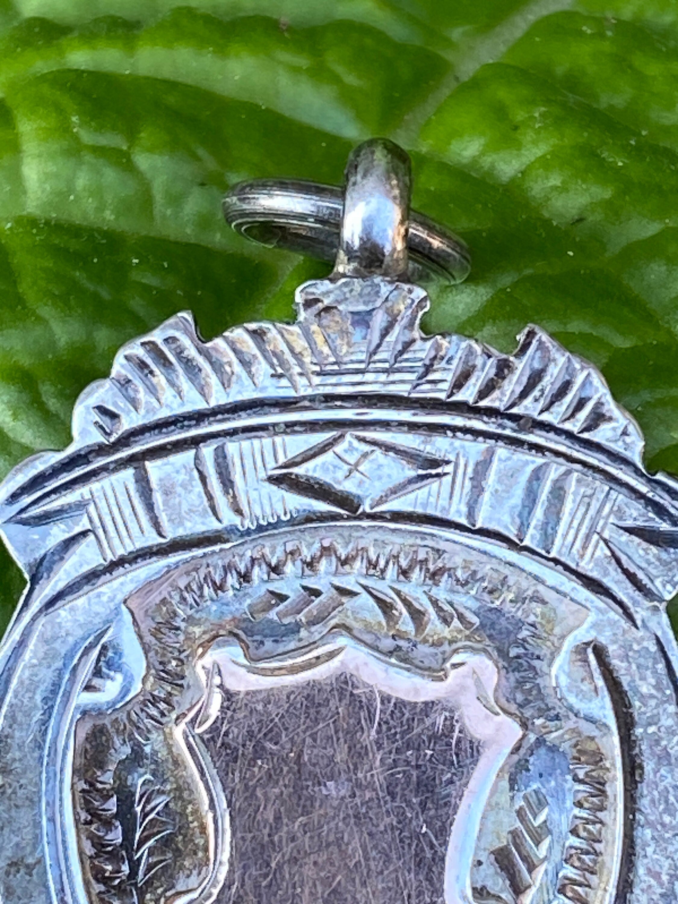 An antique sporting medal fob in sterling silver with 9ct gold overlay shield