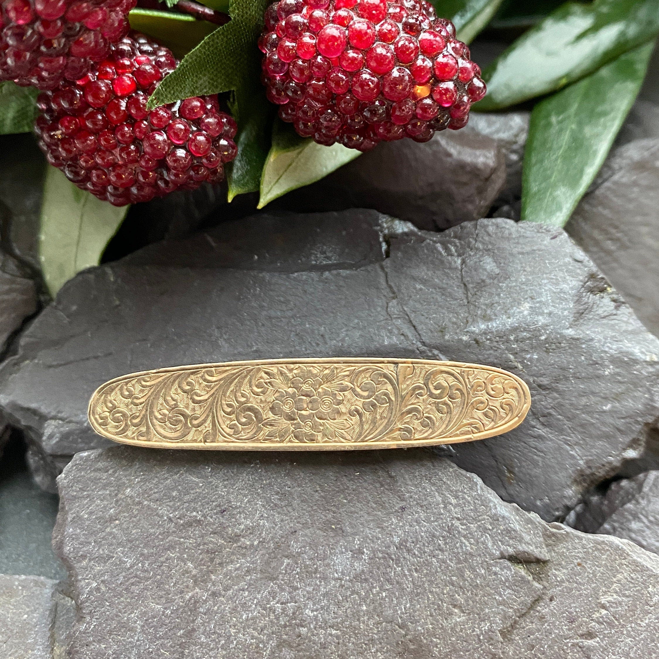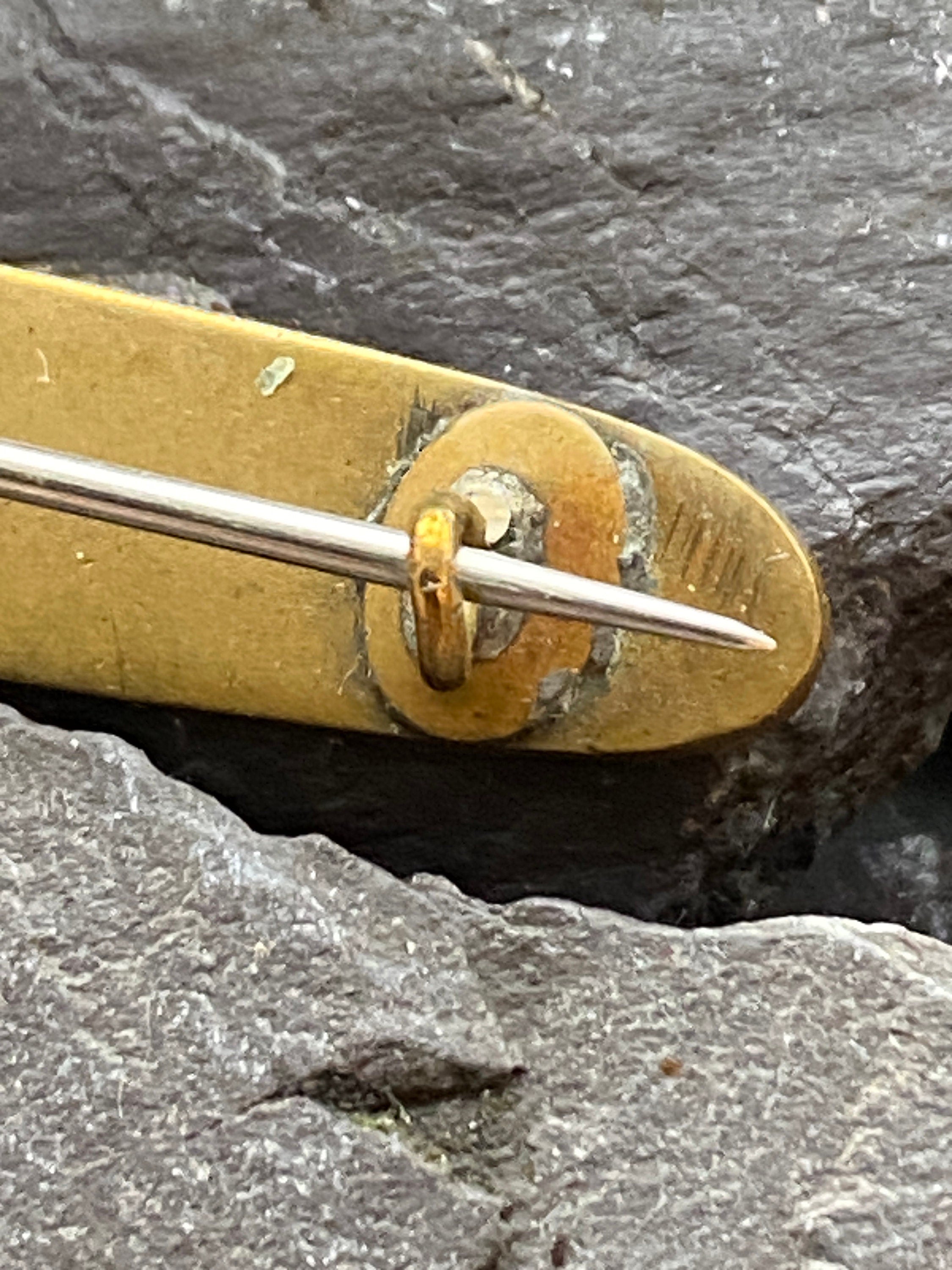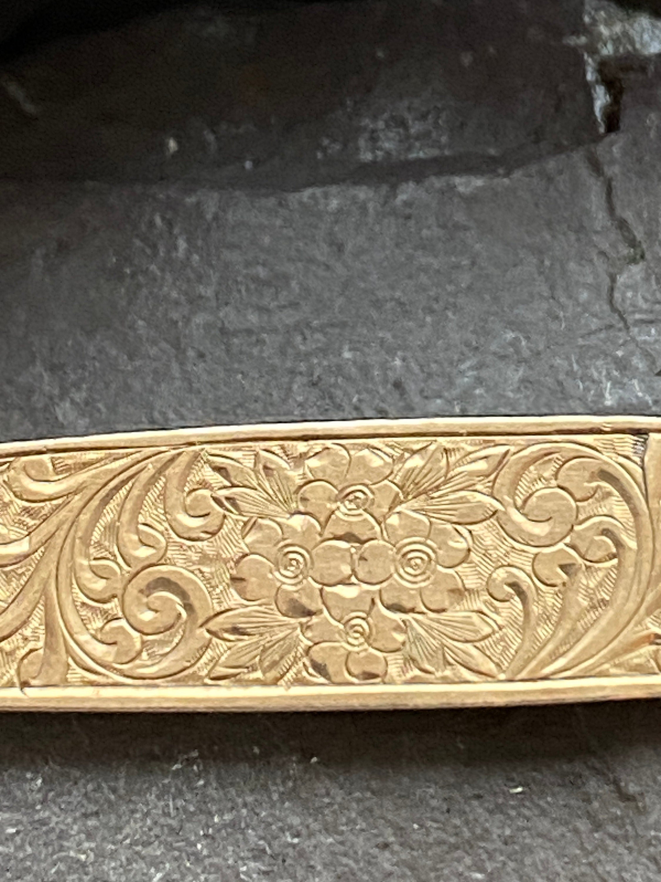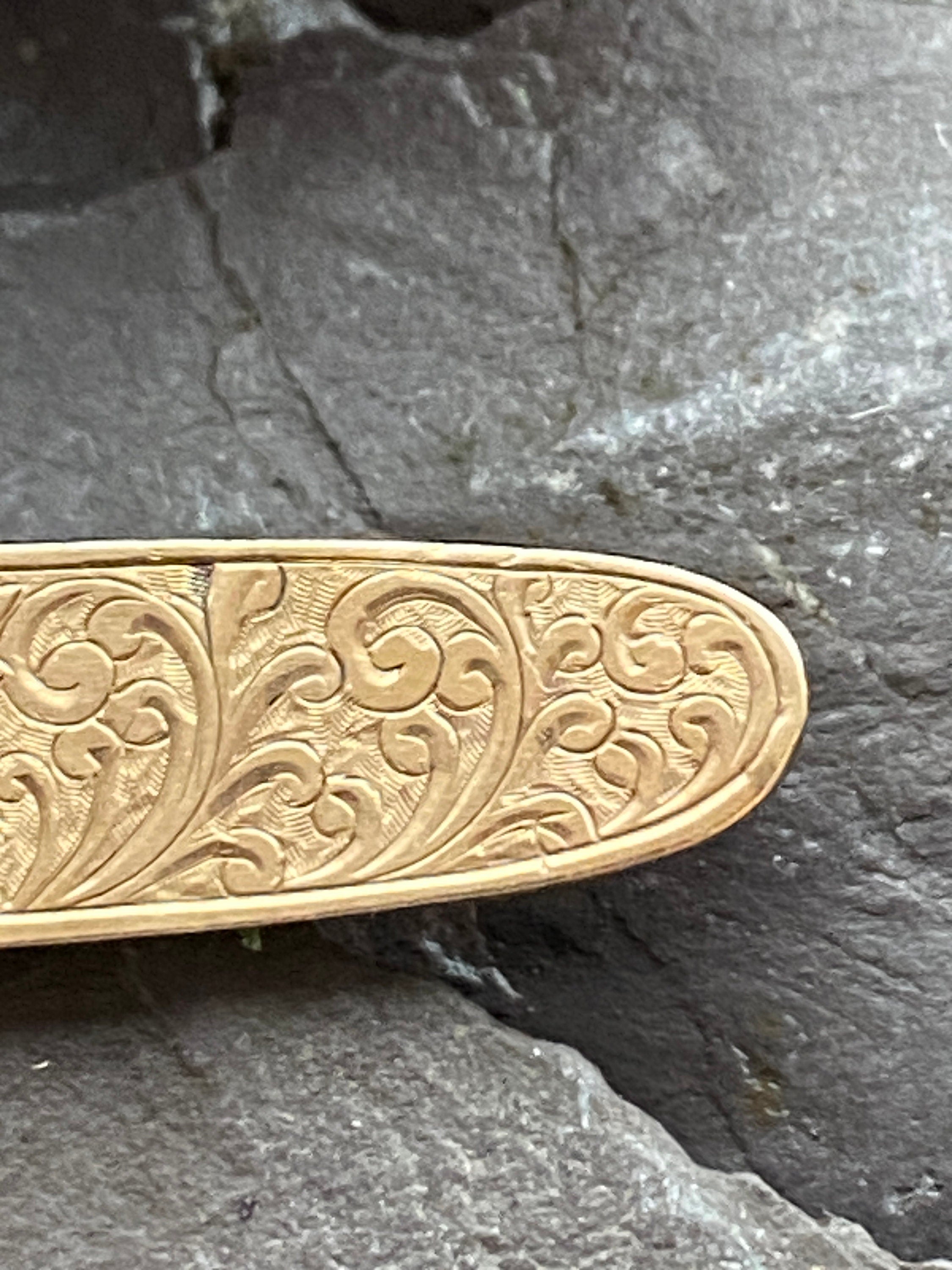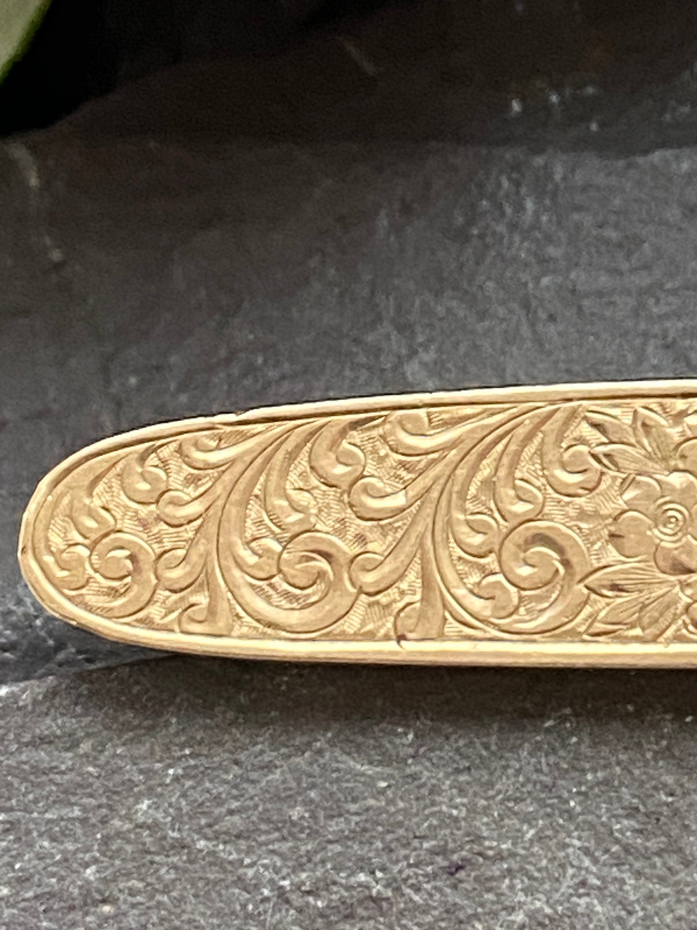 A very smart Edwardian bar brooch with gold fronted floral chased panel over brass.
