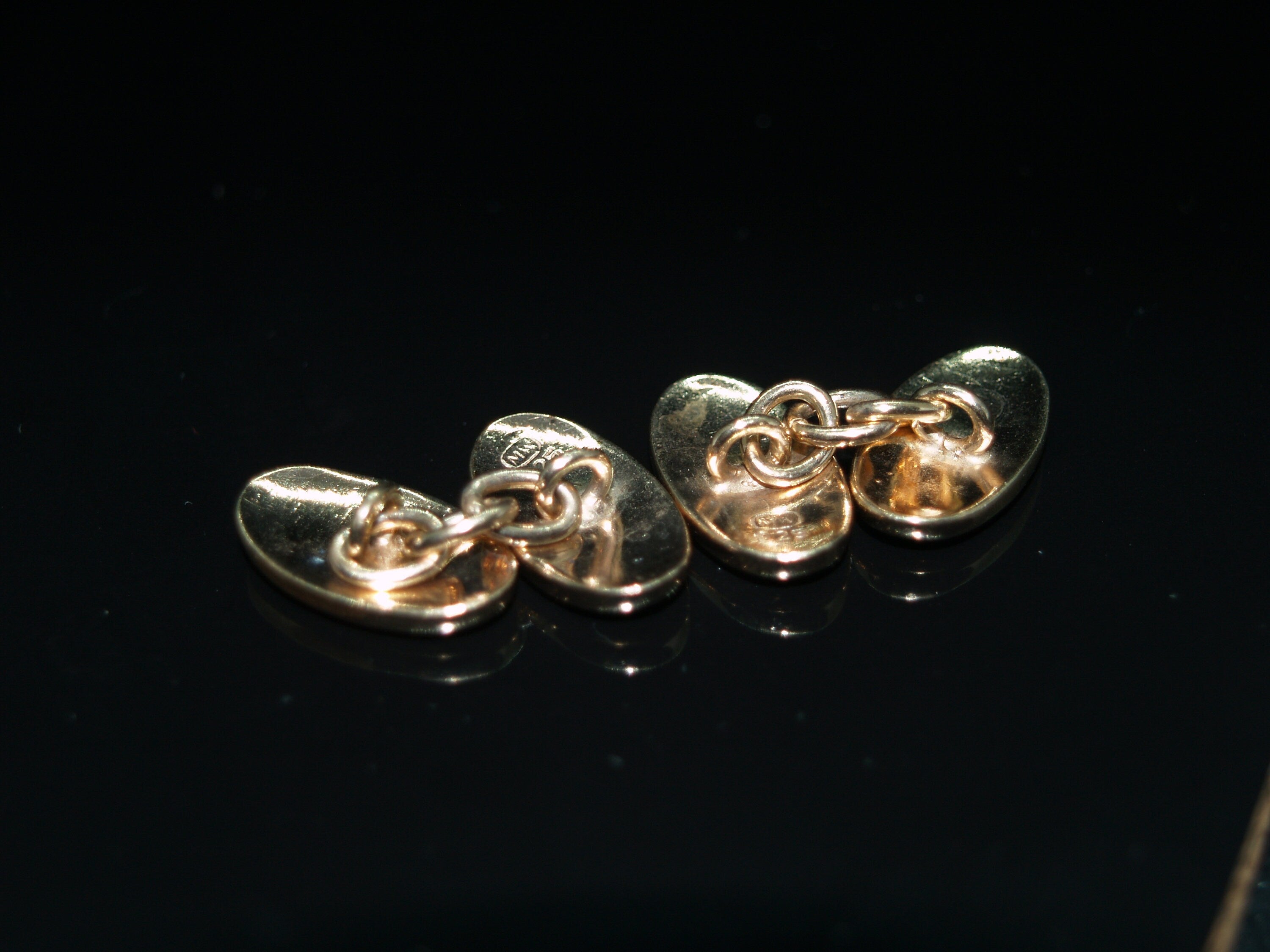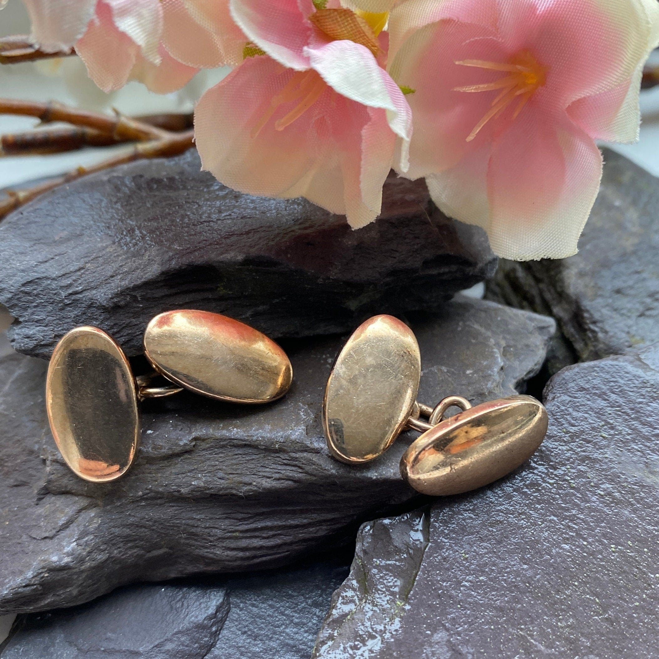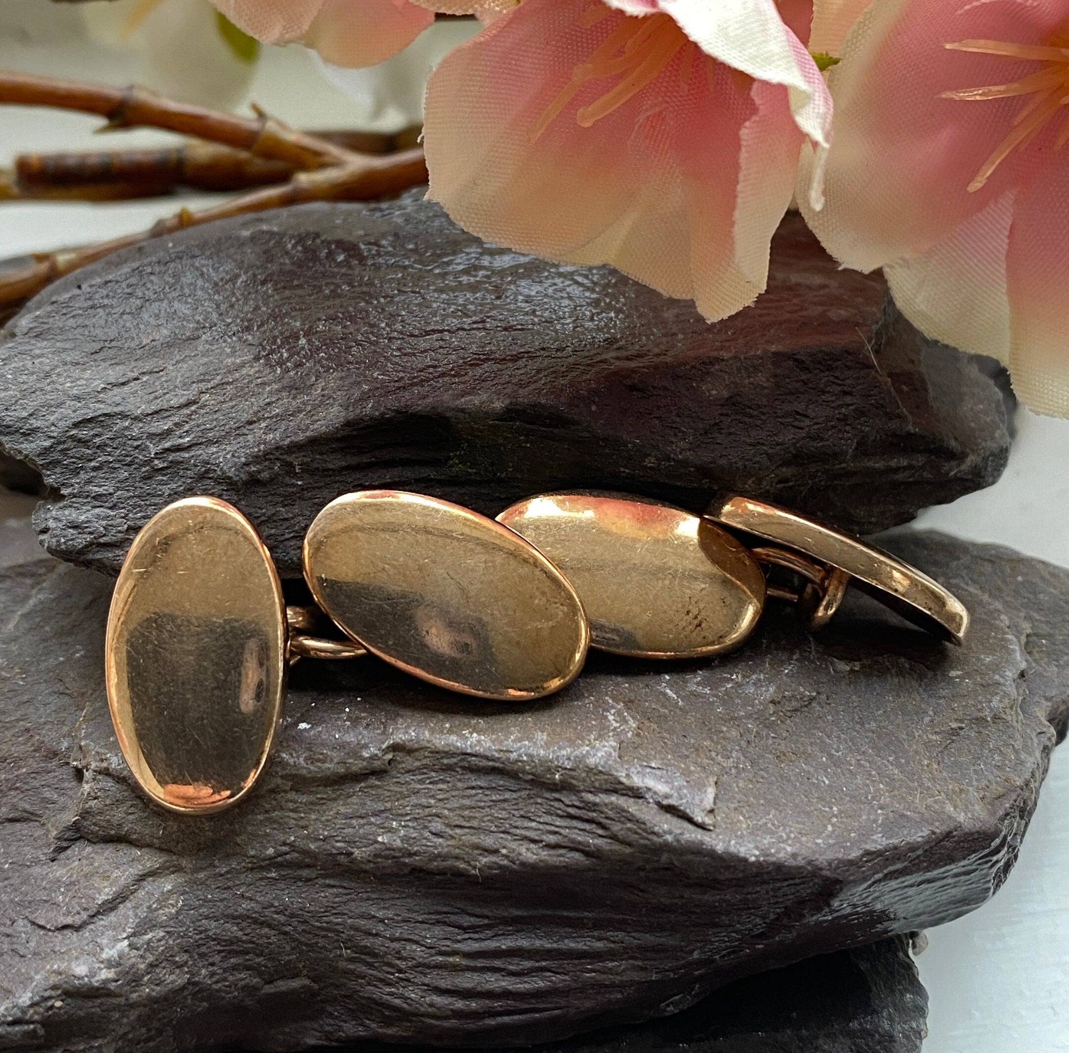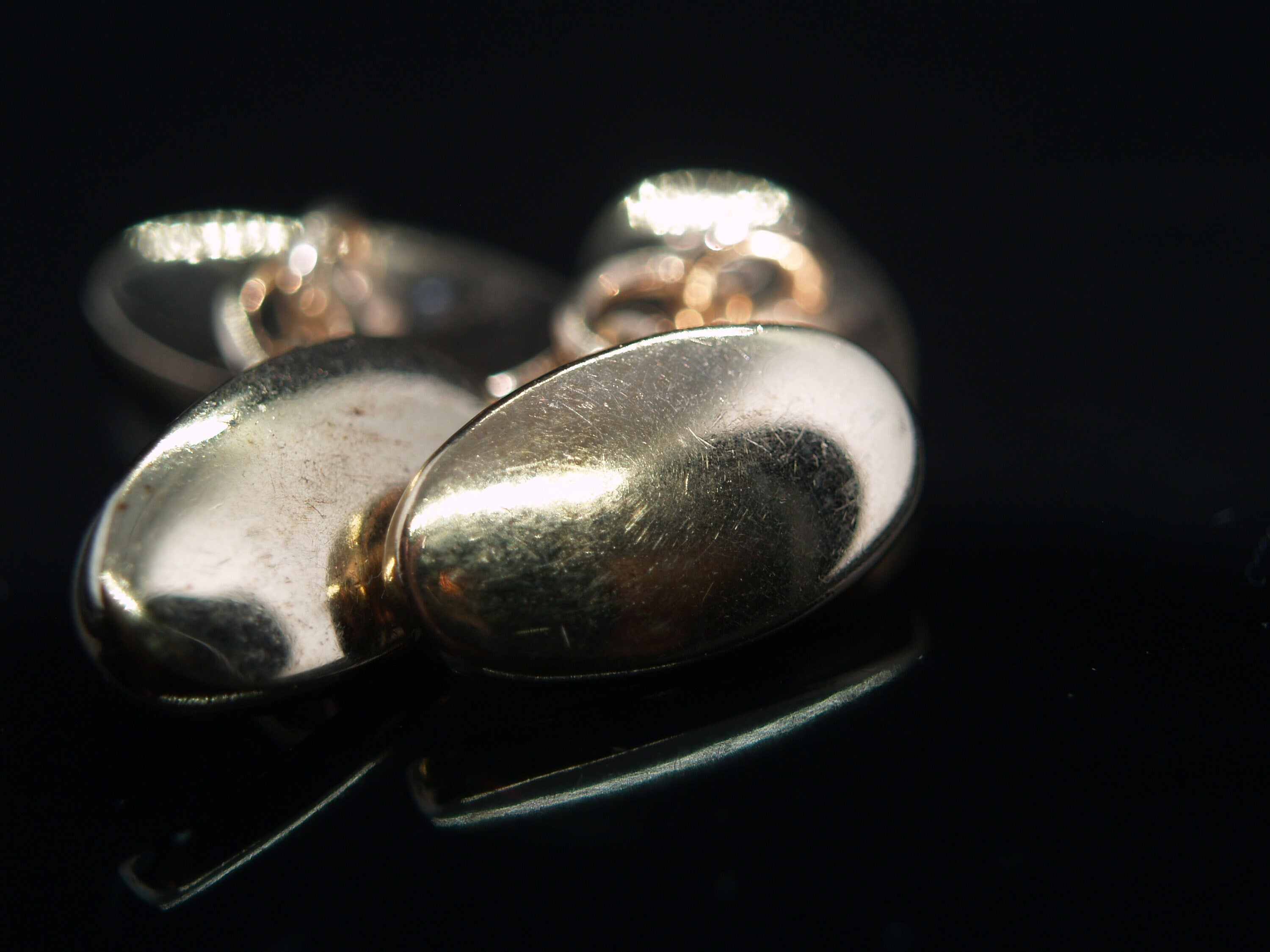 A heavy sterling silver pair of plain cuff links finished in a gold wash (gilded).