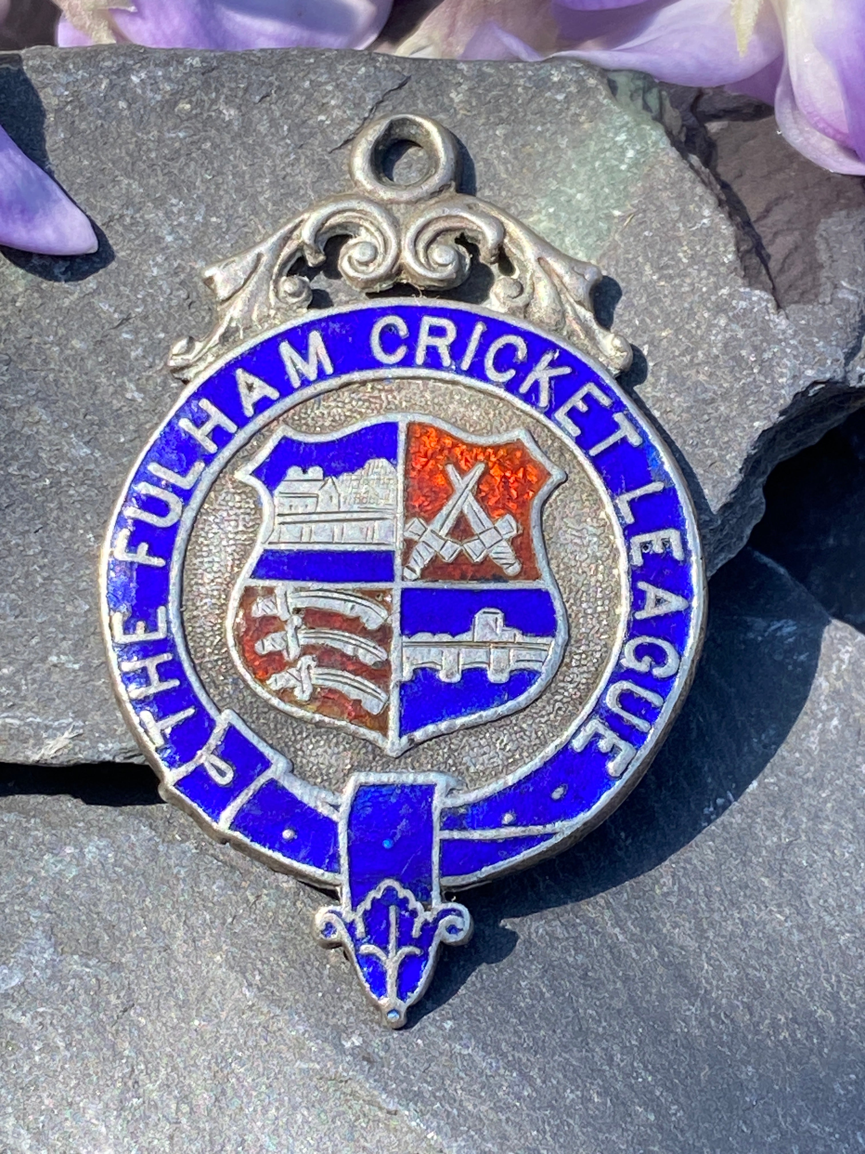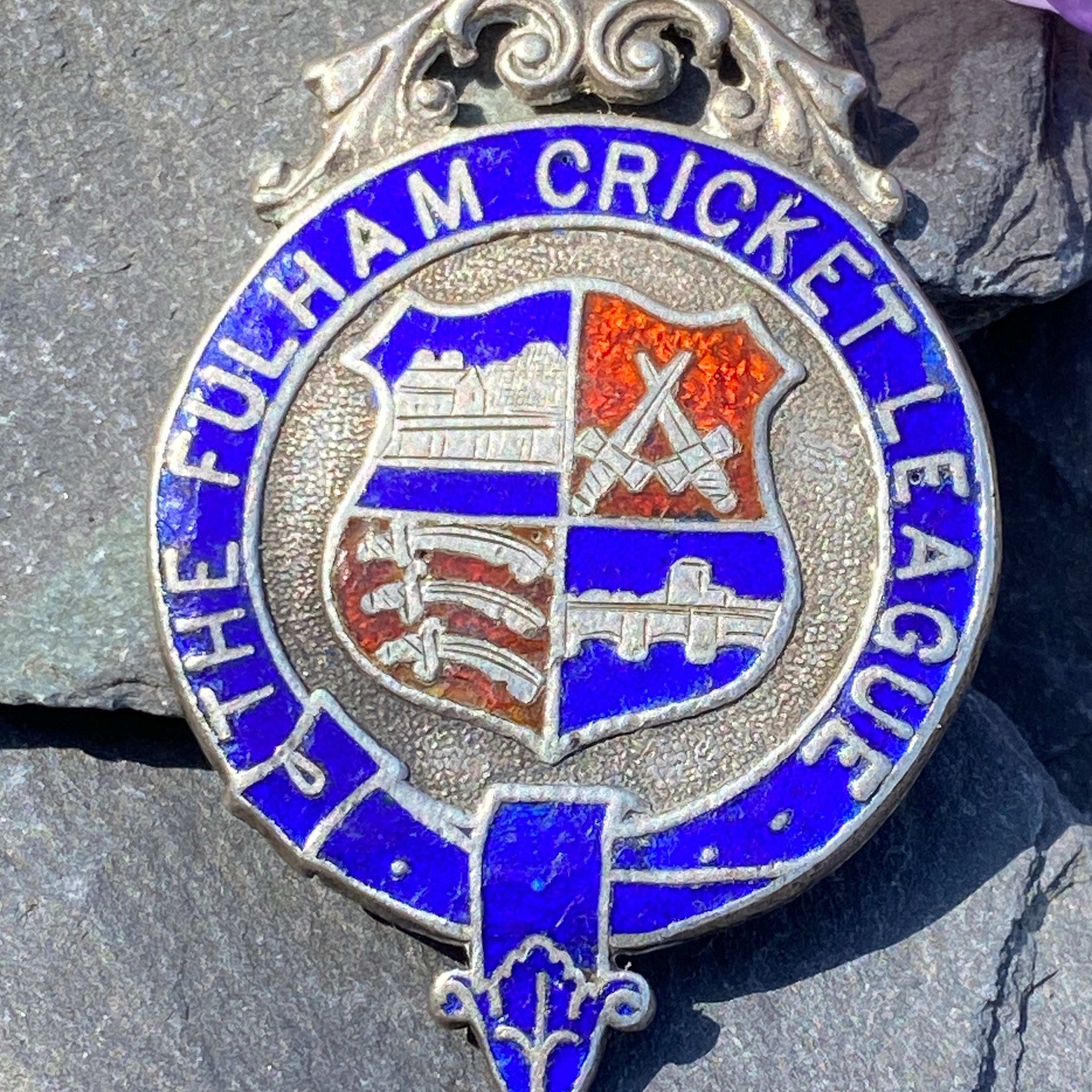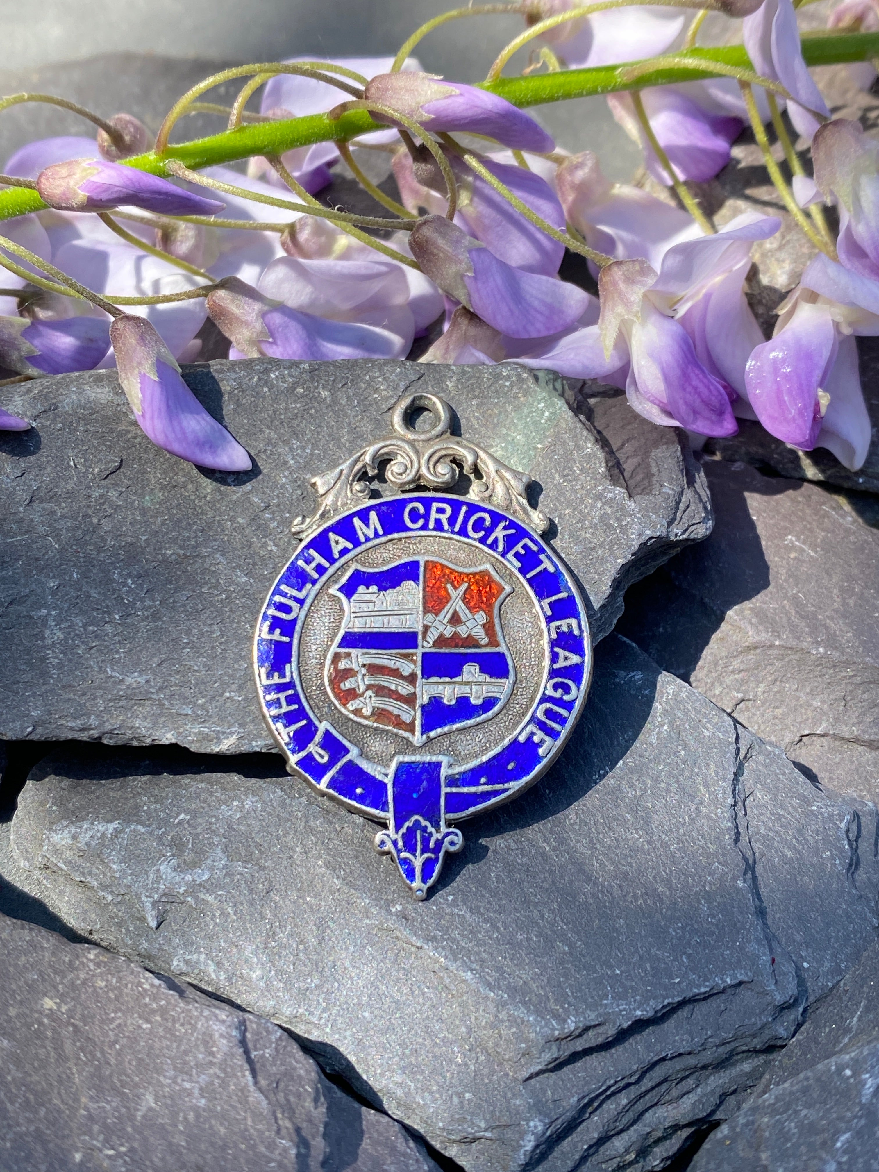 An antique sterling silver and enamel sporting medal for 'The Fulham Cricket League'