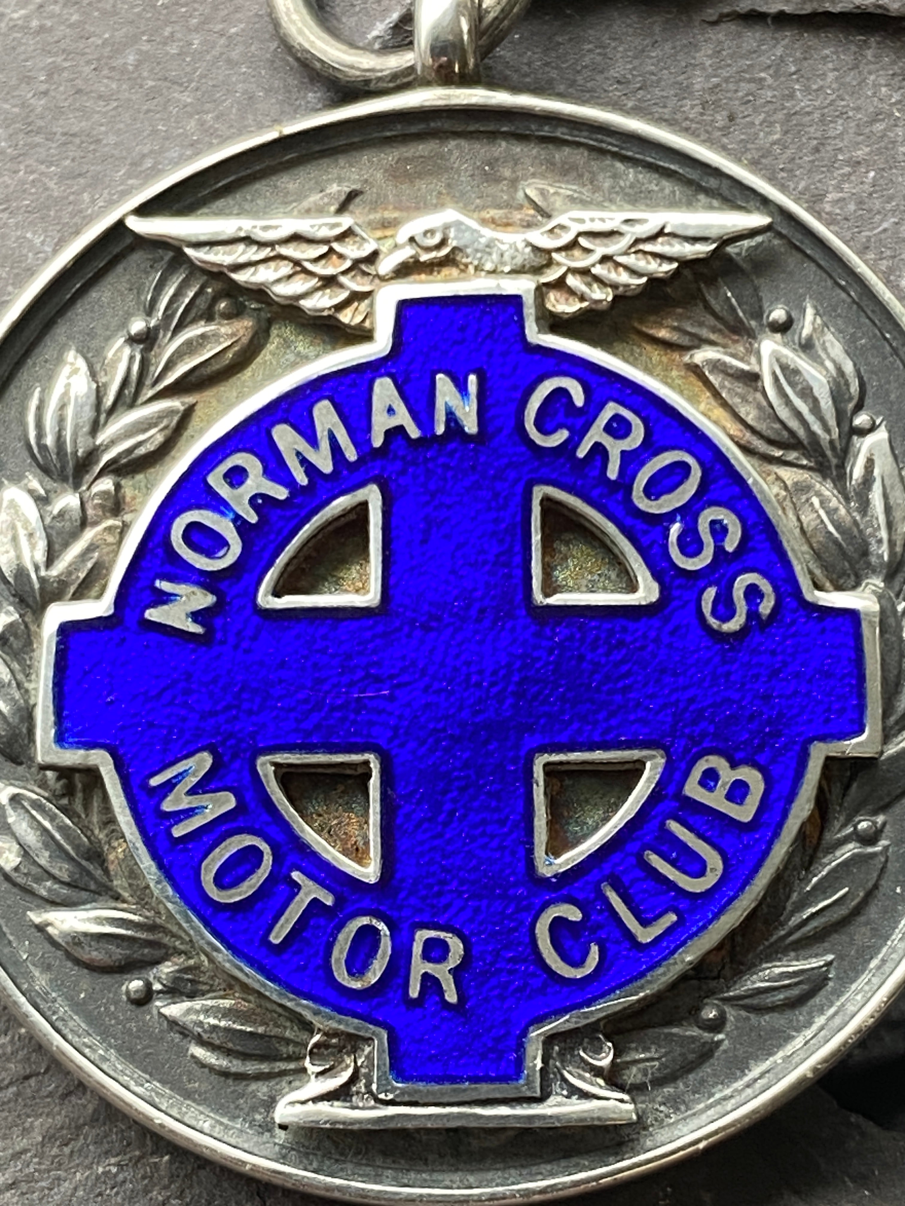 A rare sterling Silver & Enamel Norman Cross Motor club medal for reliability.