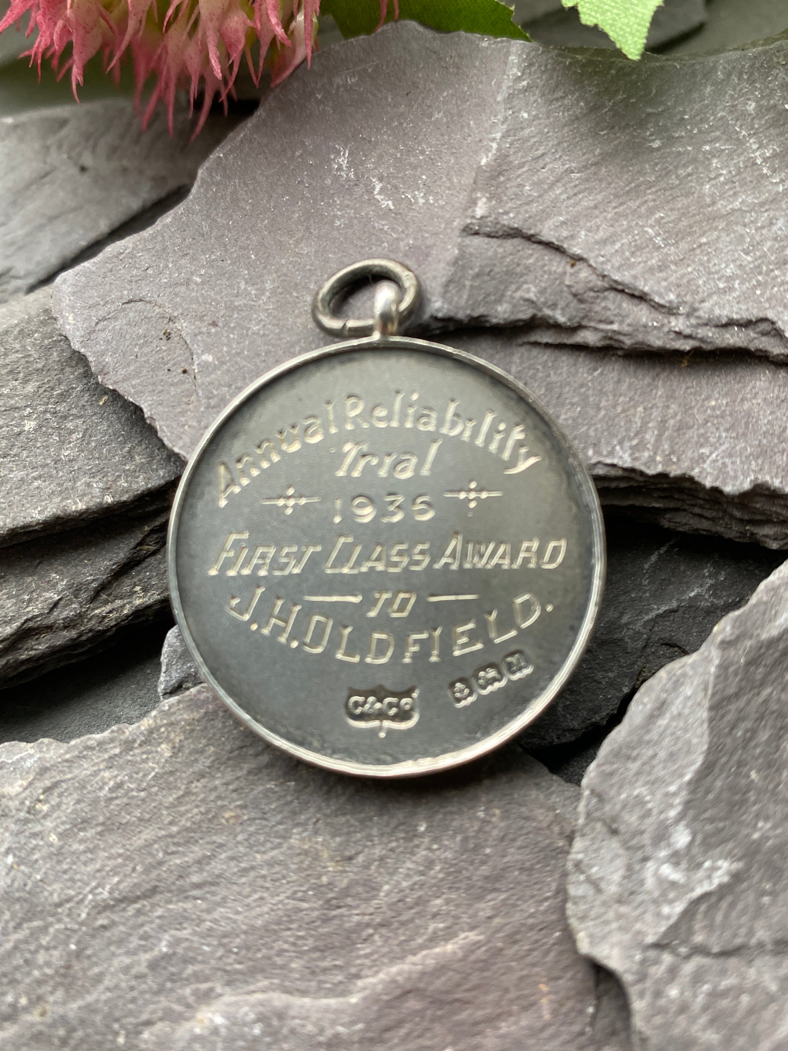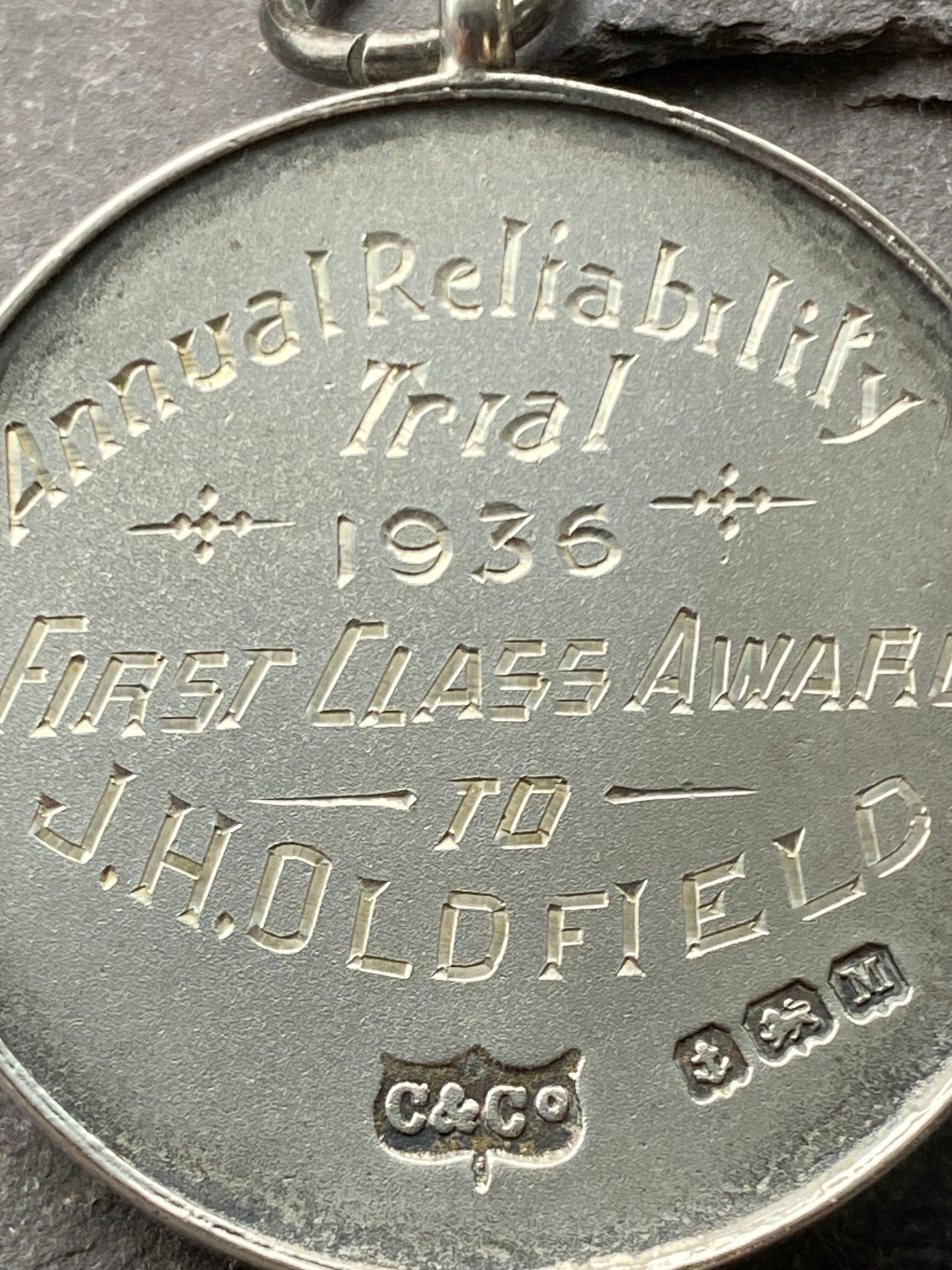 Awarded for Annual Reliability trial- 1936 first class award. J Holdfield.