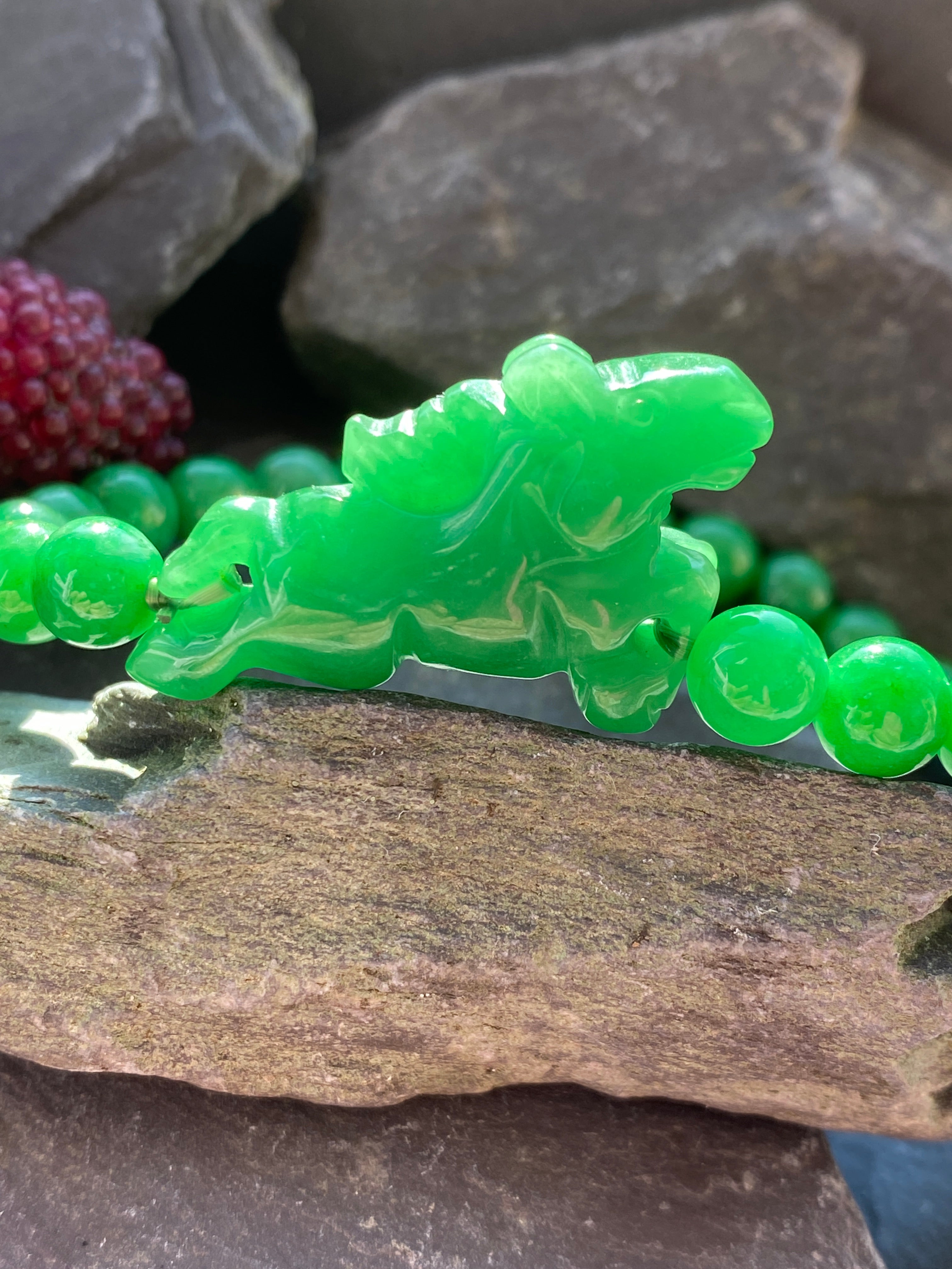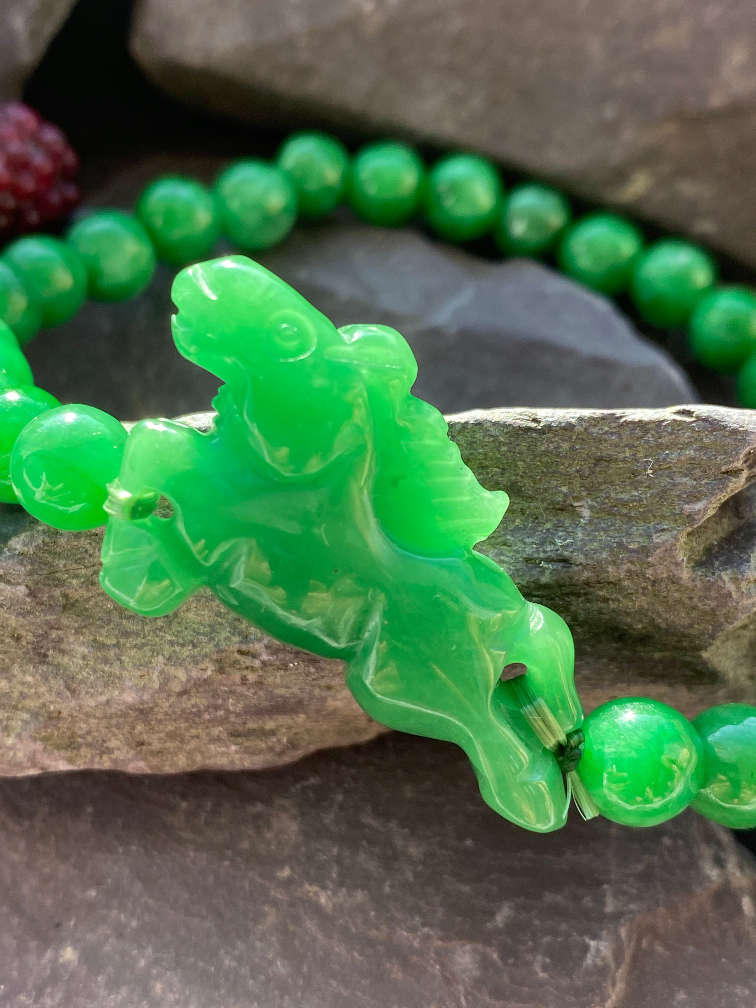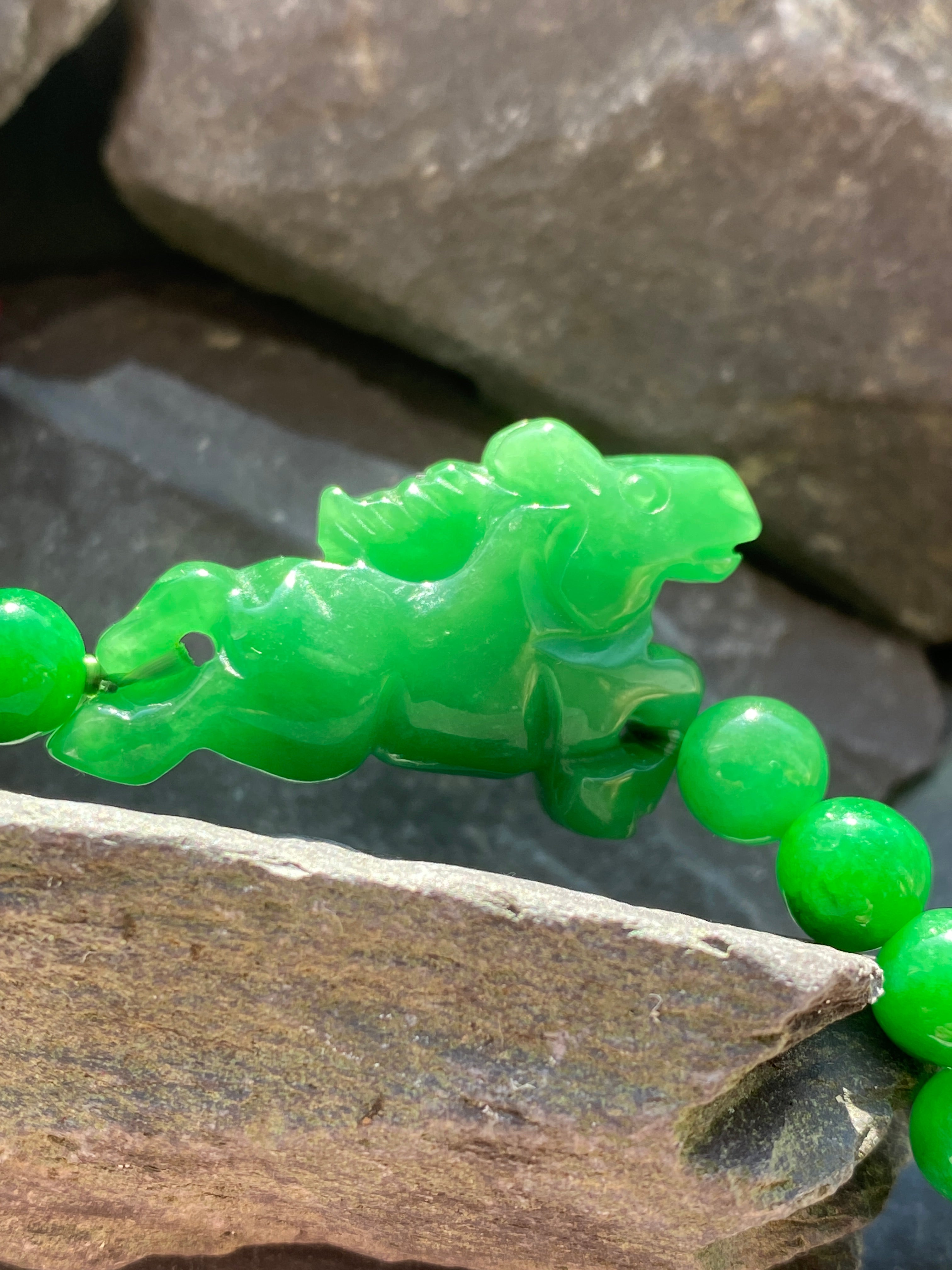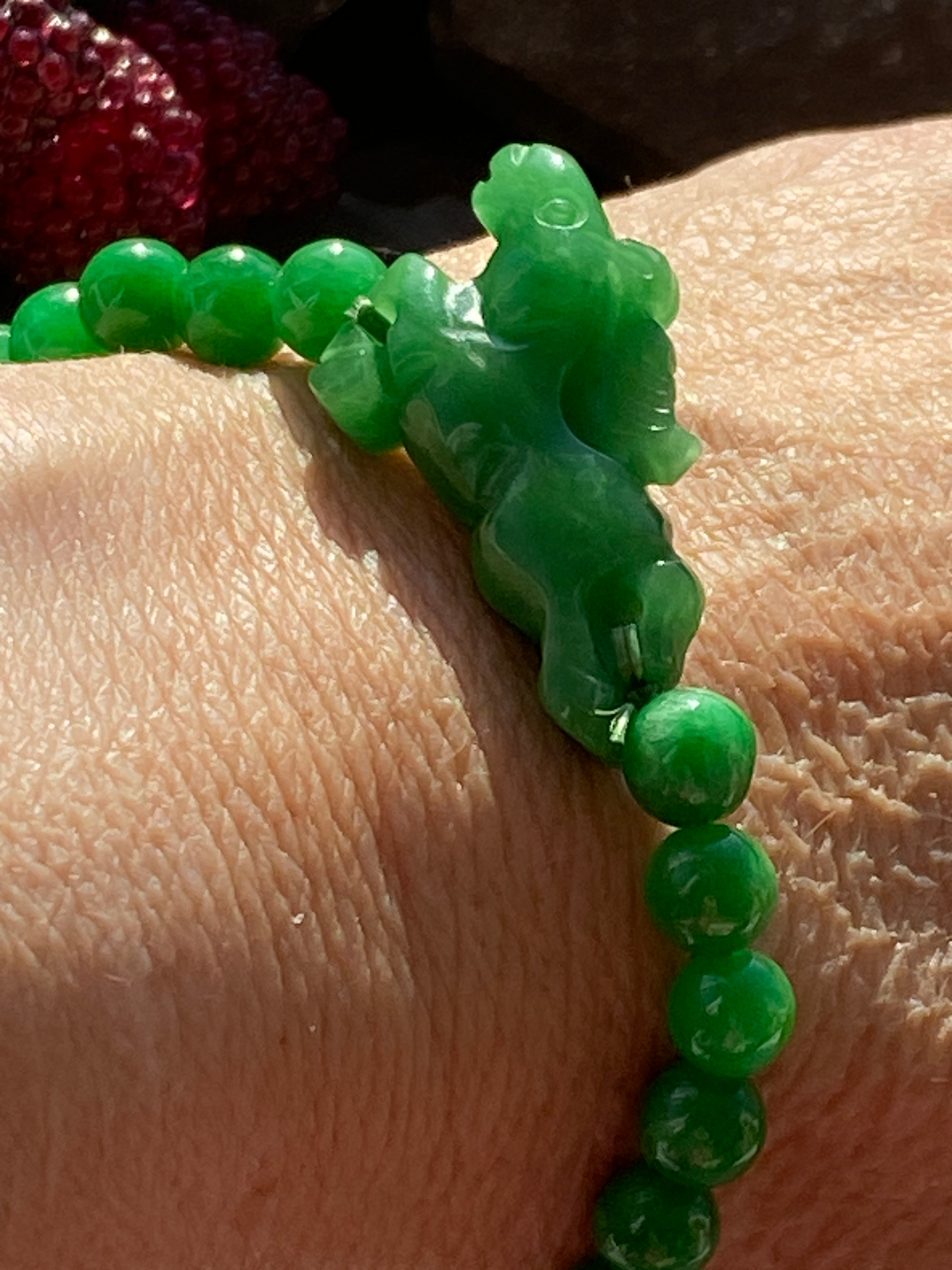A smart bracelet featuring a carved Jade horse and carved round beads