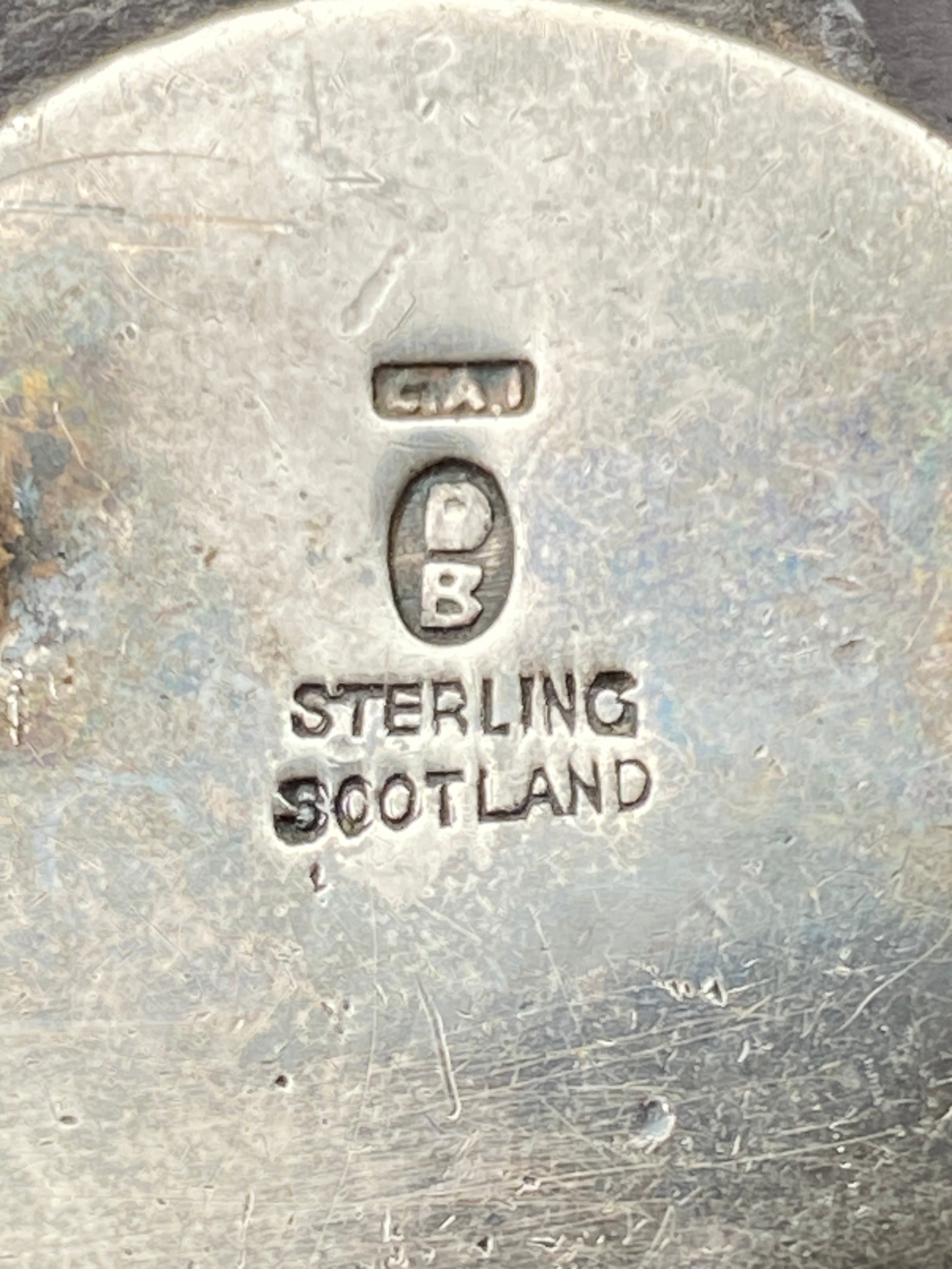 A vintage sterling silver brooch designed and made by Hamish Dawson Bowman, a member of the Celtic Art Industries. Signed as such- CAI and DB Circa 1940 Measures...