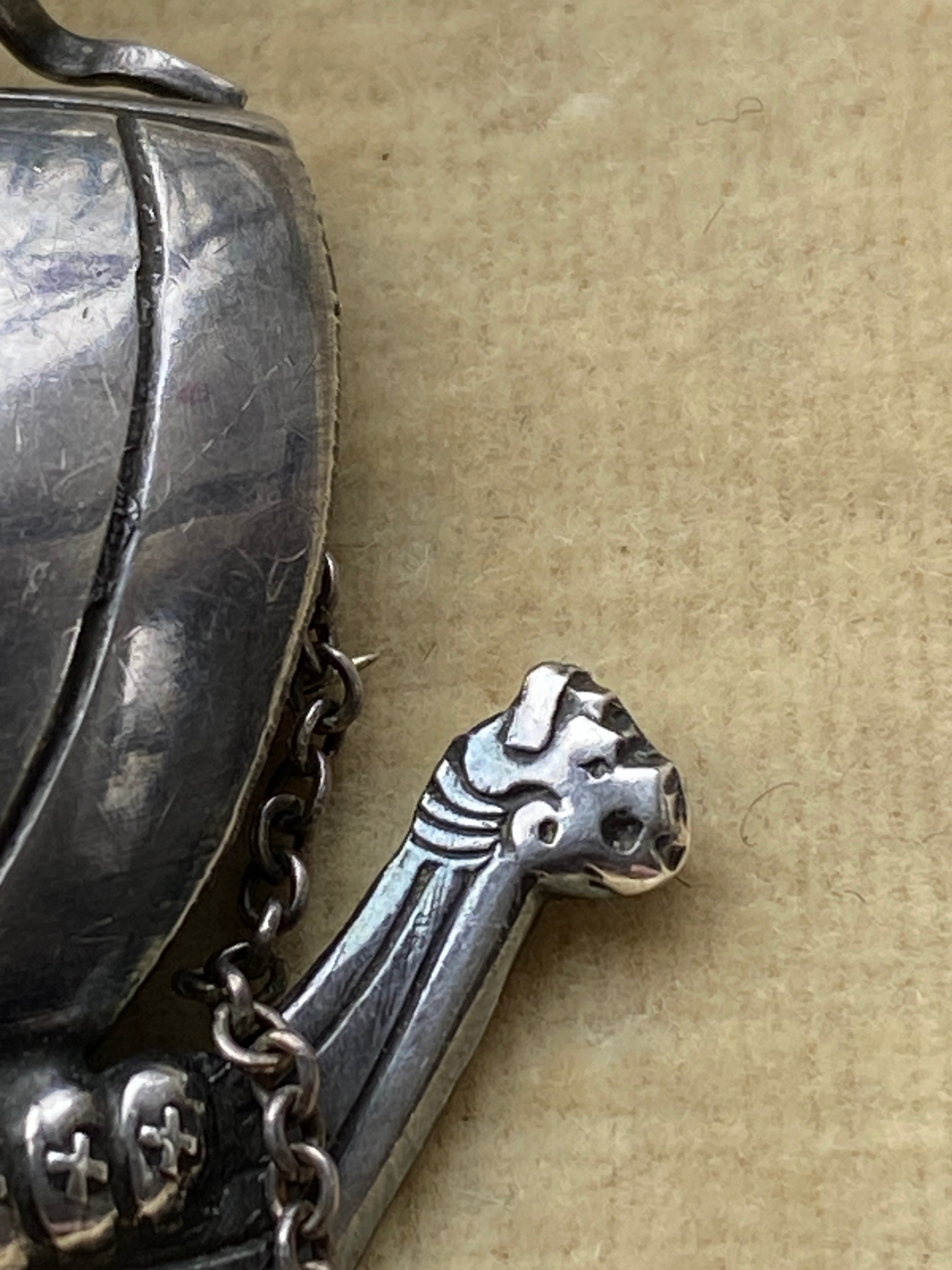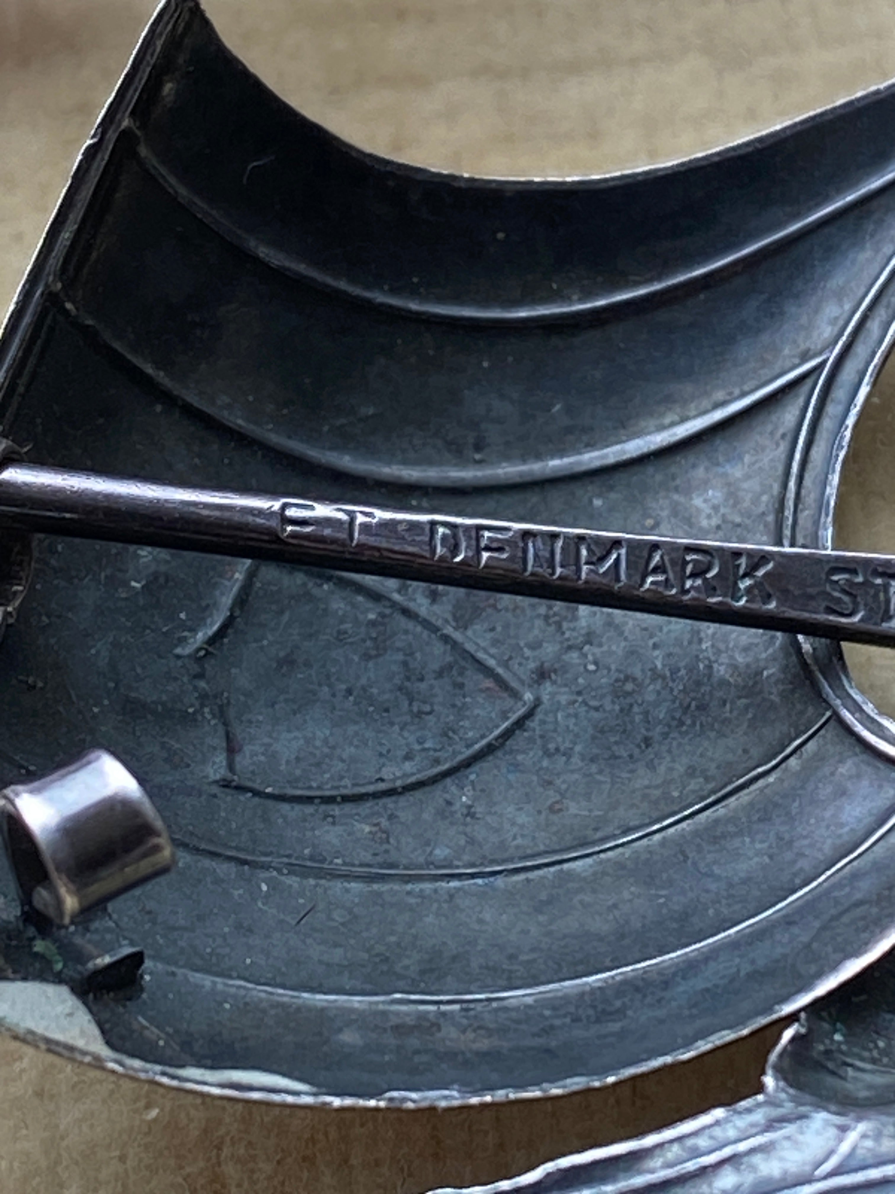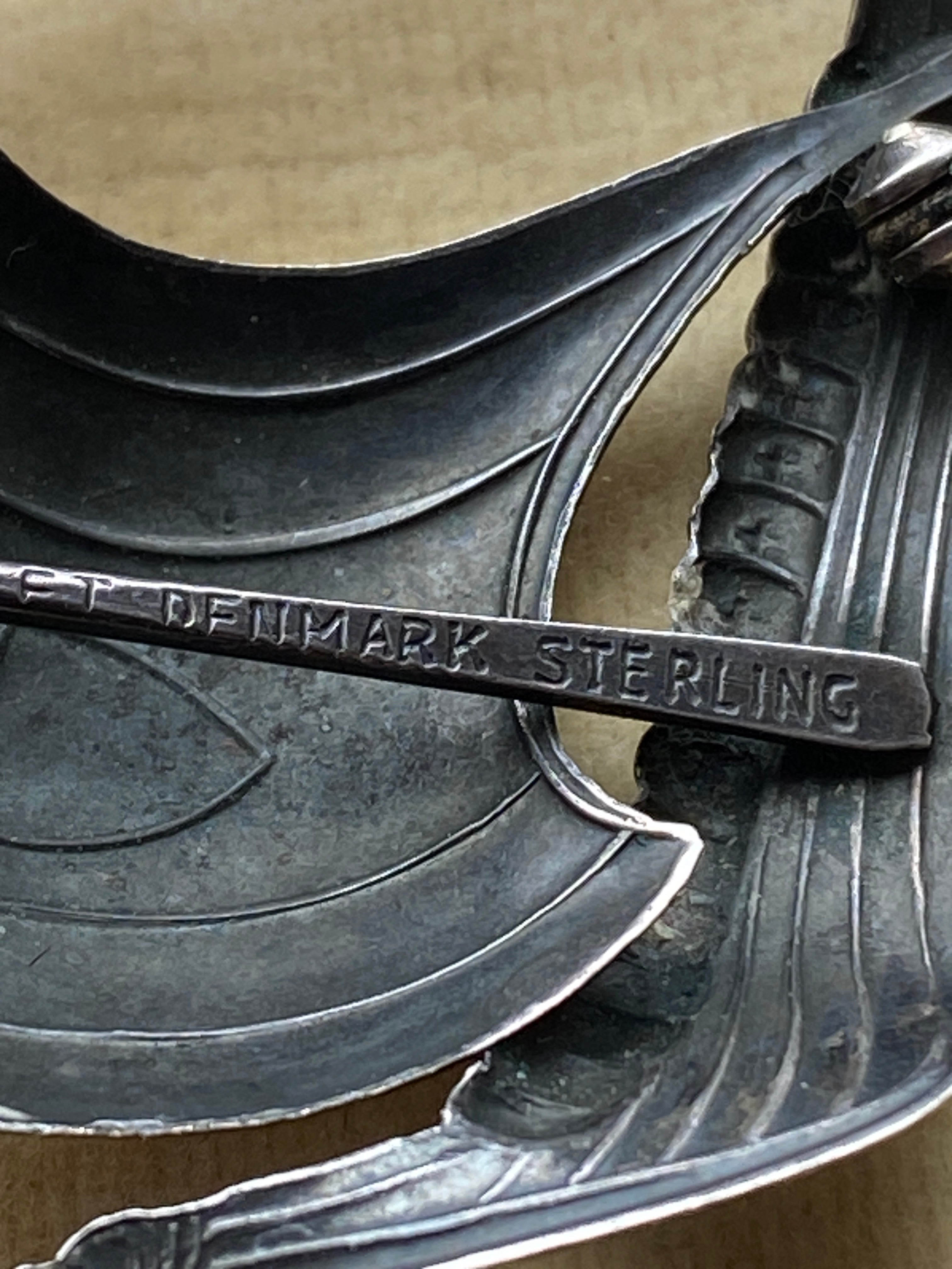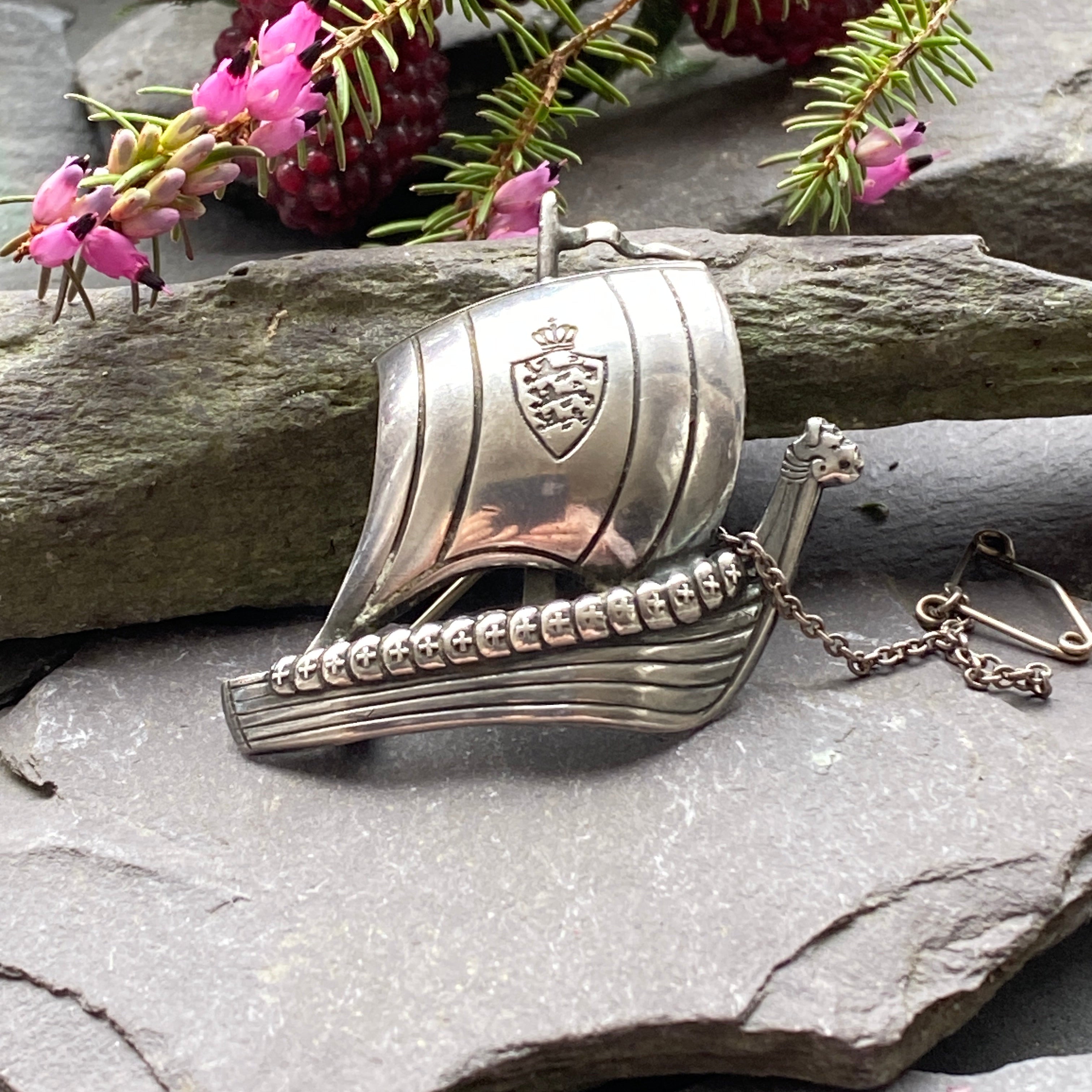 A typical Scandinavian Sterling Silver brooch featuring a Viking ship in full sail.