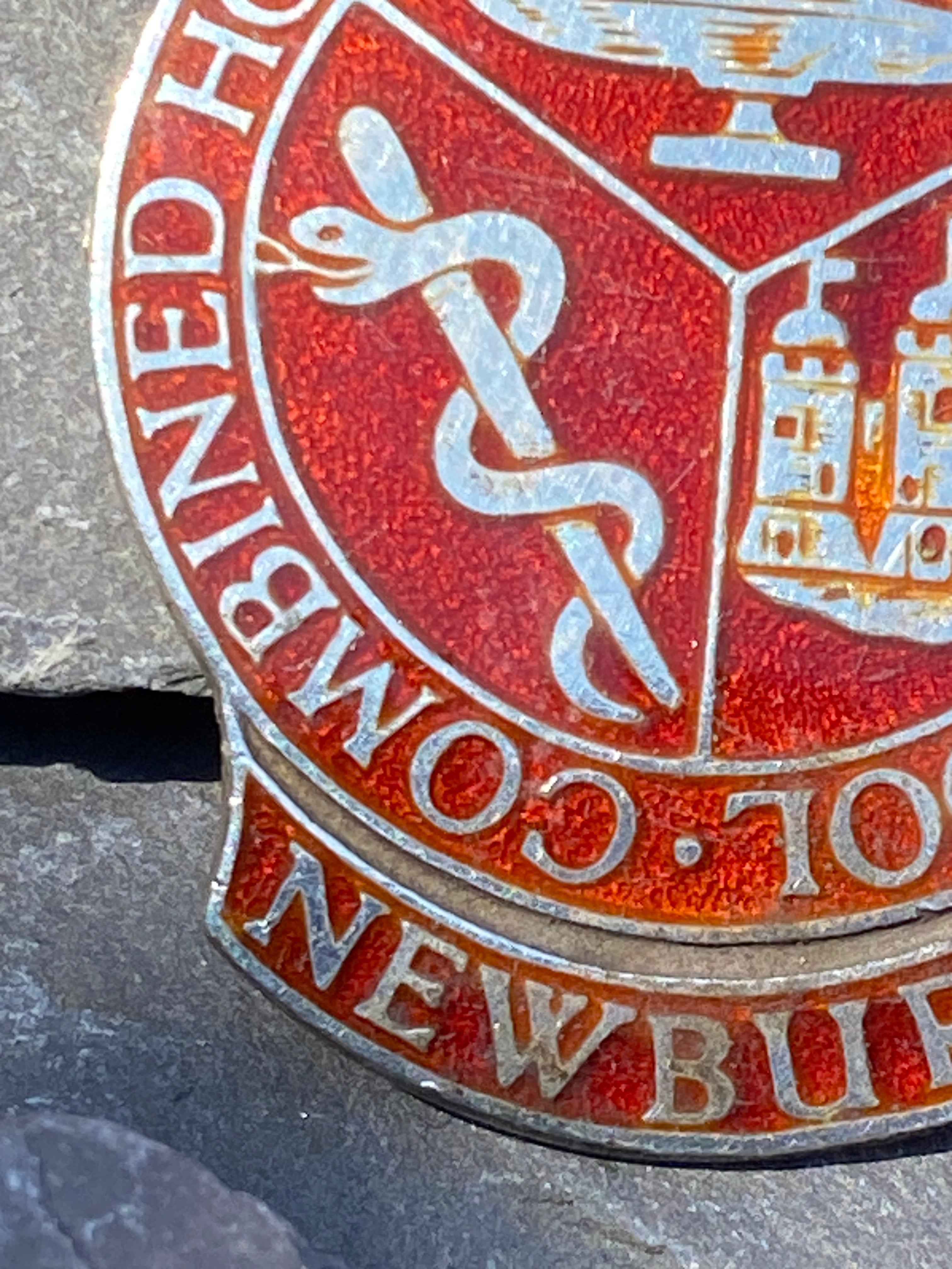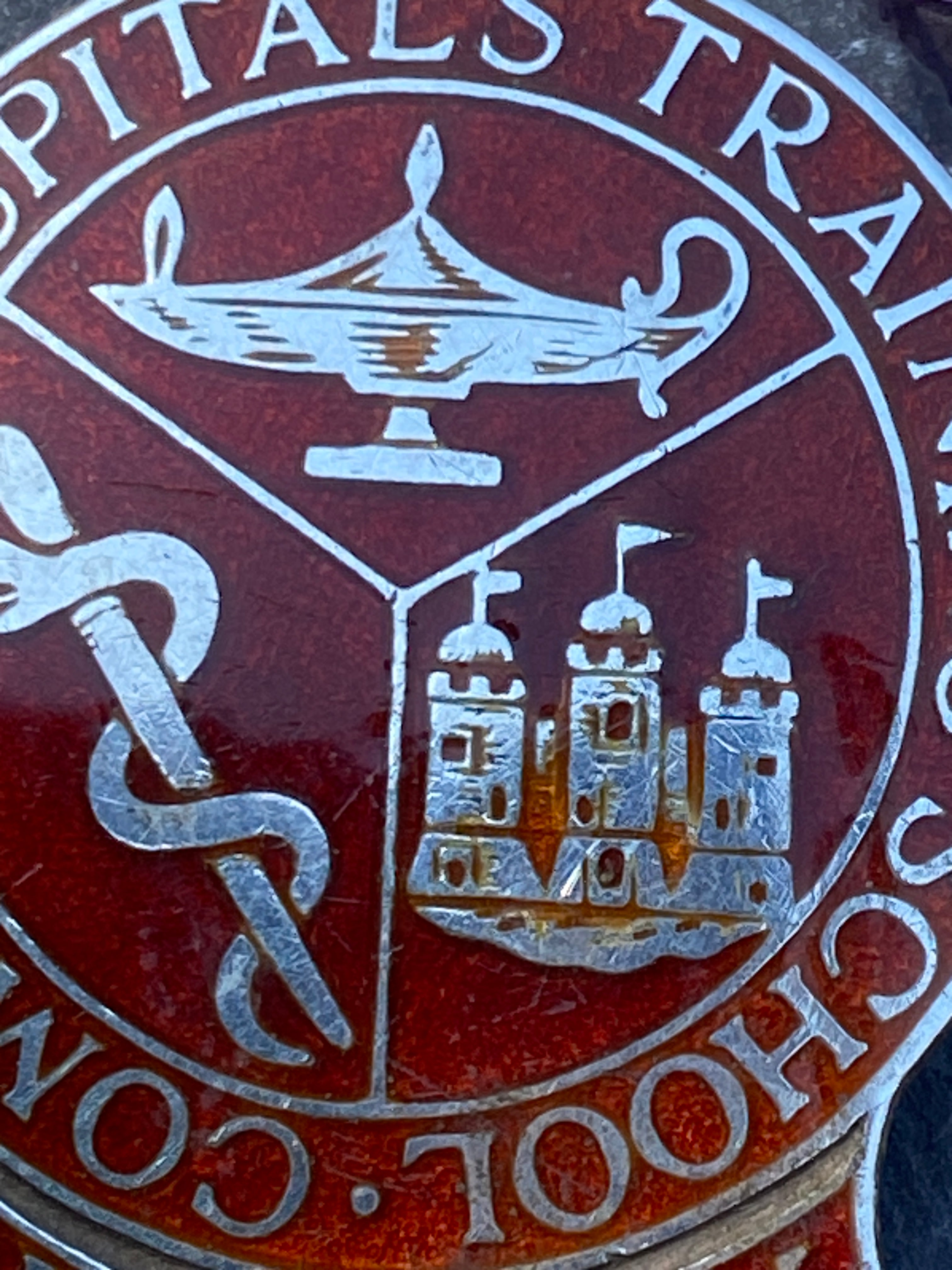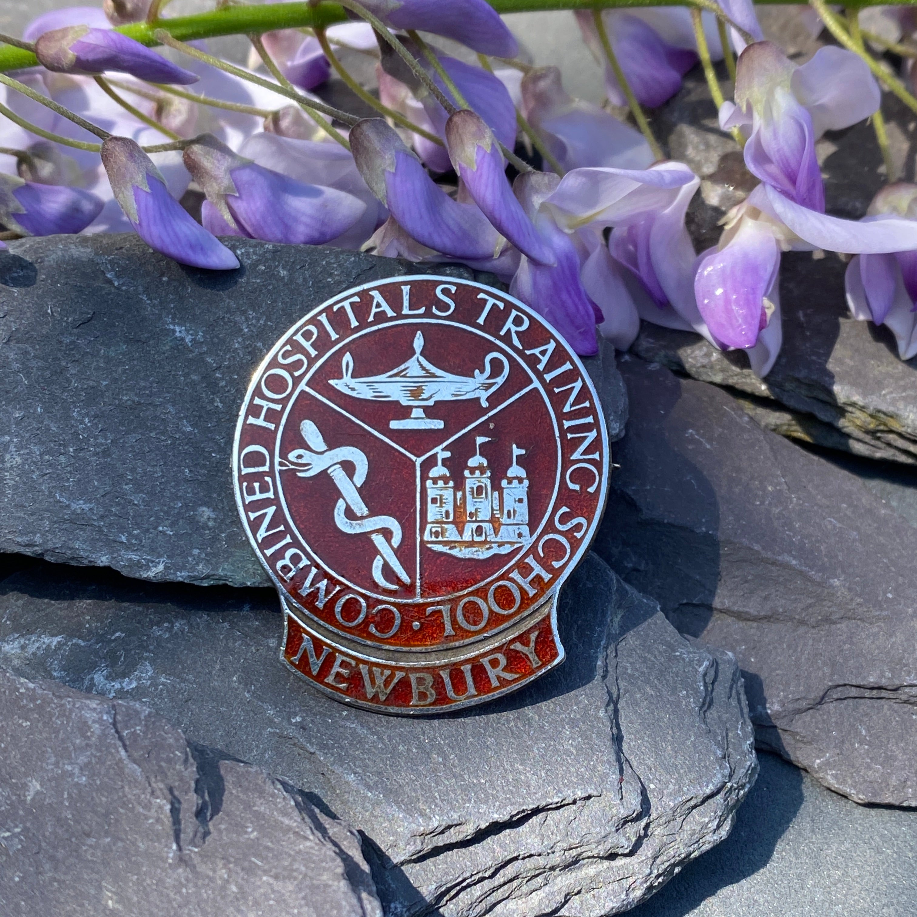 Antique Edwardian Sterling Silver brooch with red enamel decorationCombined hospitals training school Newbury in Berkshire, England.Measures 38mm longFull hallmarks for London 1906Made by Pinches, londonIn very good conditionArrives...