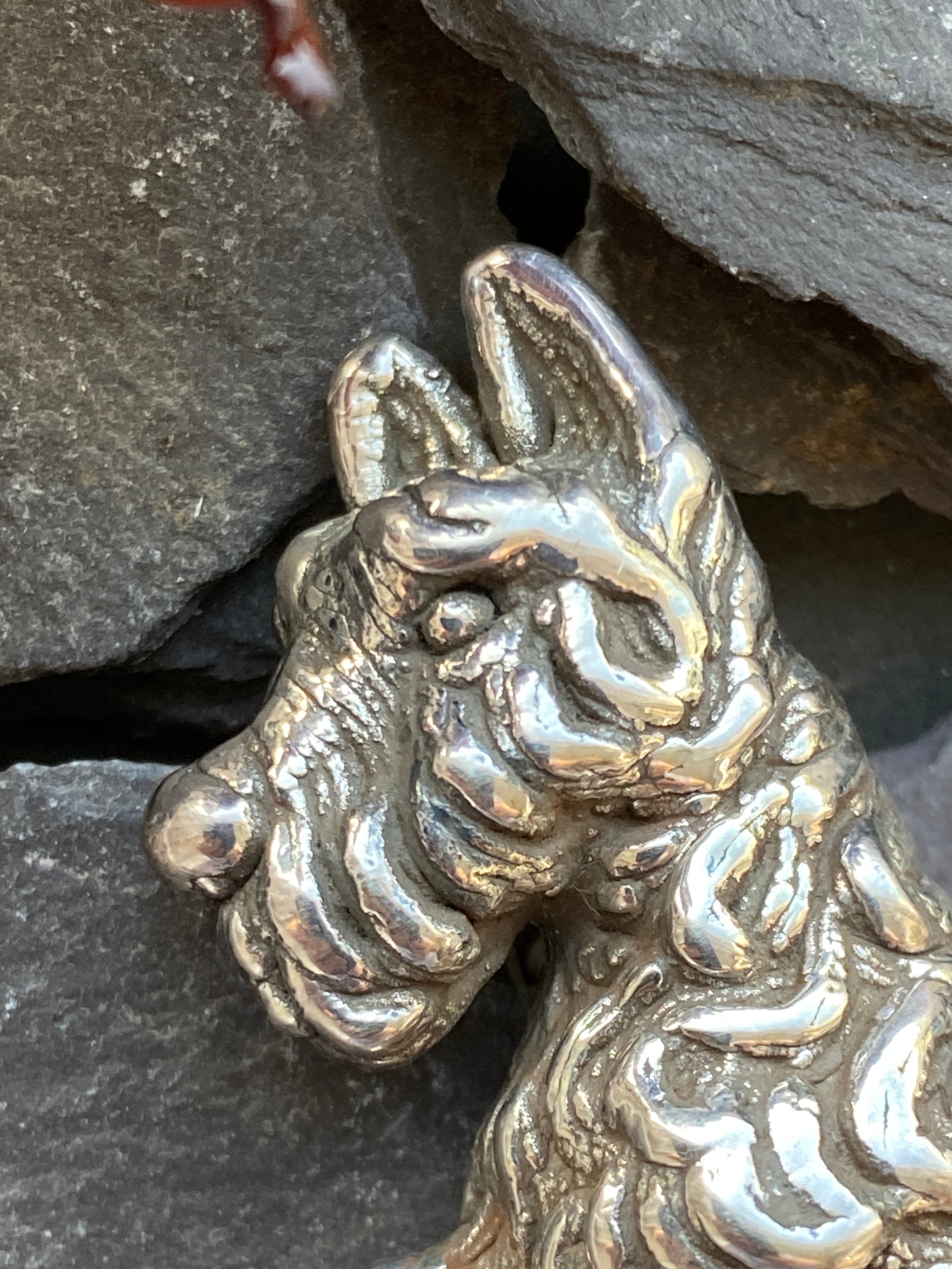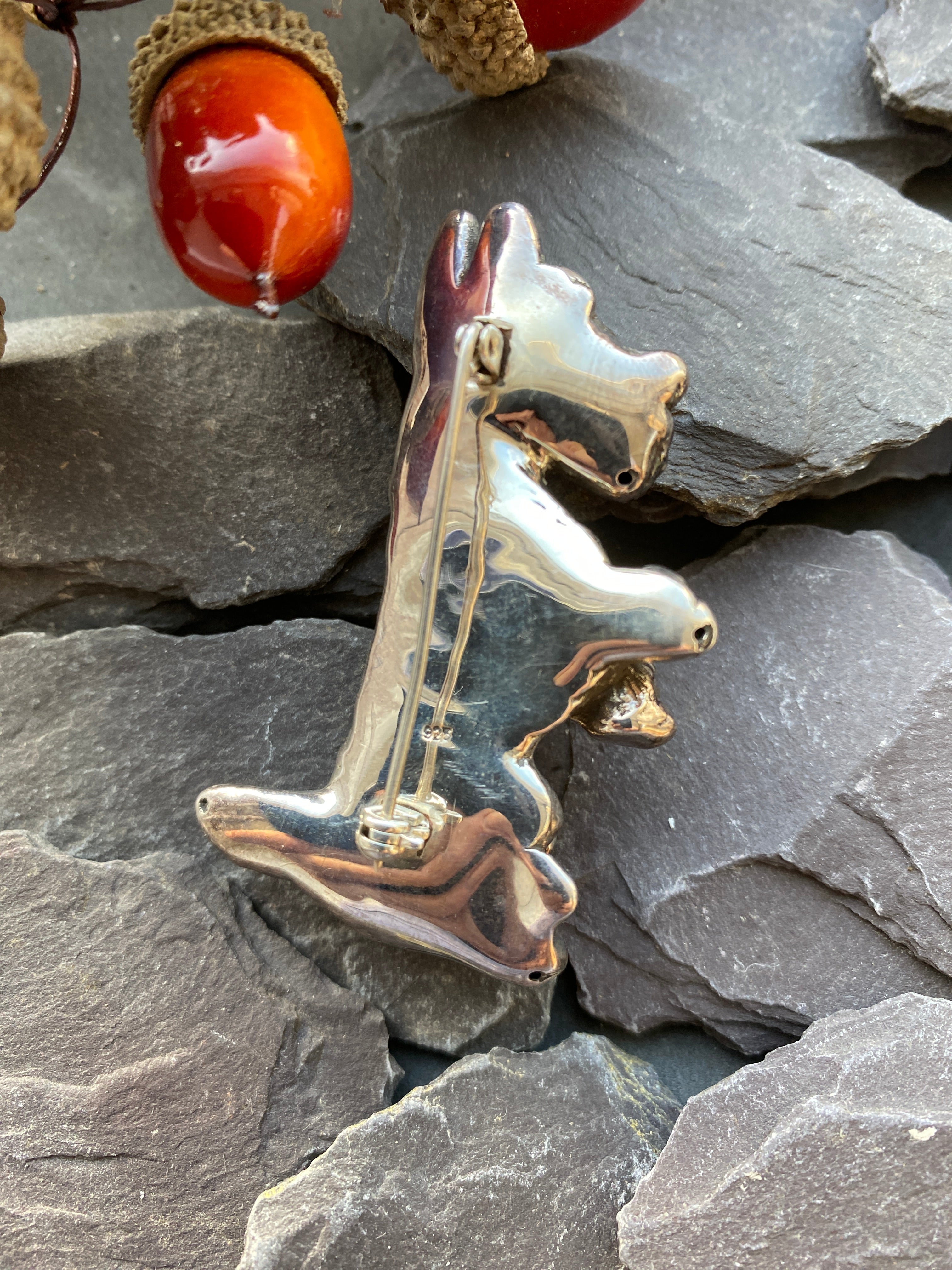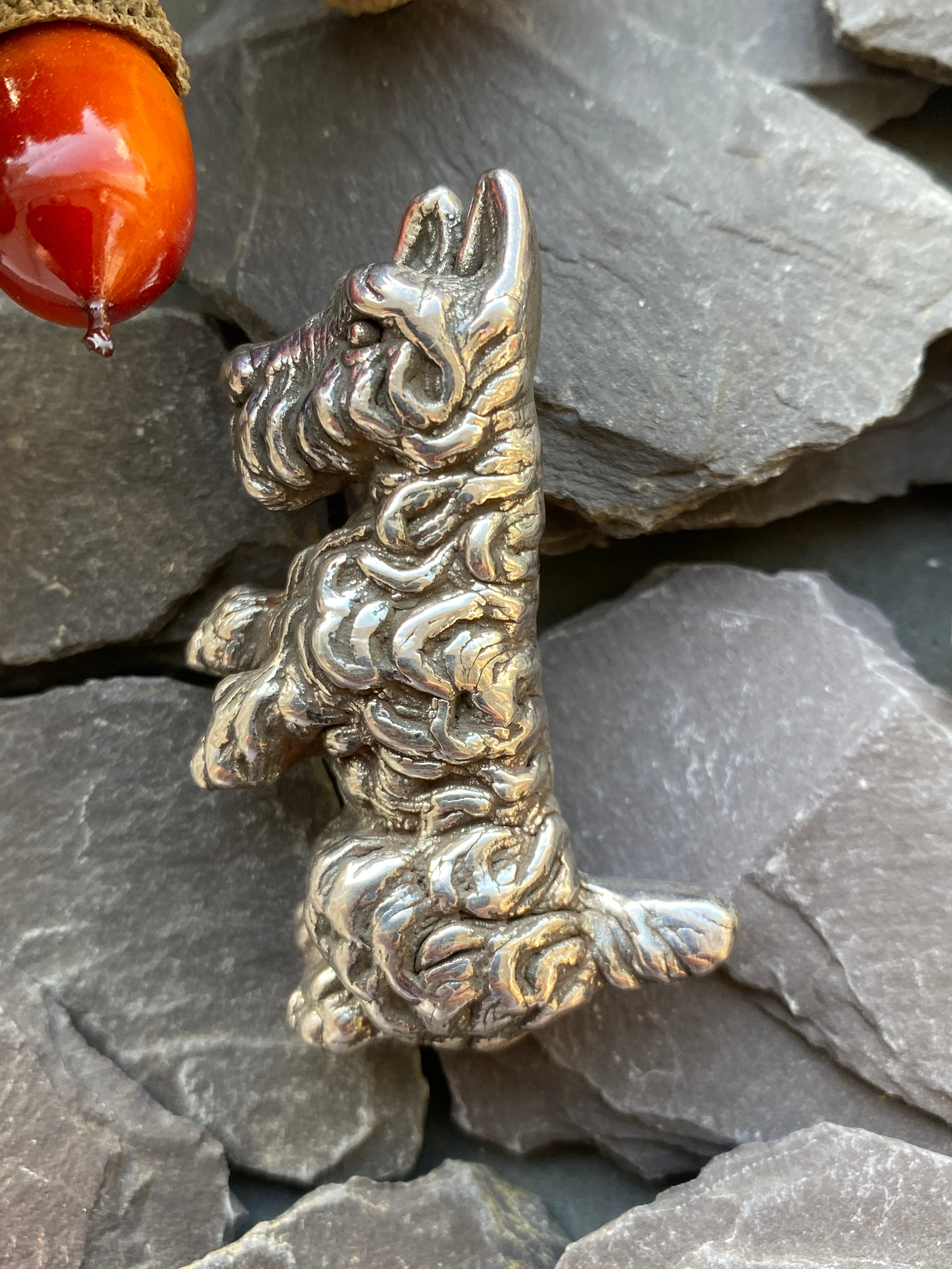 A super cute sterling silver Highland Terrier, Westie or Scotty dog sat up begging .