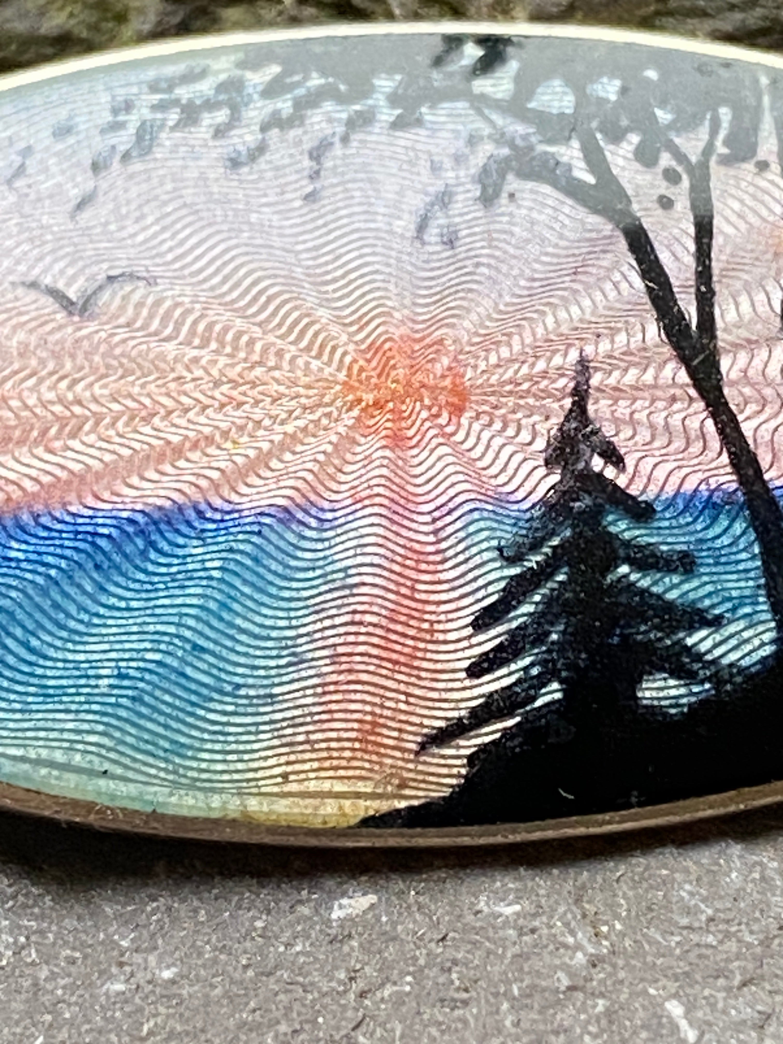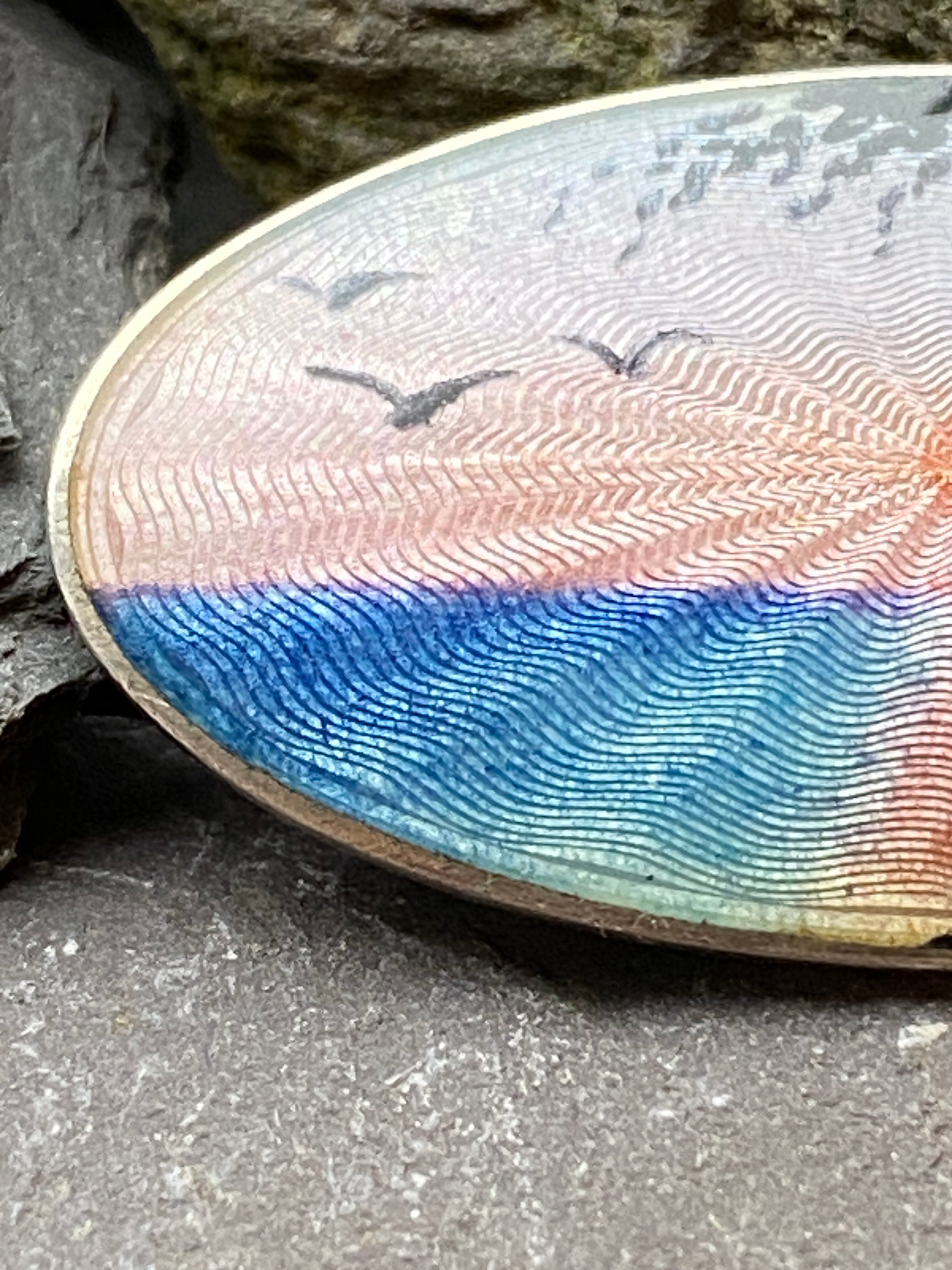 A stunning vintage brooch by Olav Fritjof Hjortdahl of Oslo.Vermeil with guilloche enamel decoration In immaculate conditionMeasures 38mm acrossC clasp fasteningWill arrive gift boxed. Free tracked shipping/UK next...