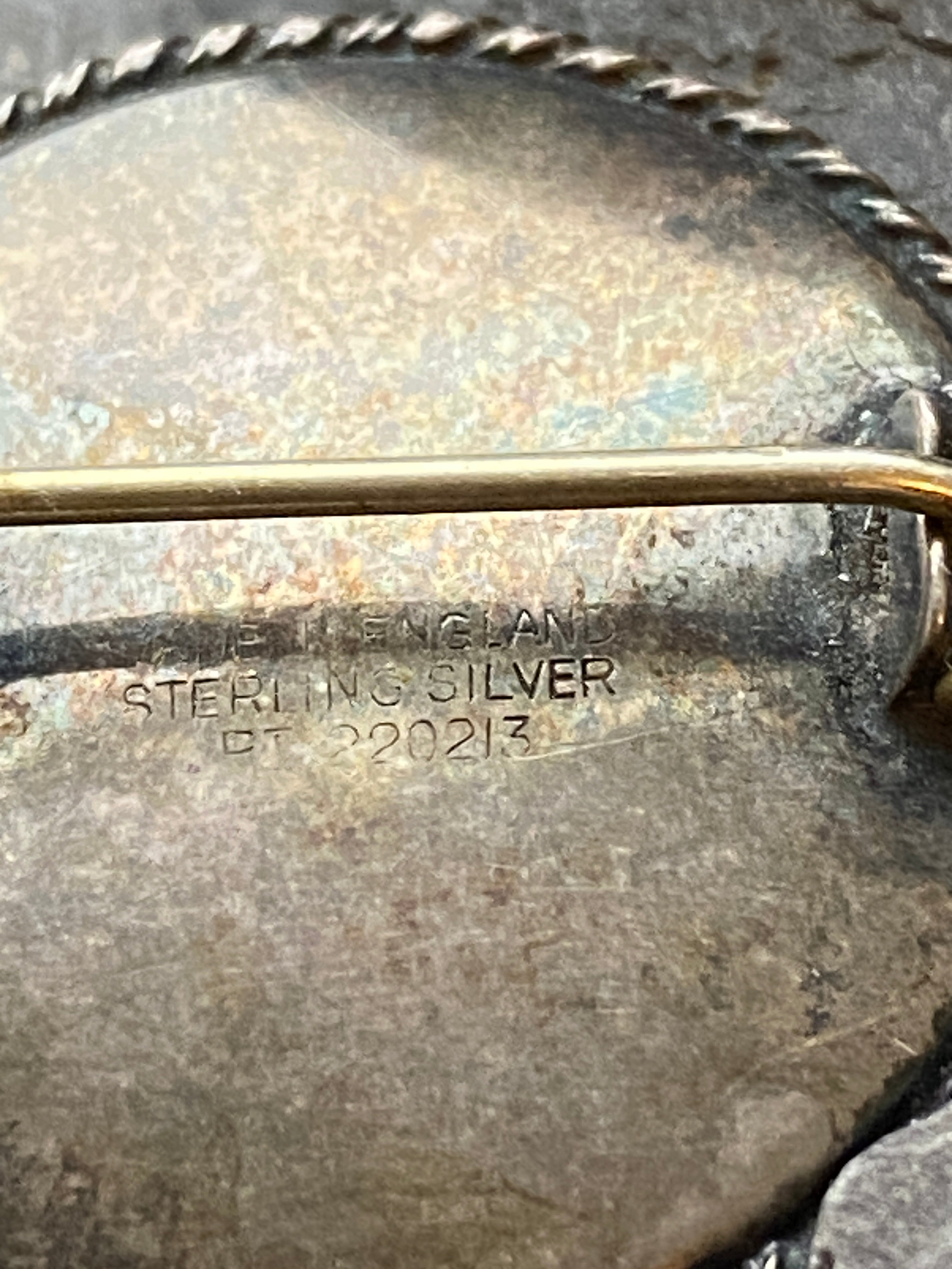 Stamped on the back - Made in England, Sterling silver and trade mark number