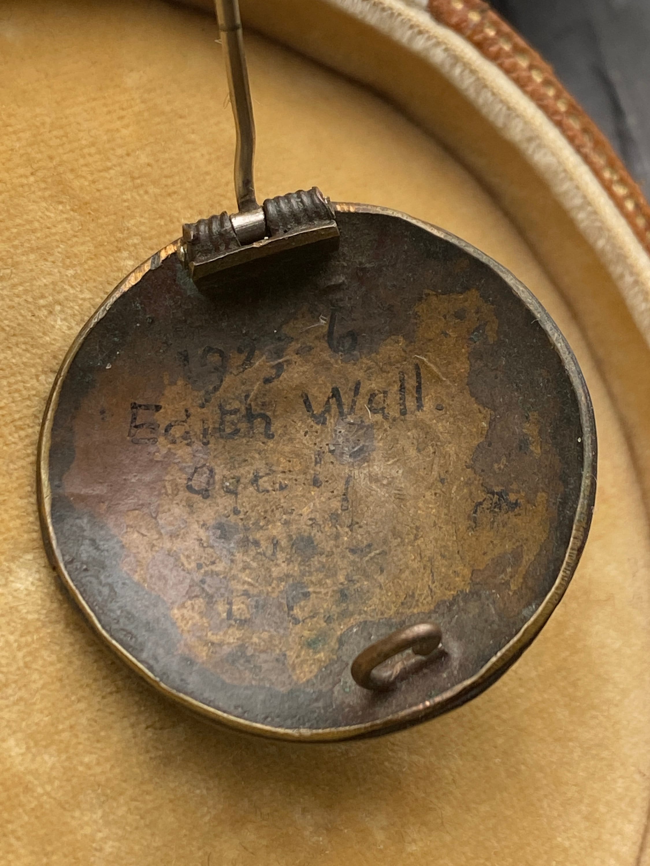 Inscribed in pen to the back. Very indistict but can make out the name Edith Wall and Age 11. The date looks like 1923-26.