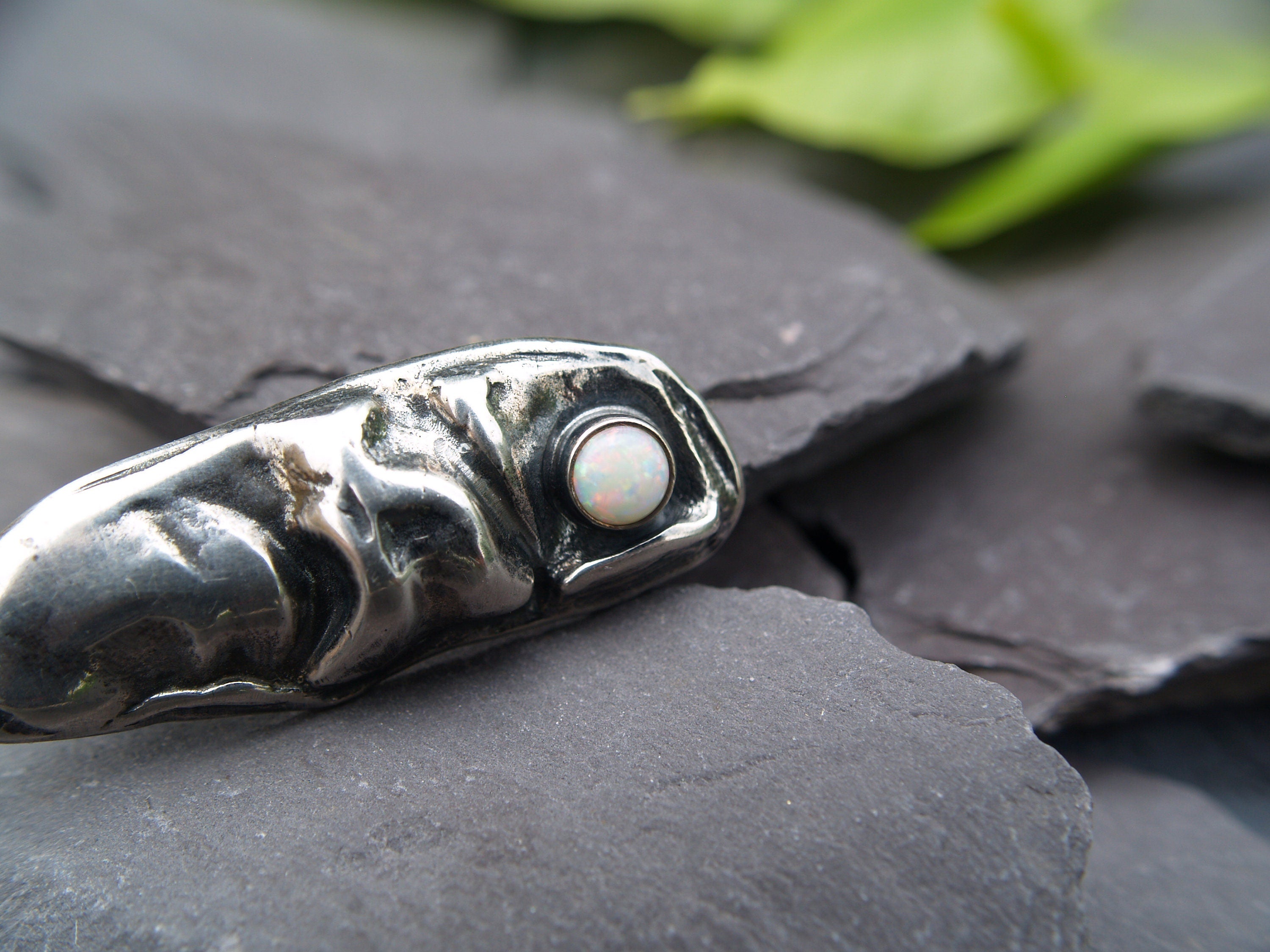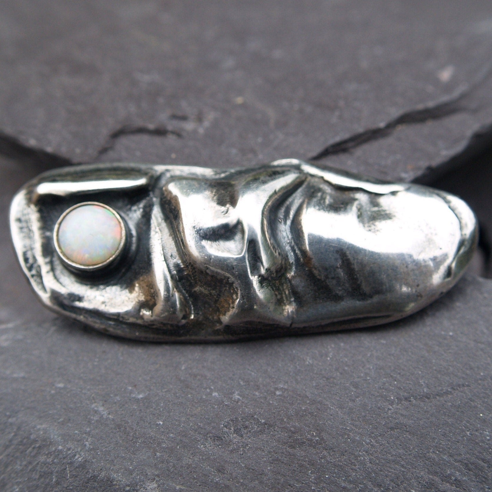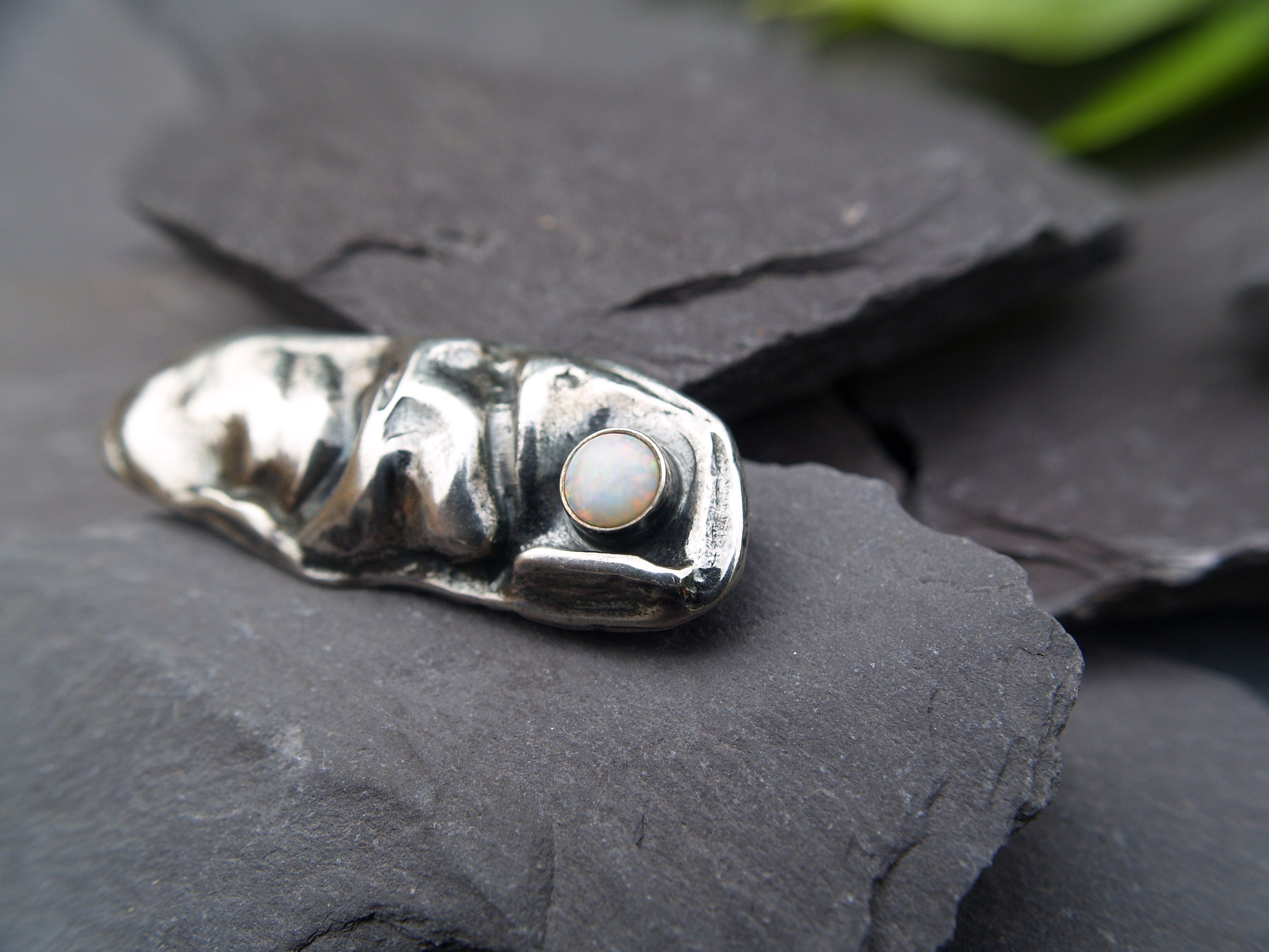 An abstract free form brooch in sterling silver set with an Opal.