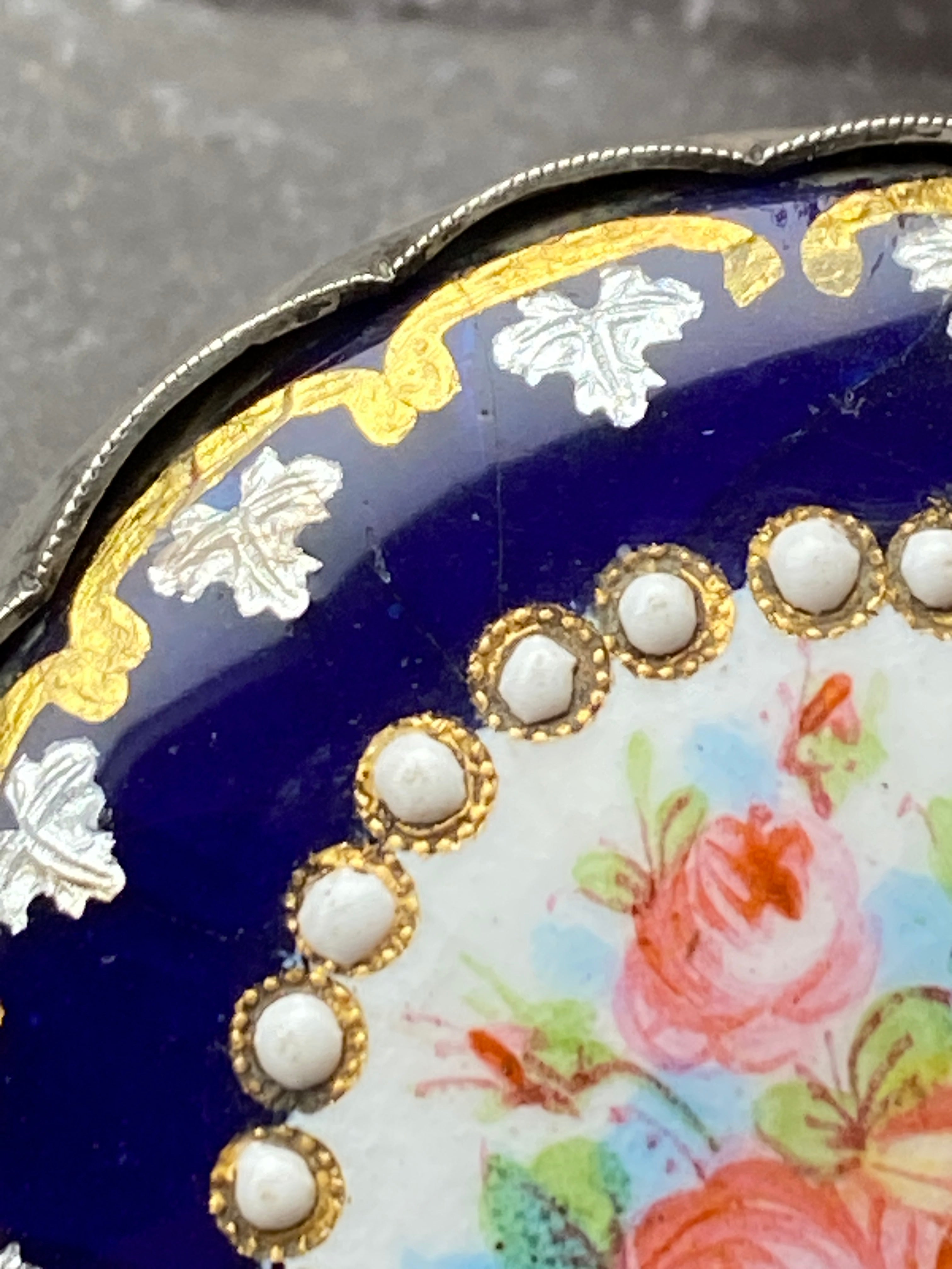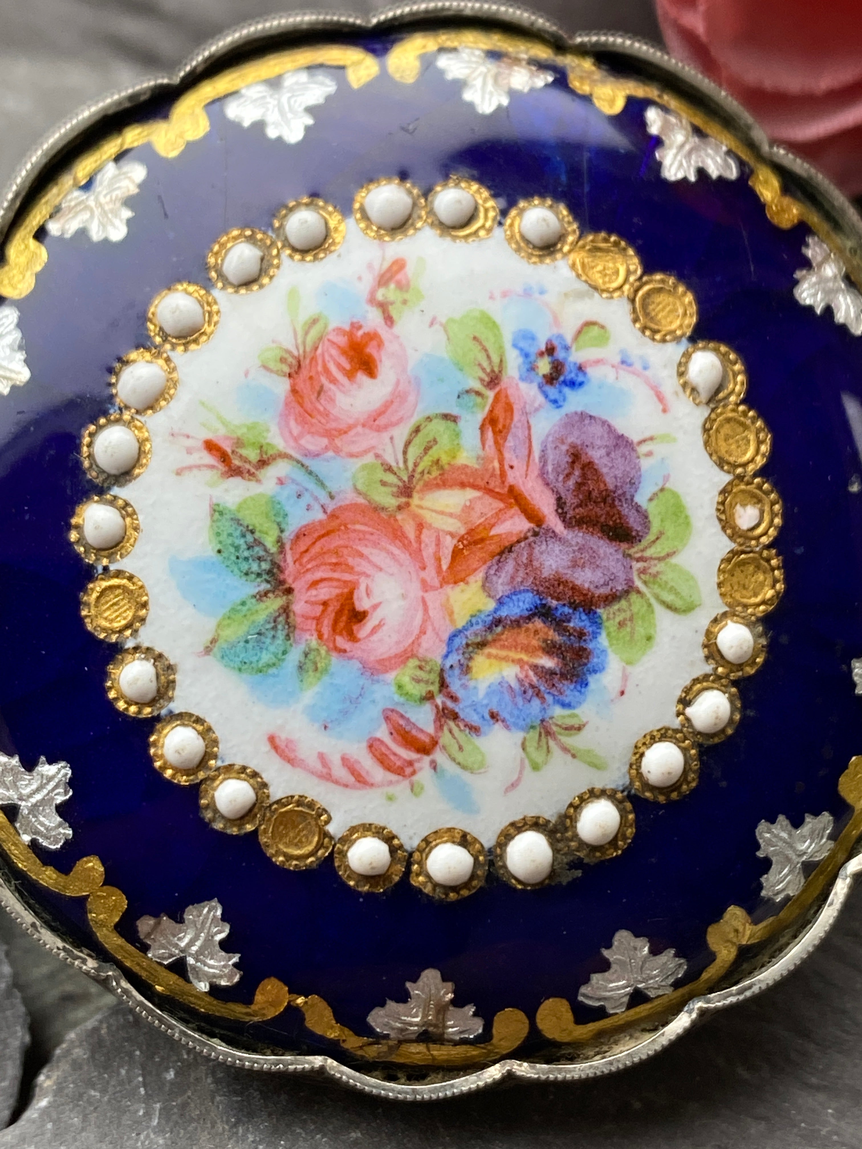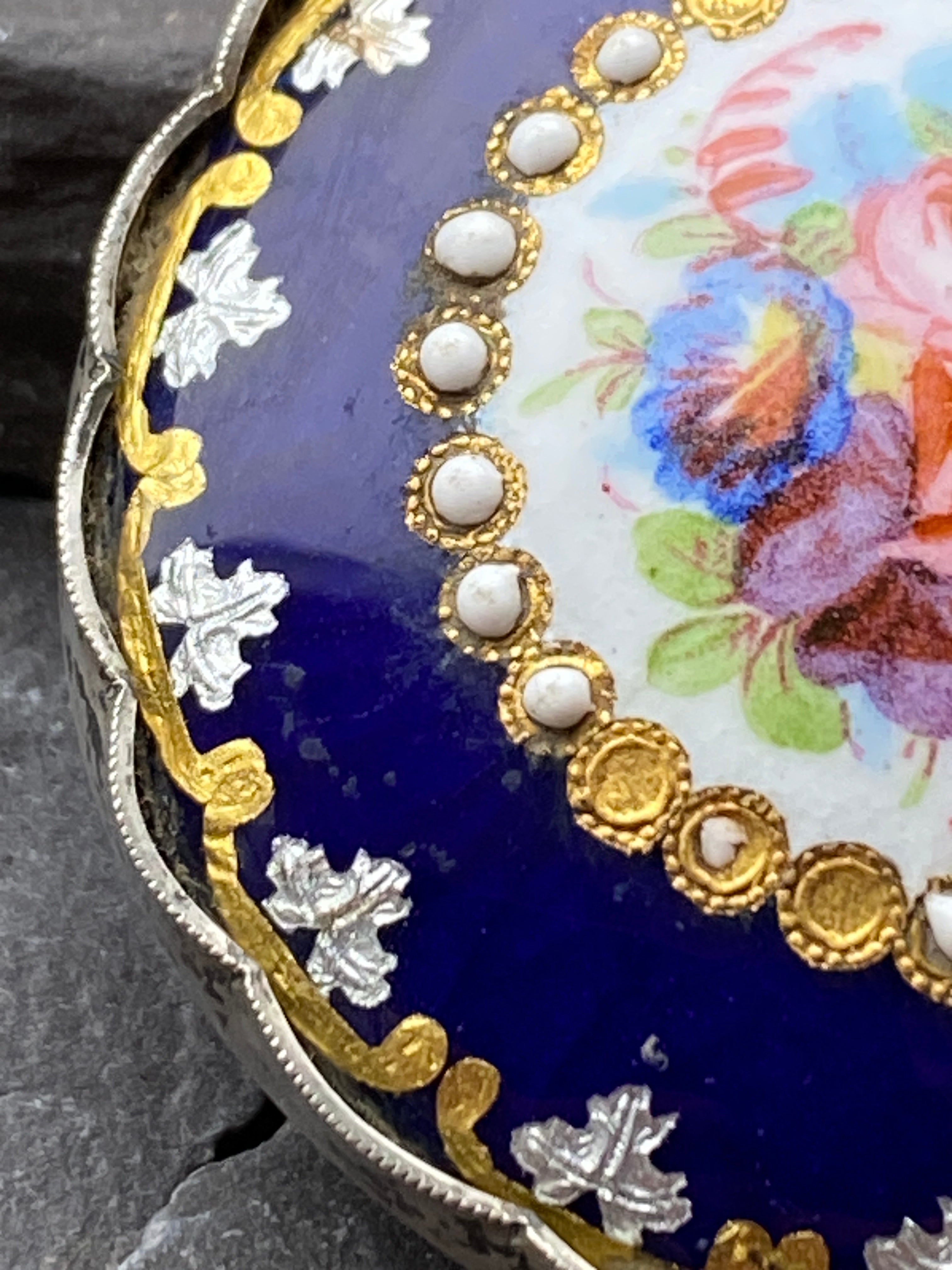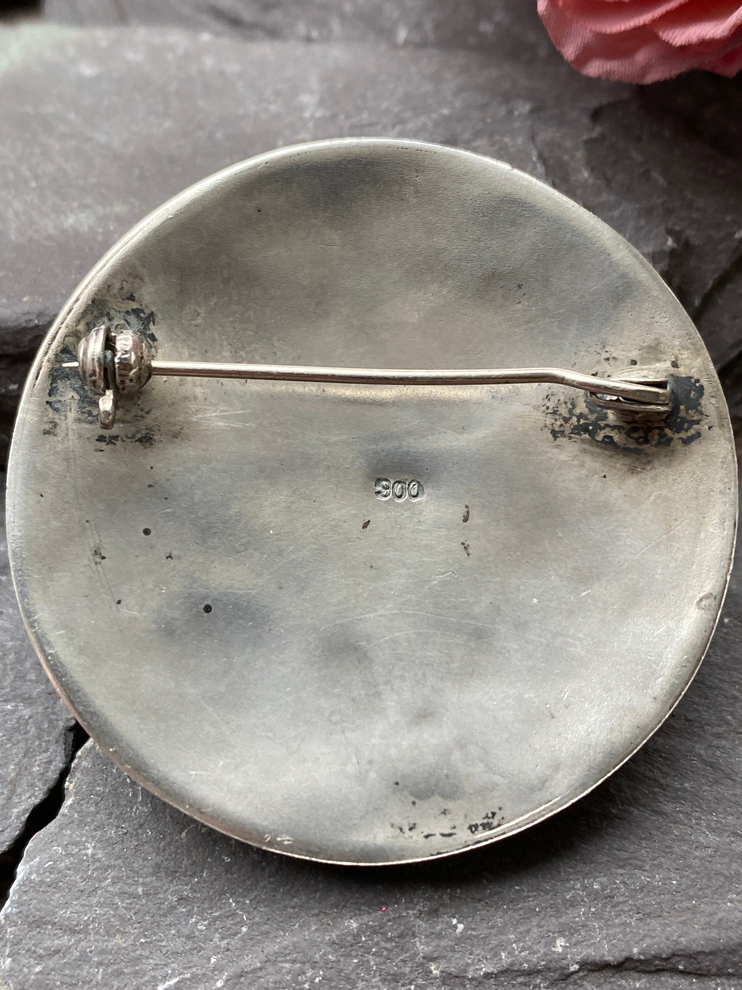 A wonderful 19th century brooch with a fired Copper & Enamel plaque set in a silver brooch back.