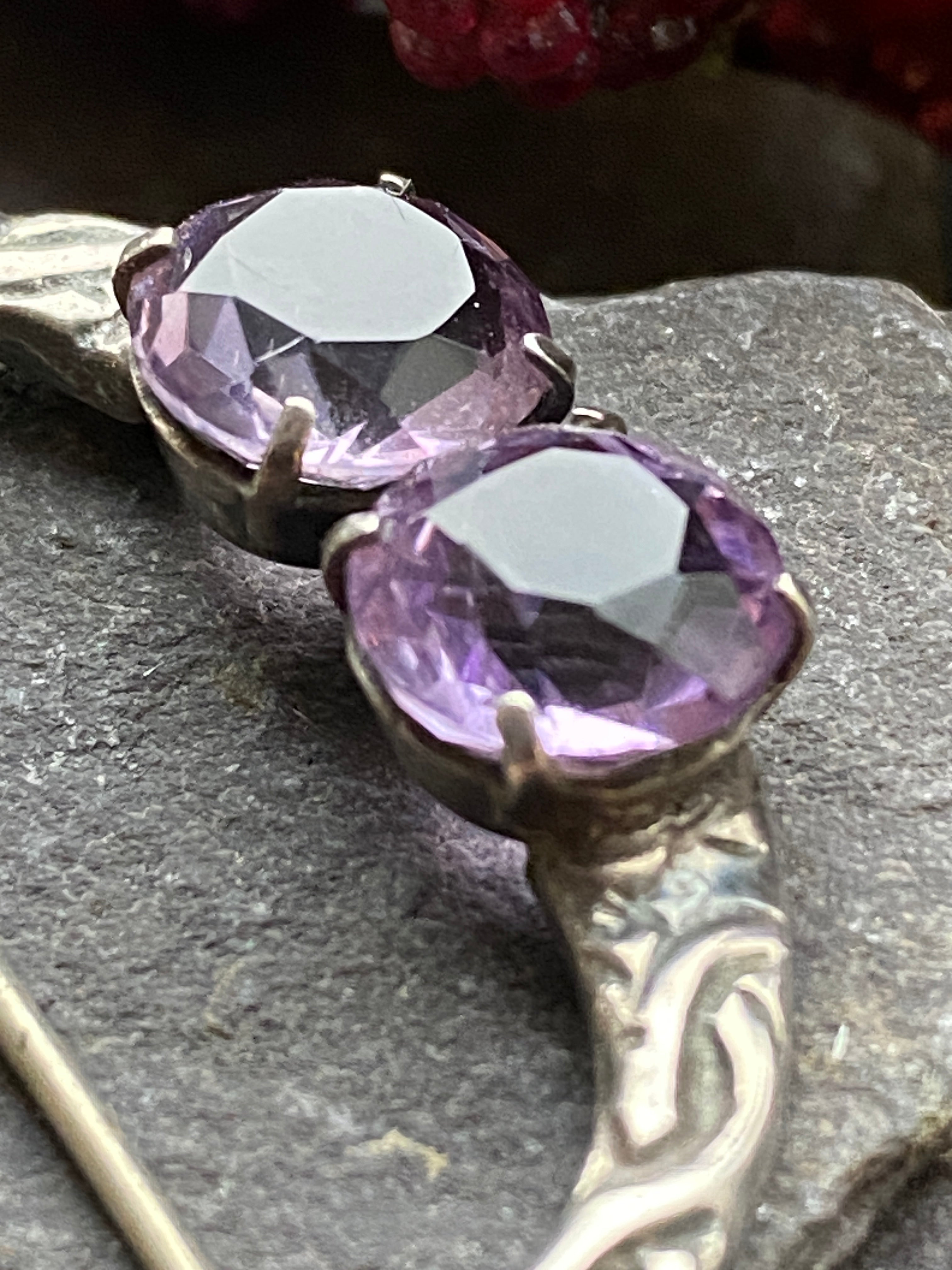 An early vintage Celtic brooch set with two Amethyst stones very much in the style of Hart or Allison. Pre 1950. Stamped sterling silver. No makers mark Measures...