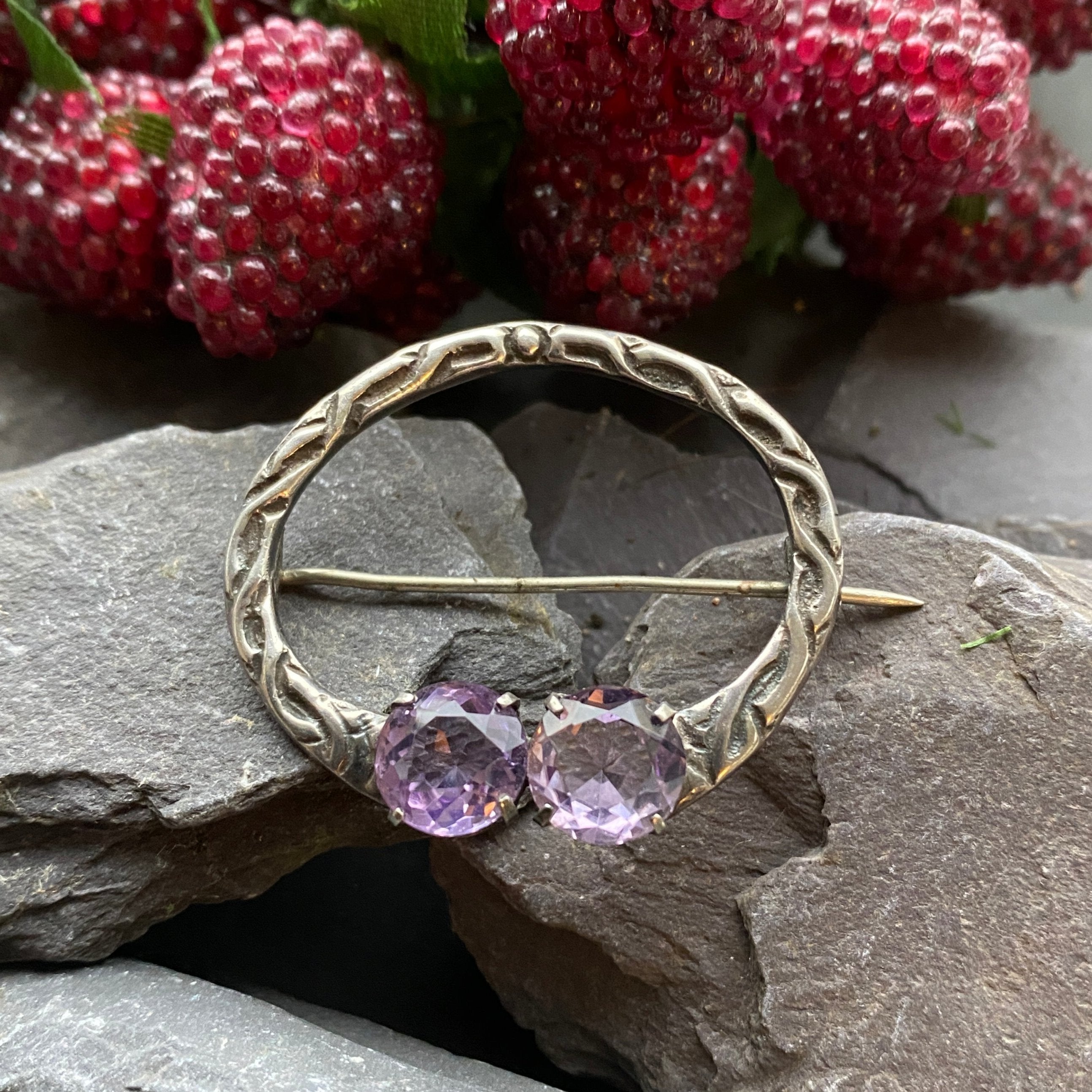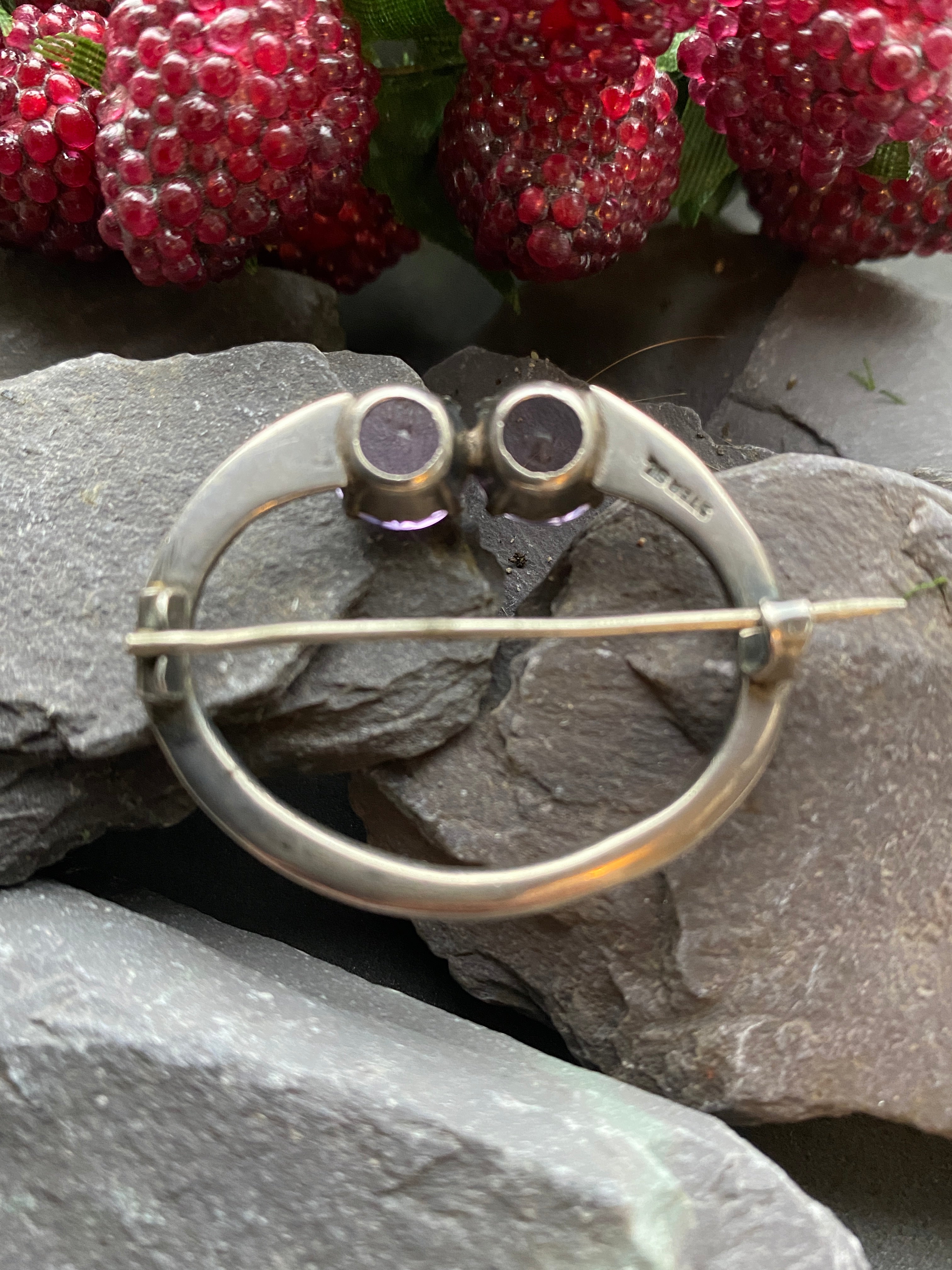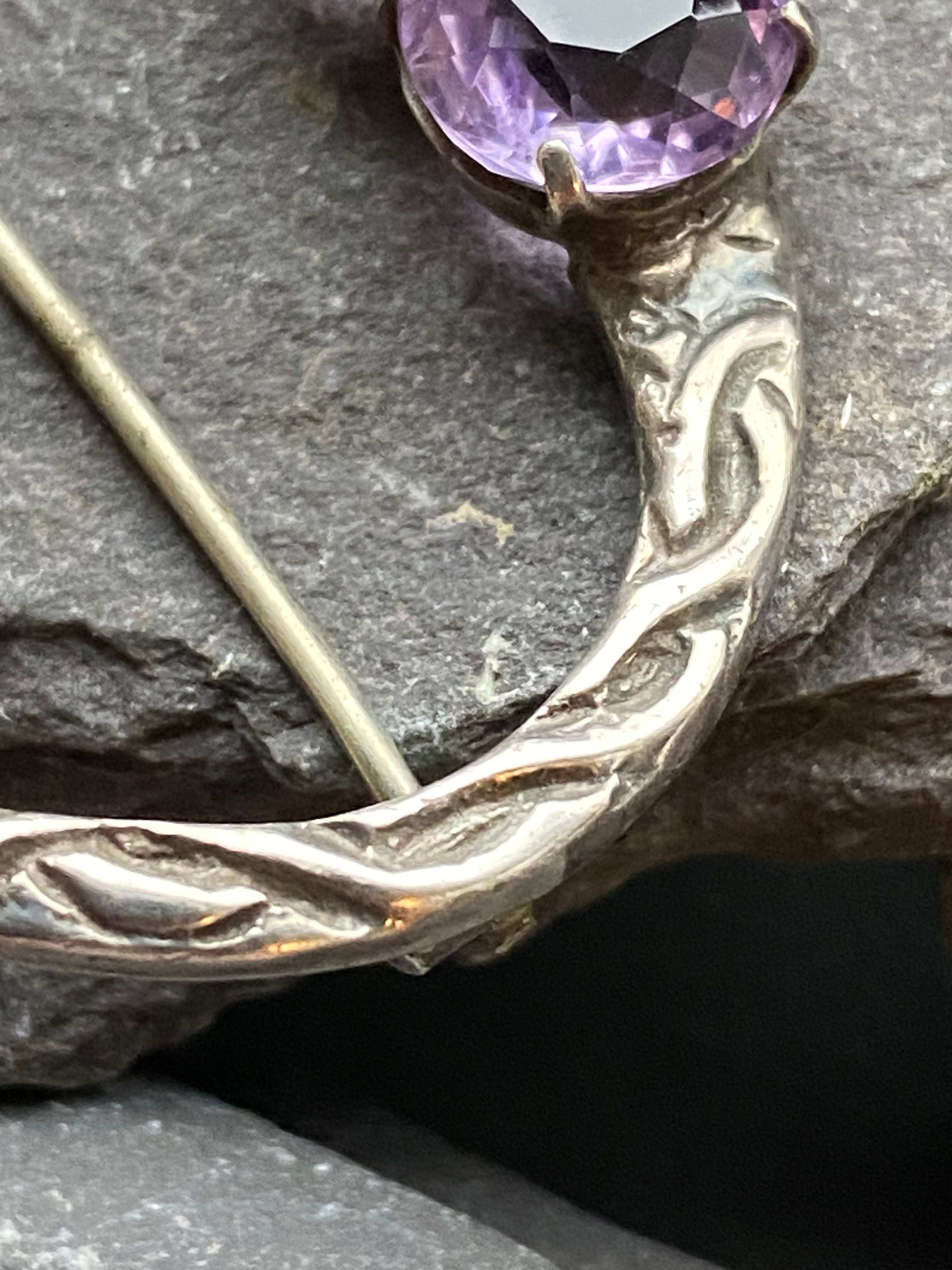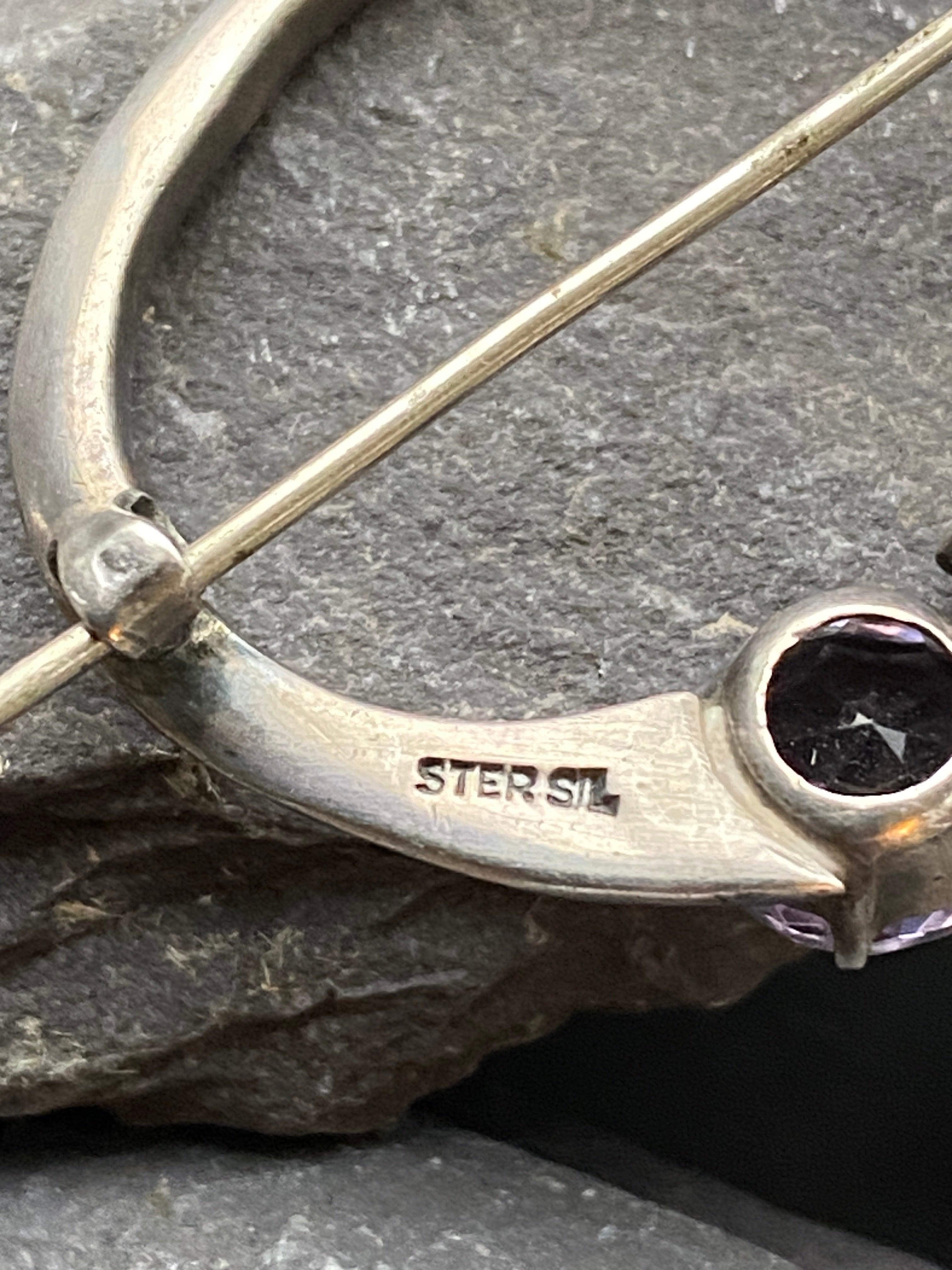 Vintage Celtic Iona Amethyst Brooch In Sterling Silver.