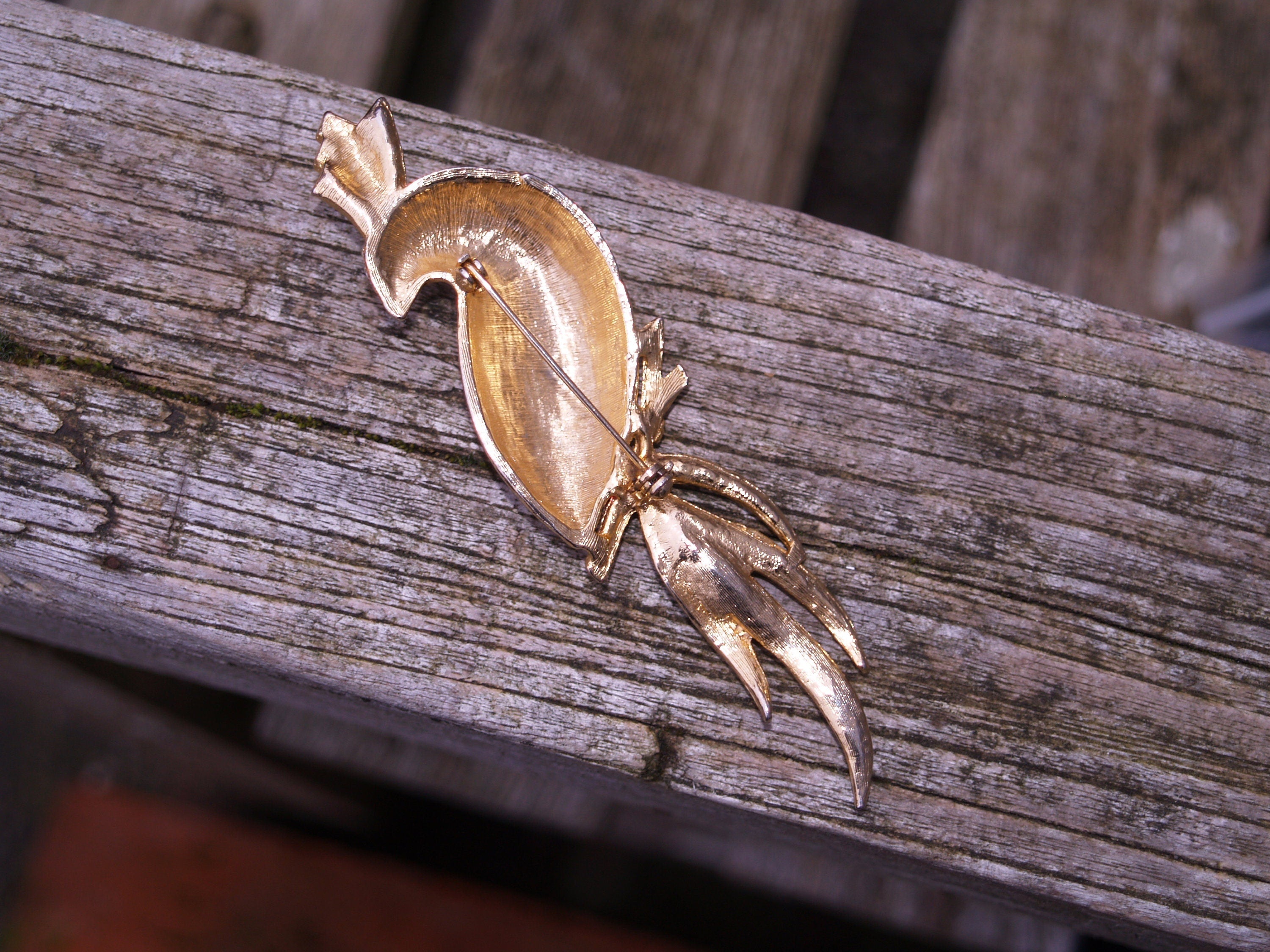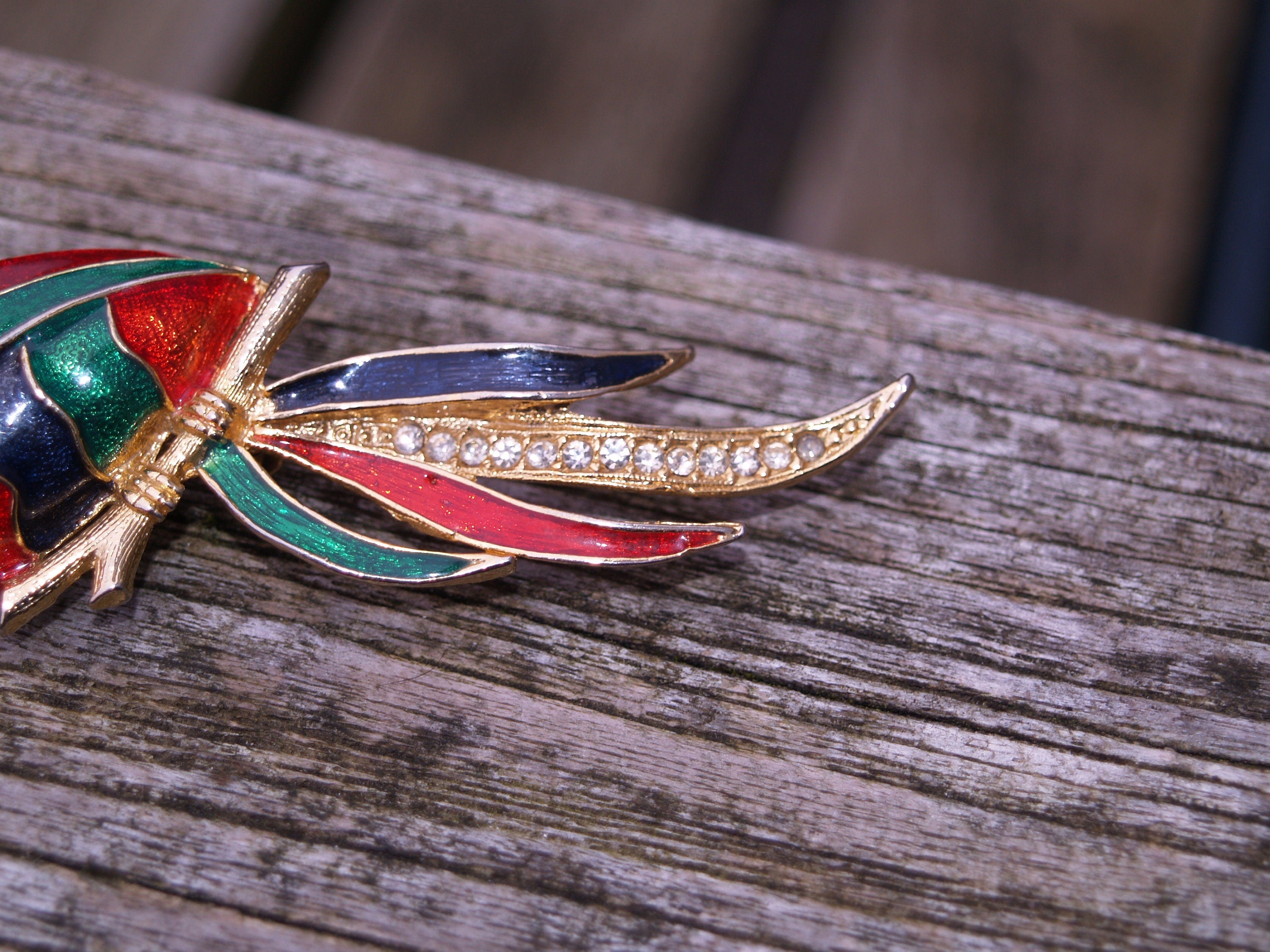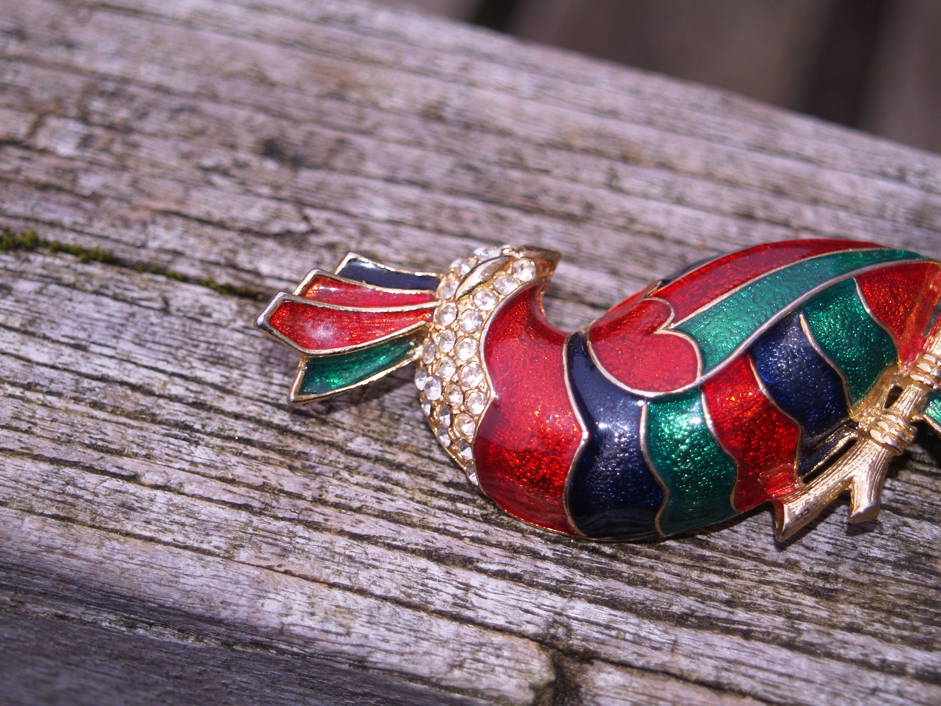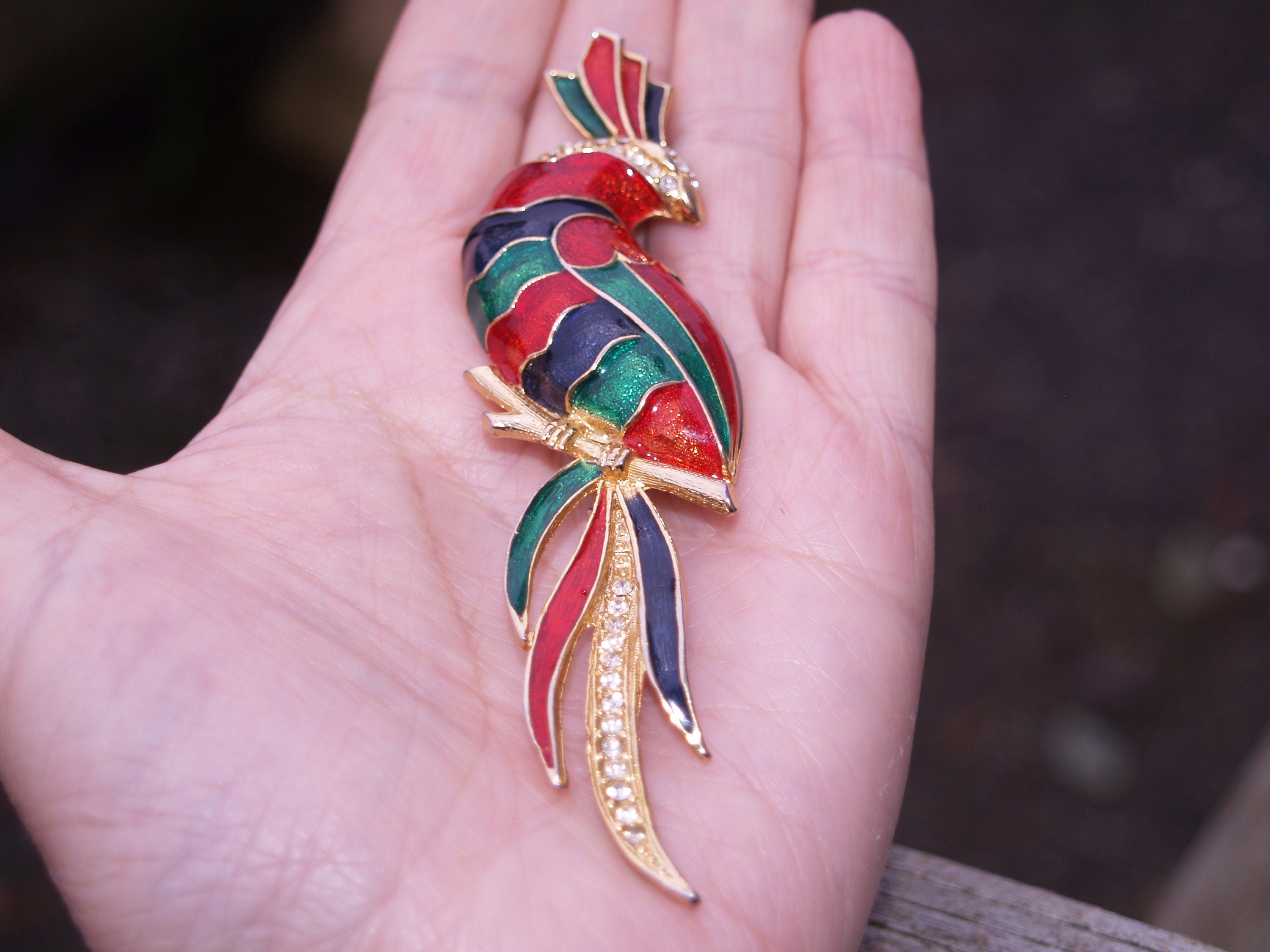 Vintage Costume Large Exotic Bird Enamel & Goldtone Brooch.
