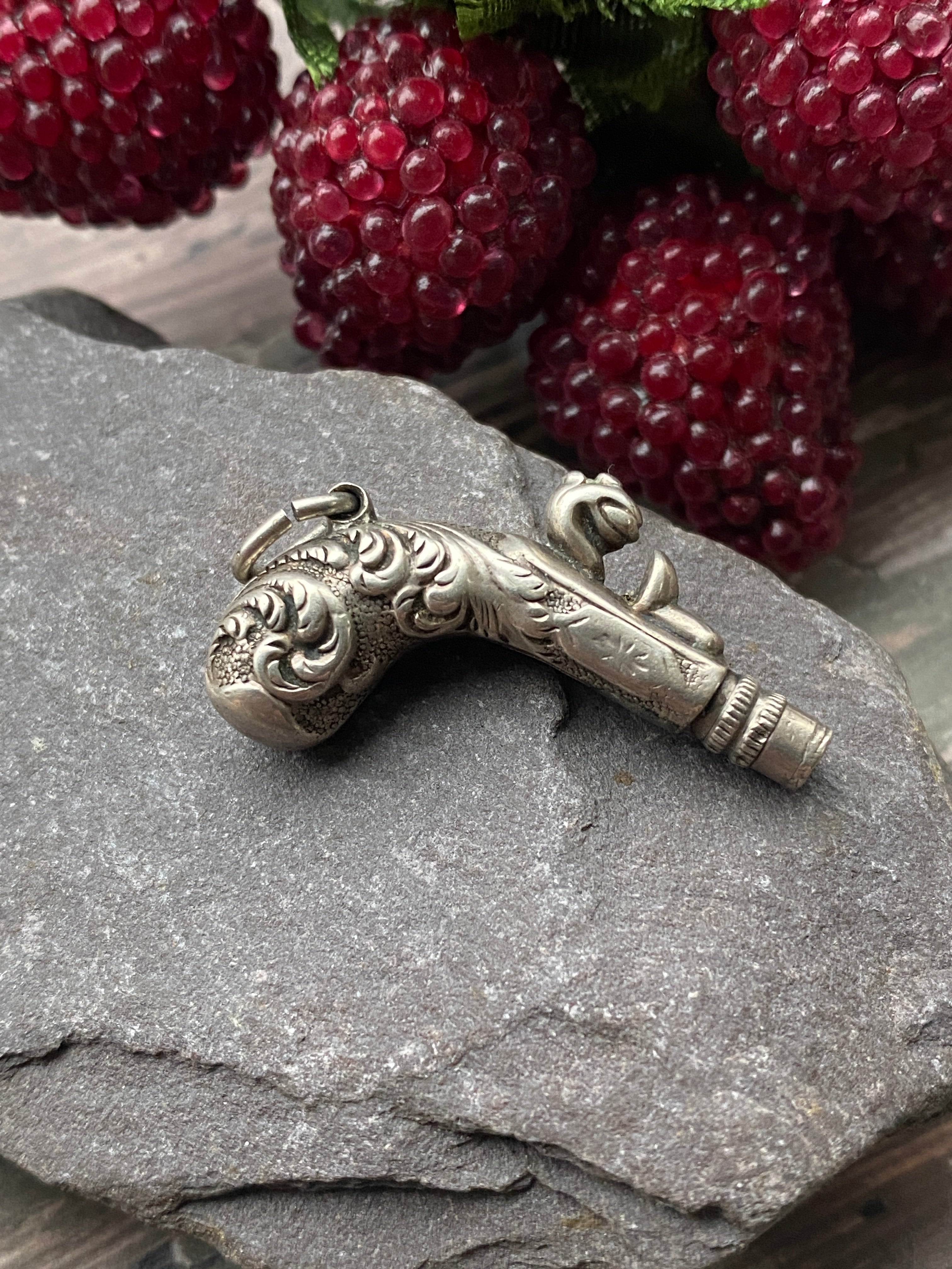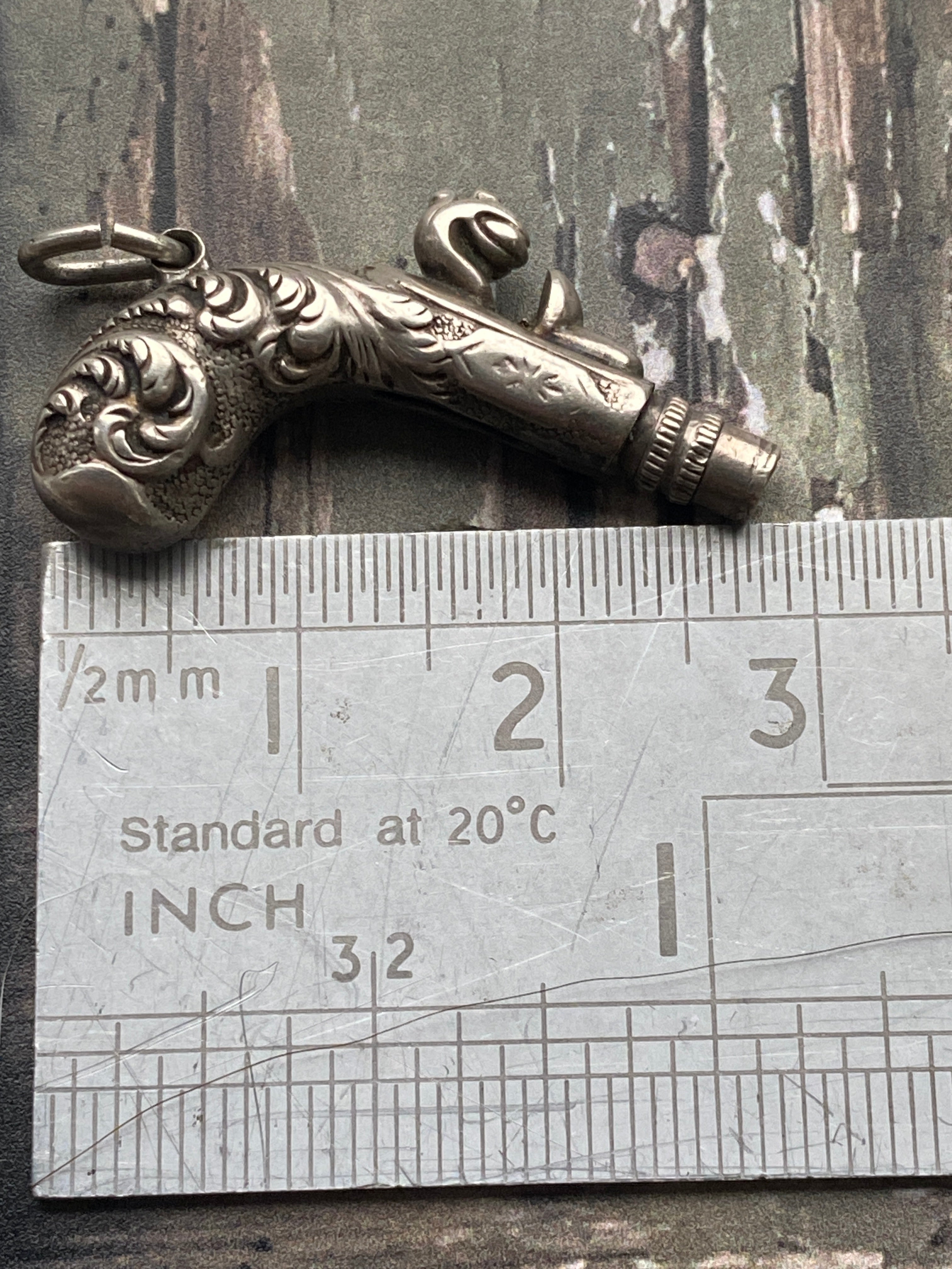A rare sterling silver Victorian charm in the shape of a Blunderbuss gun