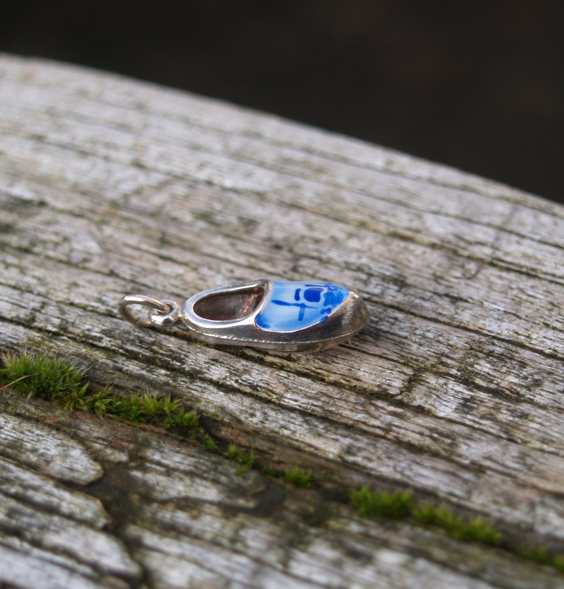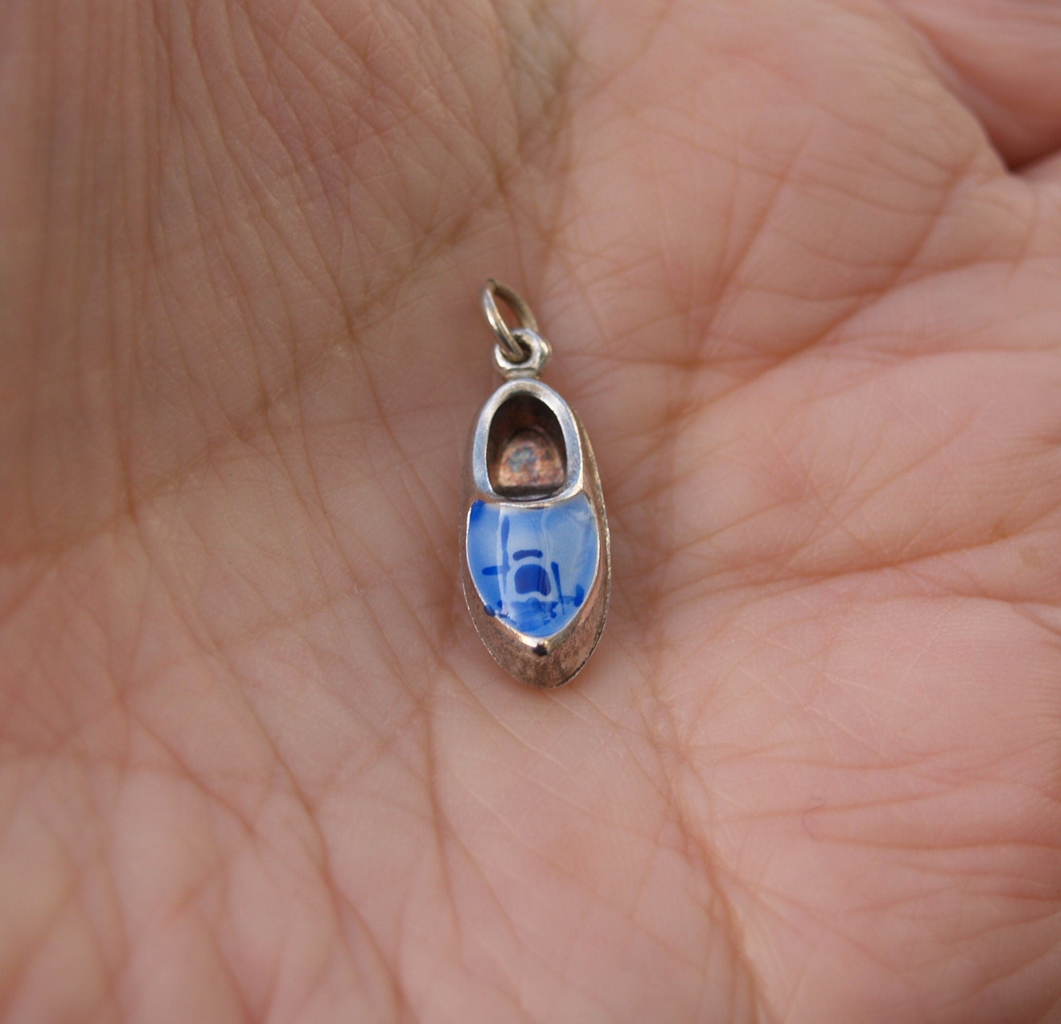A beautiful silver and enamel Dutch clog charm/ pendant.