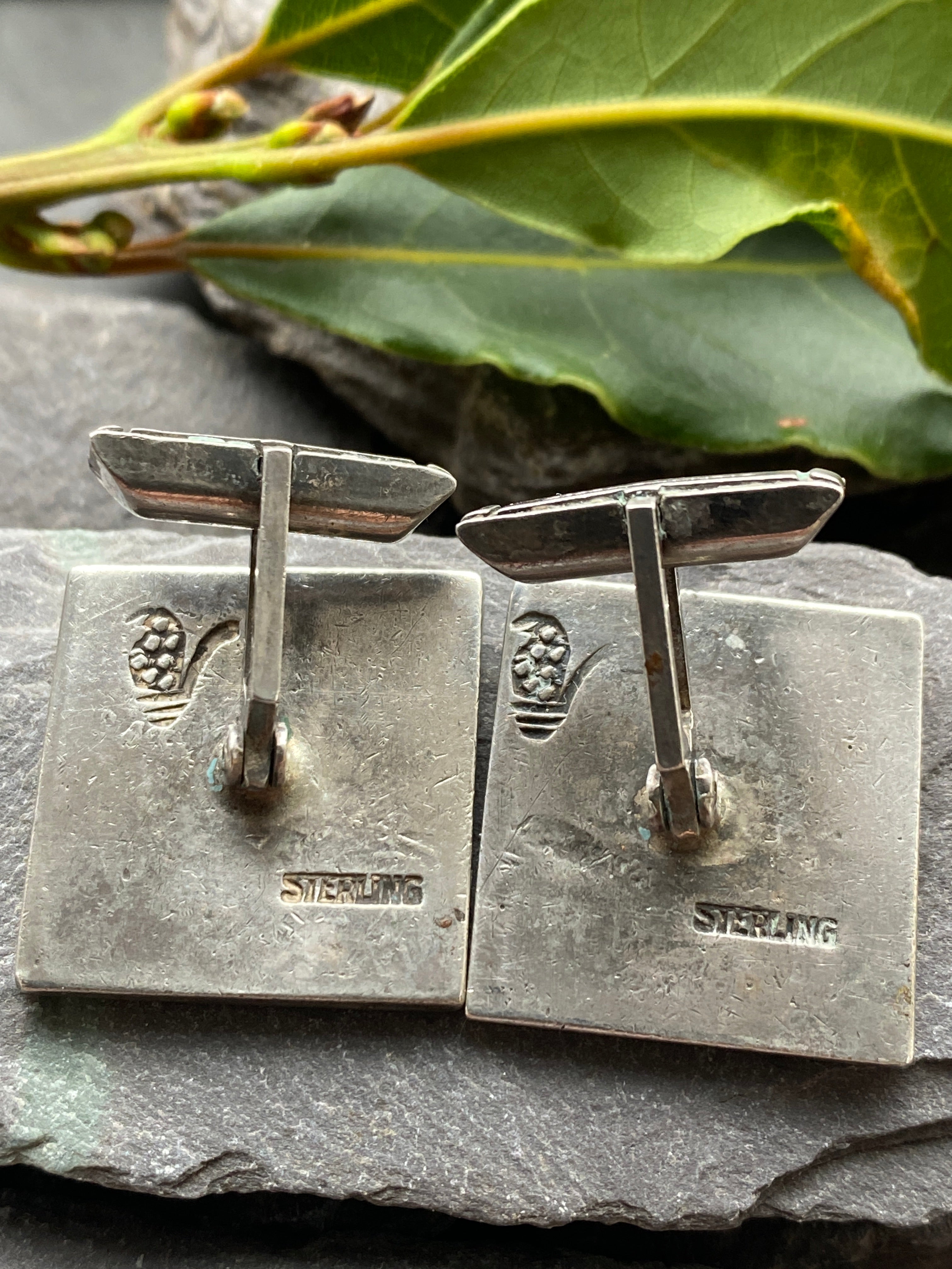 A vintage sterling silver pair of cufflinks featuring the Thunderbird .