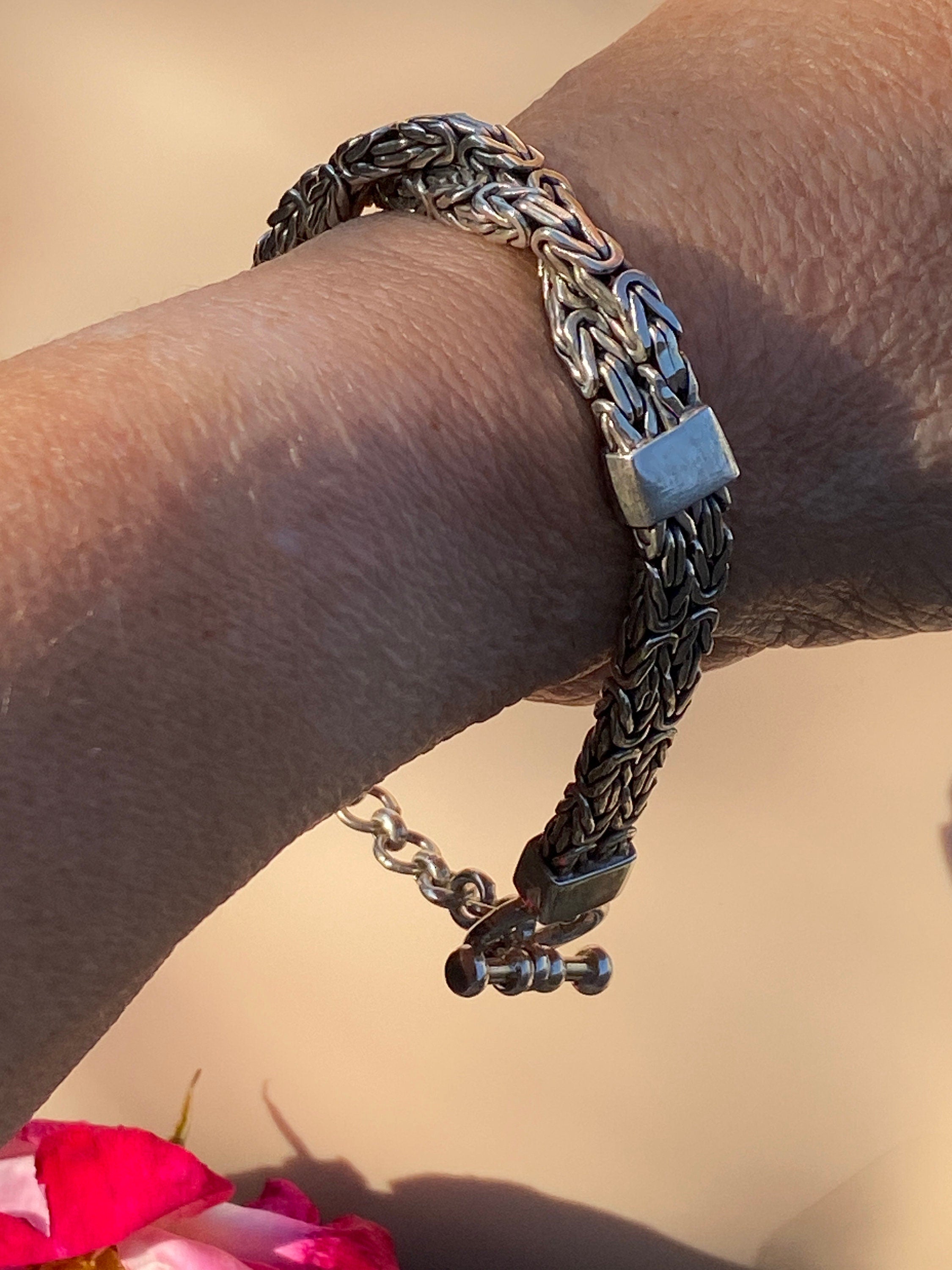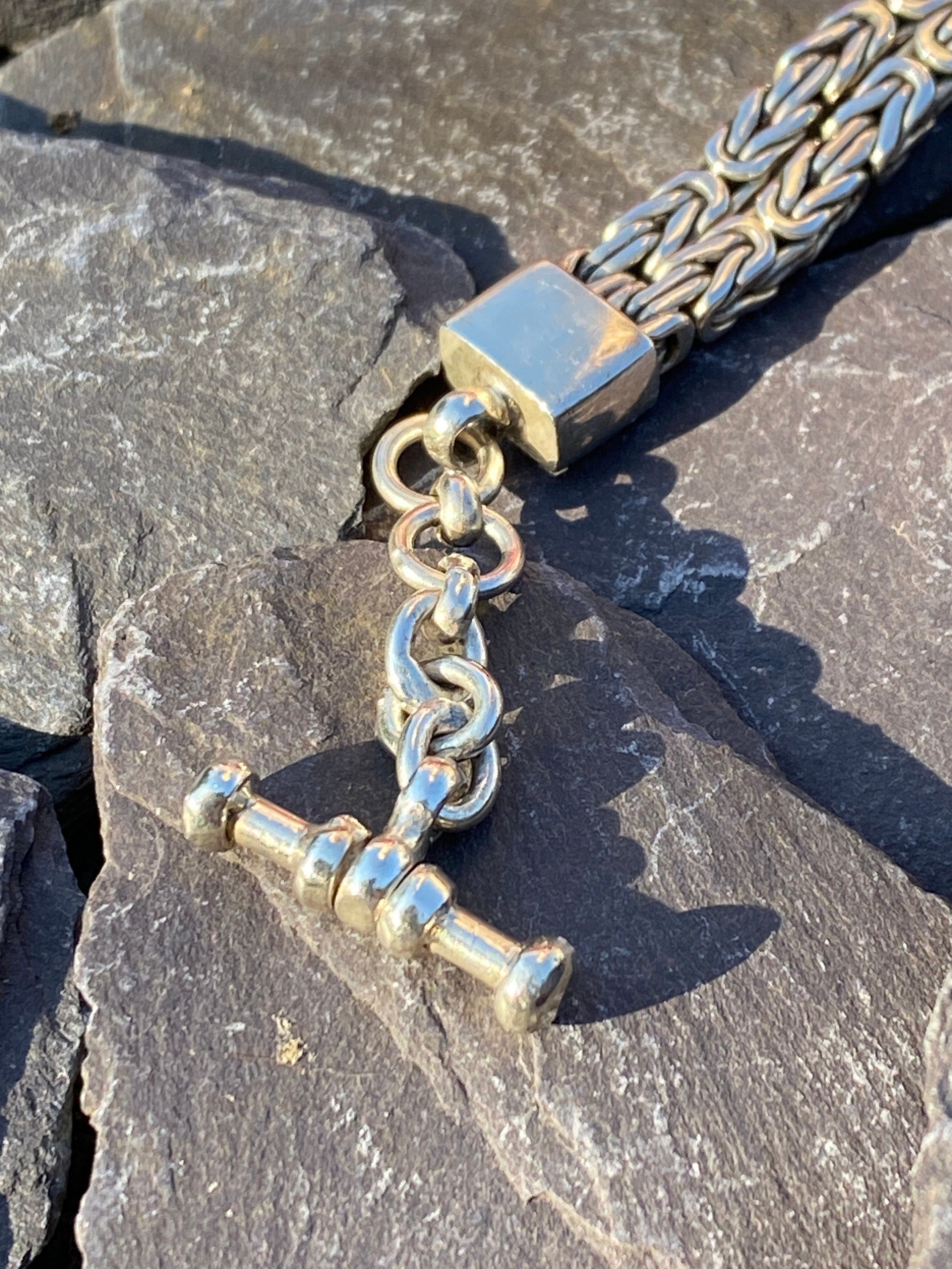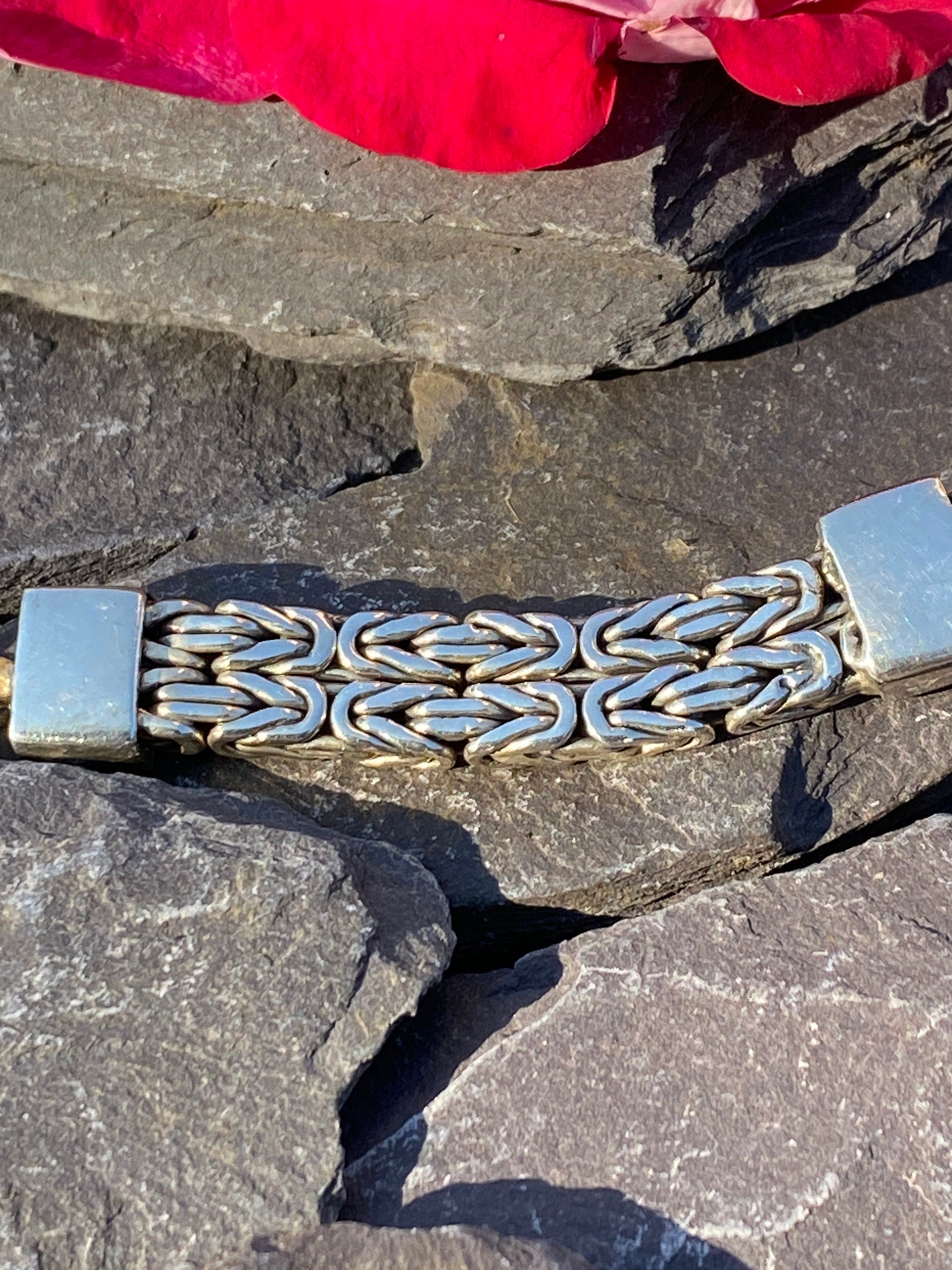 A well made sterling silver Byzantine link bracelet with a Collared twisted middle section .