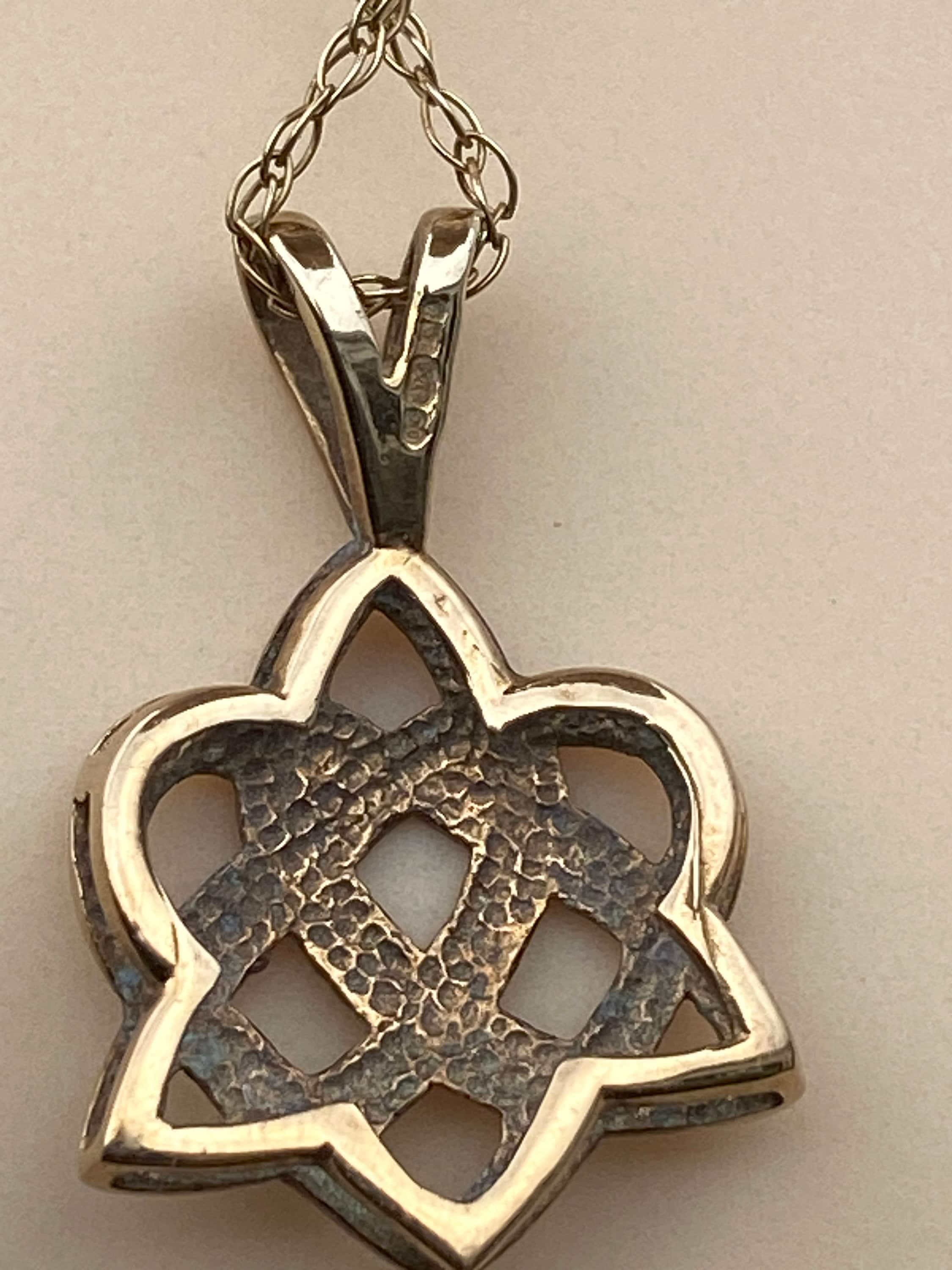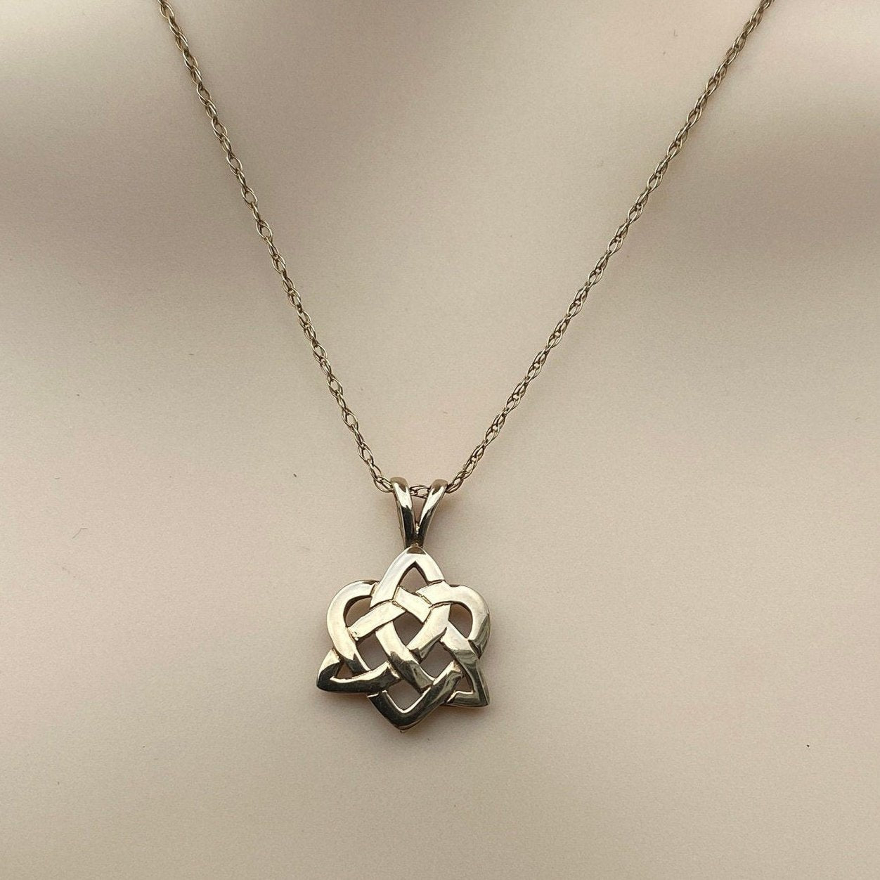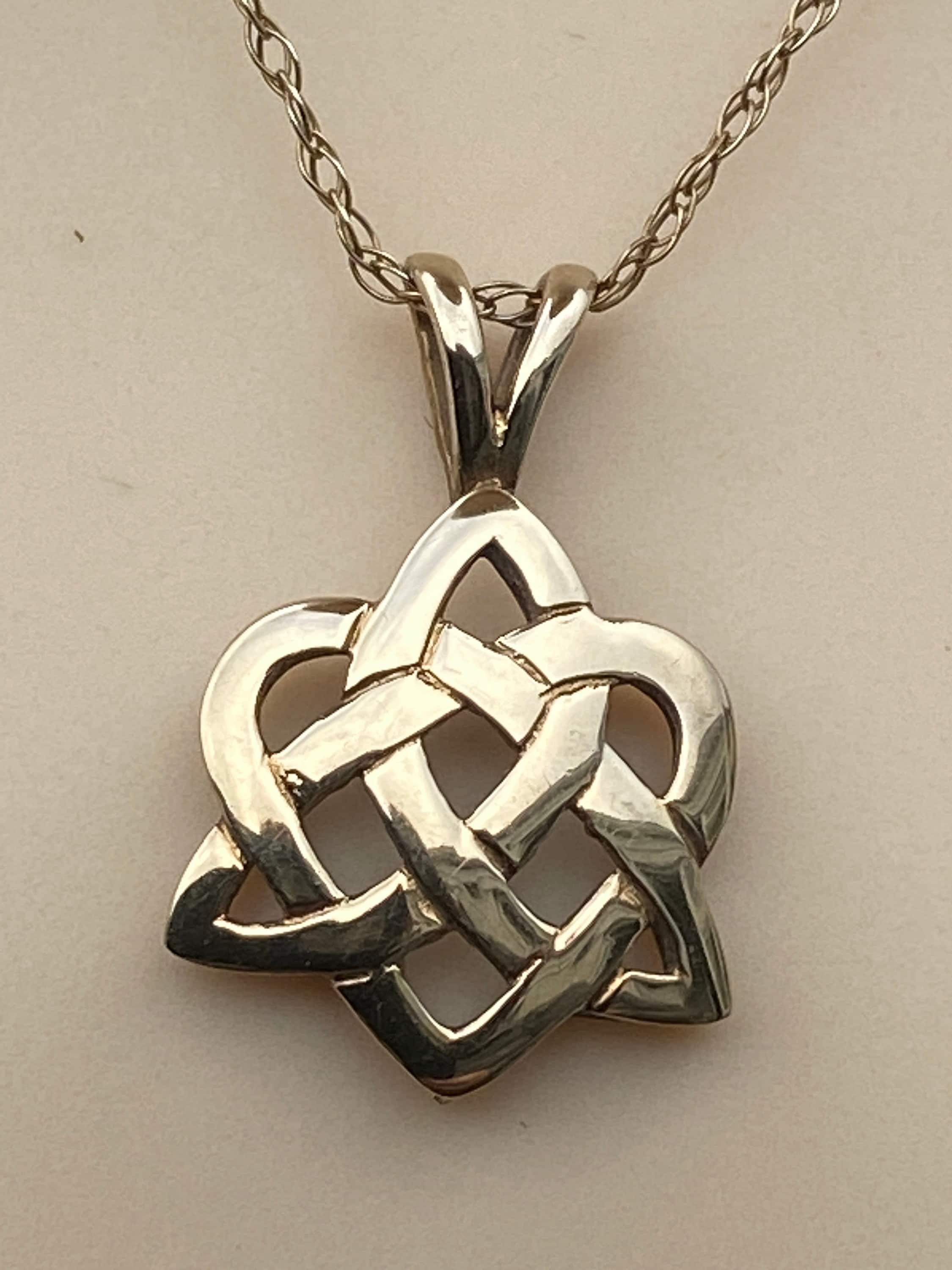 A beautiful 9ct gold Celtic inspired Eternal love knot pendant suspended from a 9ct 18 inch chain.