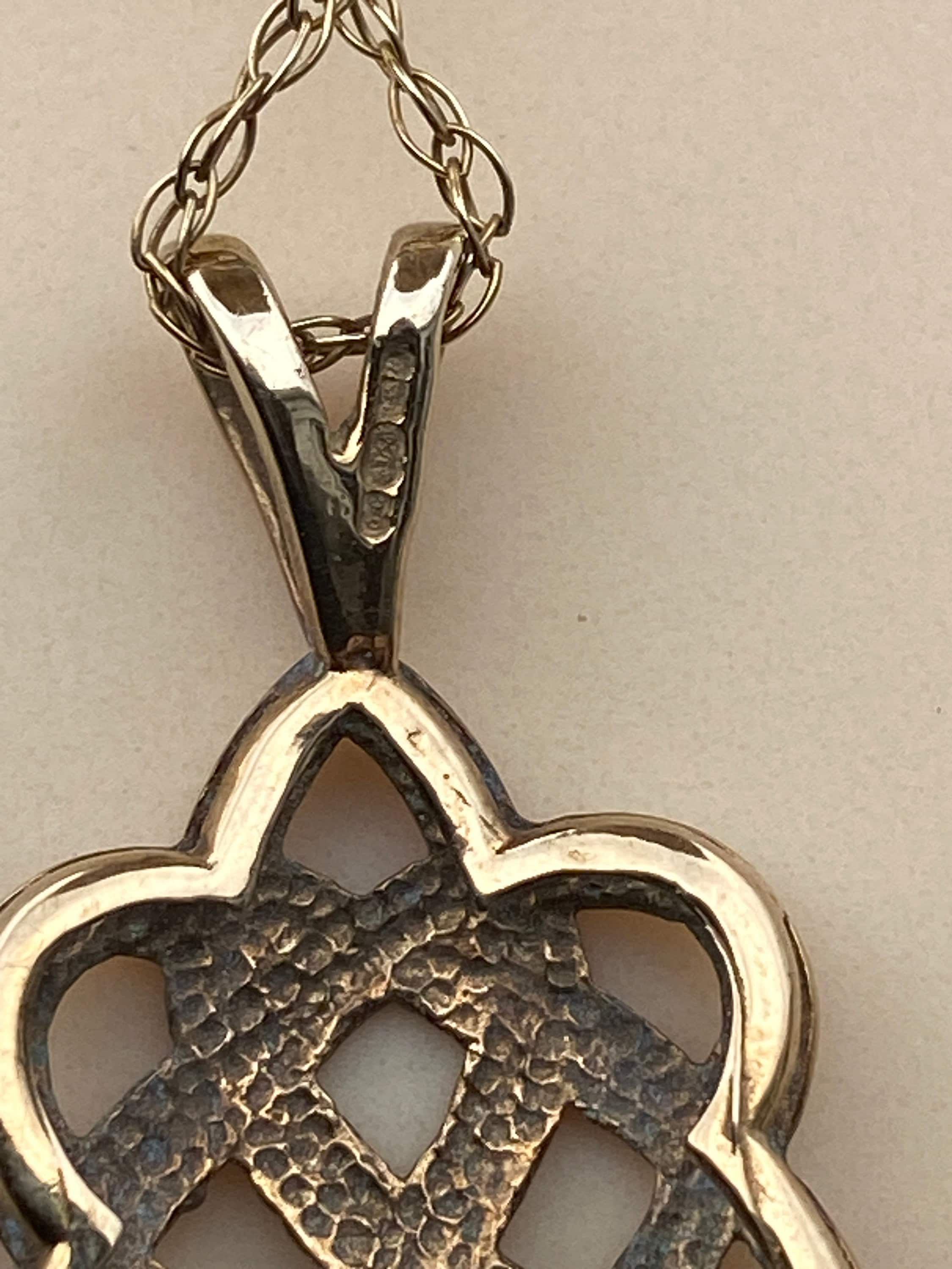 Full hallmarks to the pendant for Birmingham 9ct gold.
