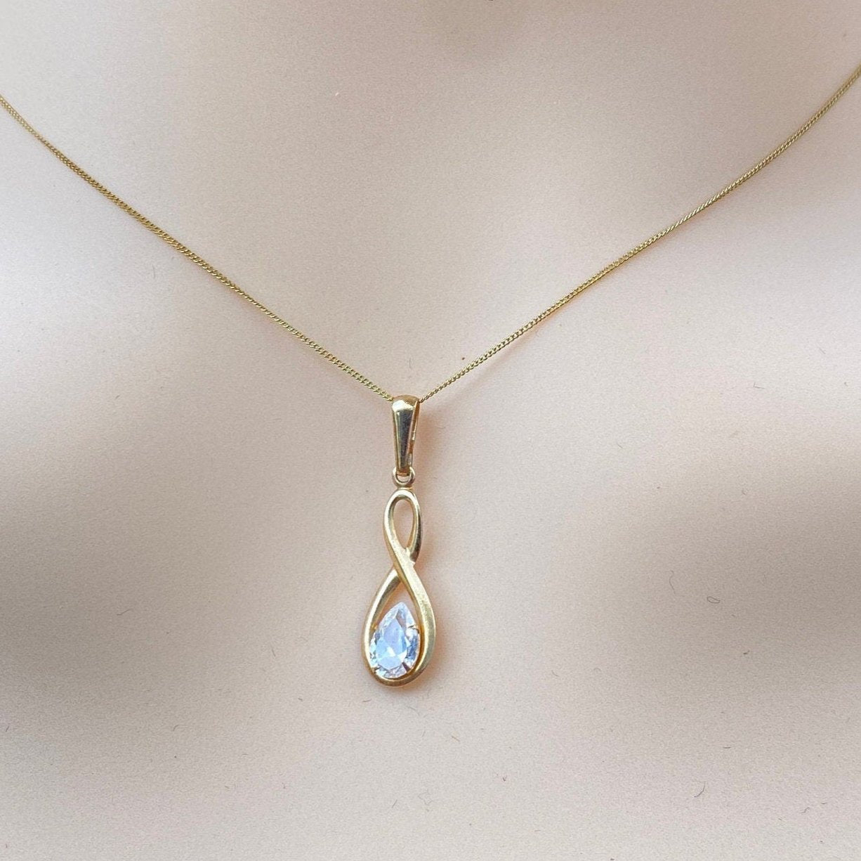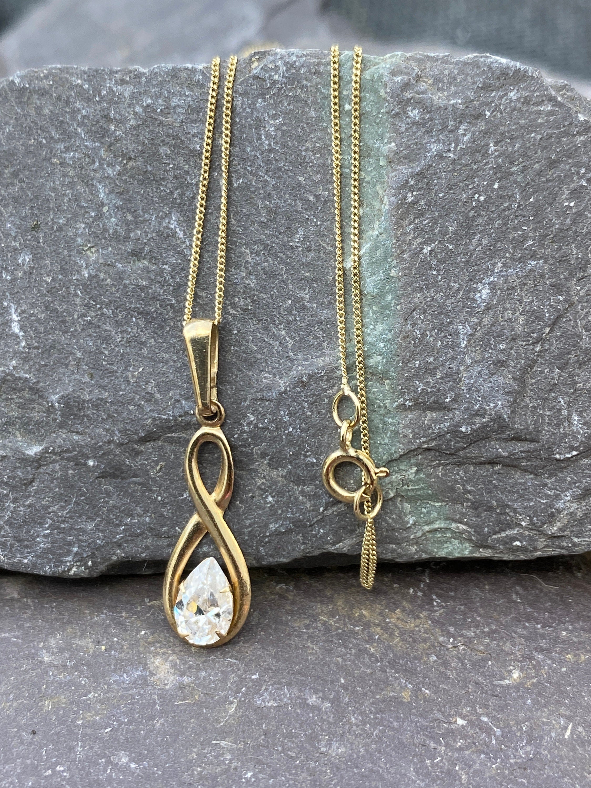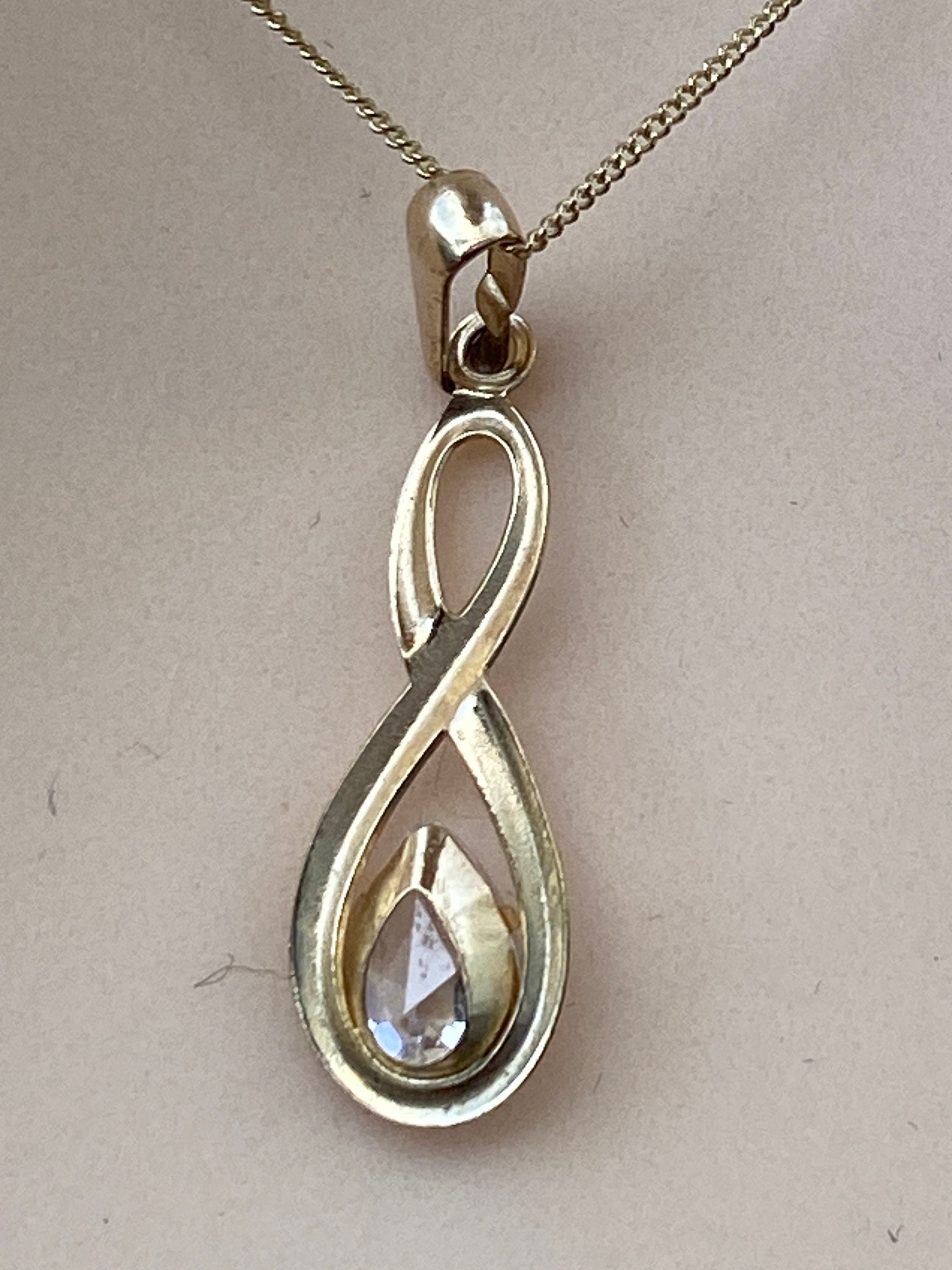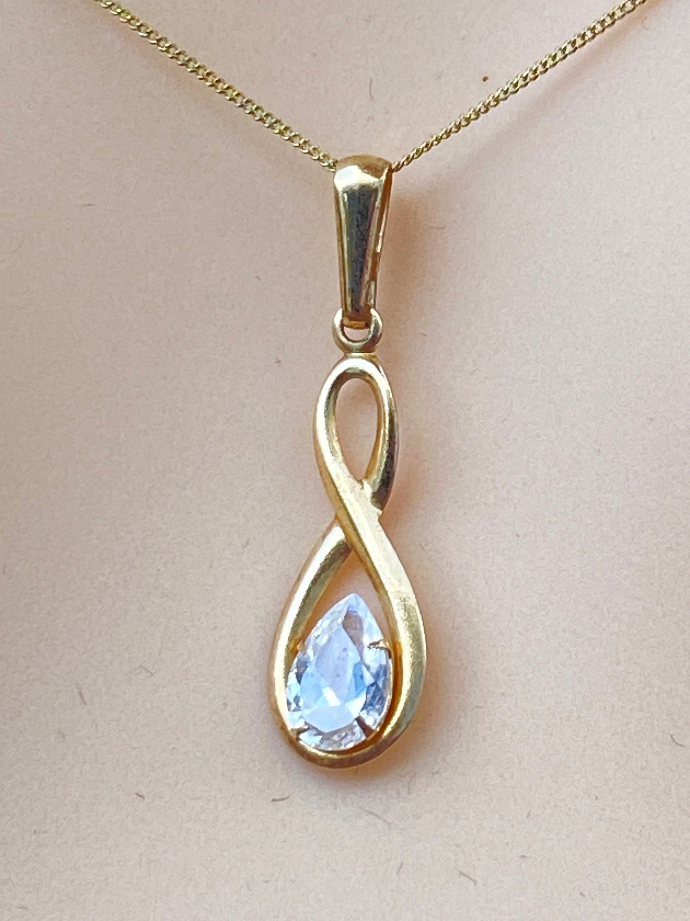 A fine and dainty 9ct gold pendant set with a pear shaped Cubic Zirconia