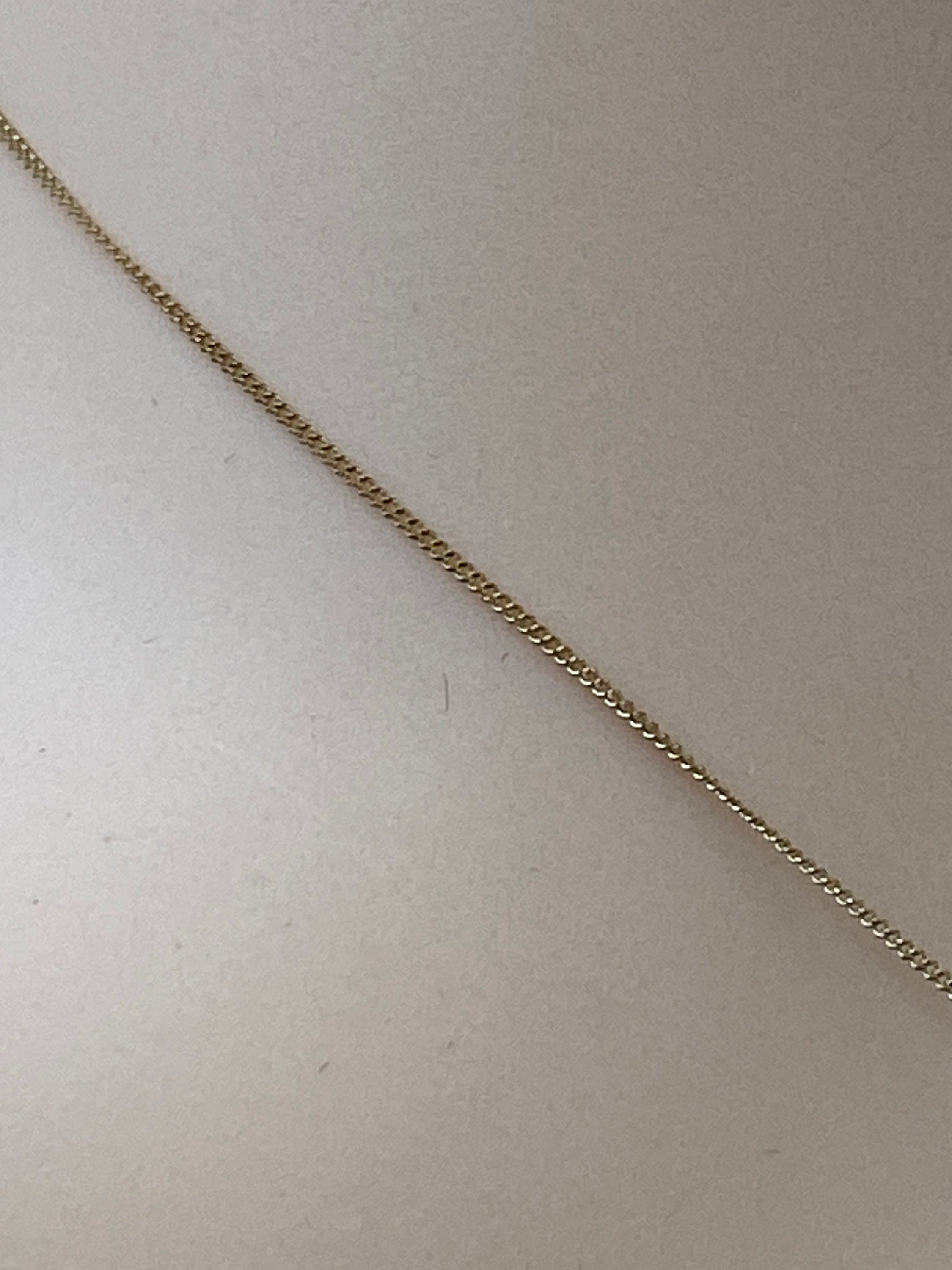 Suspended from a very fine 16 inch curb link chain with bolt ring clasp