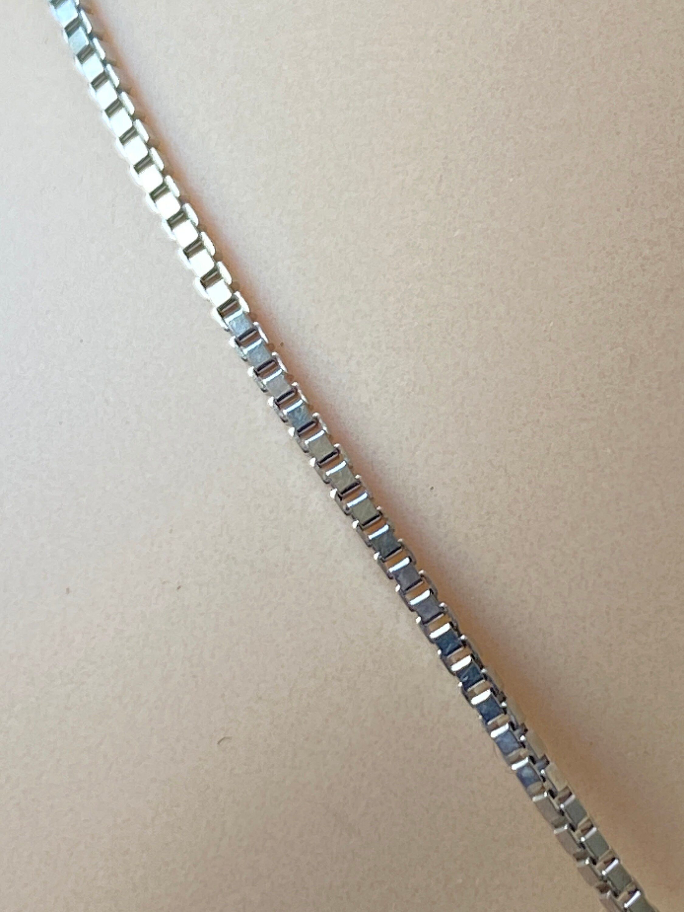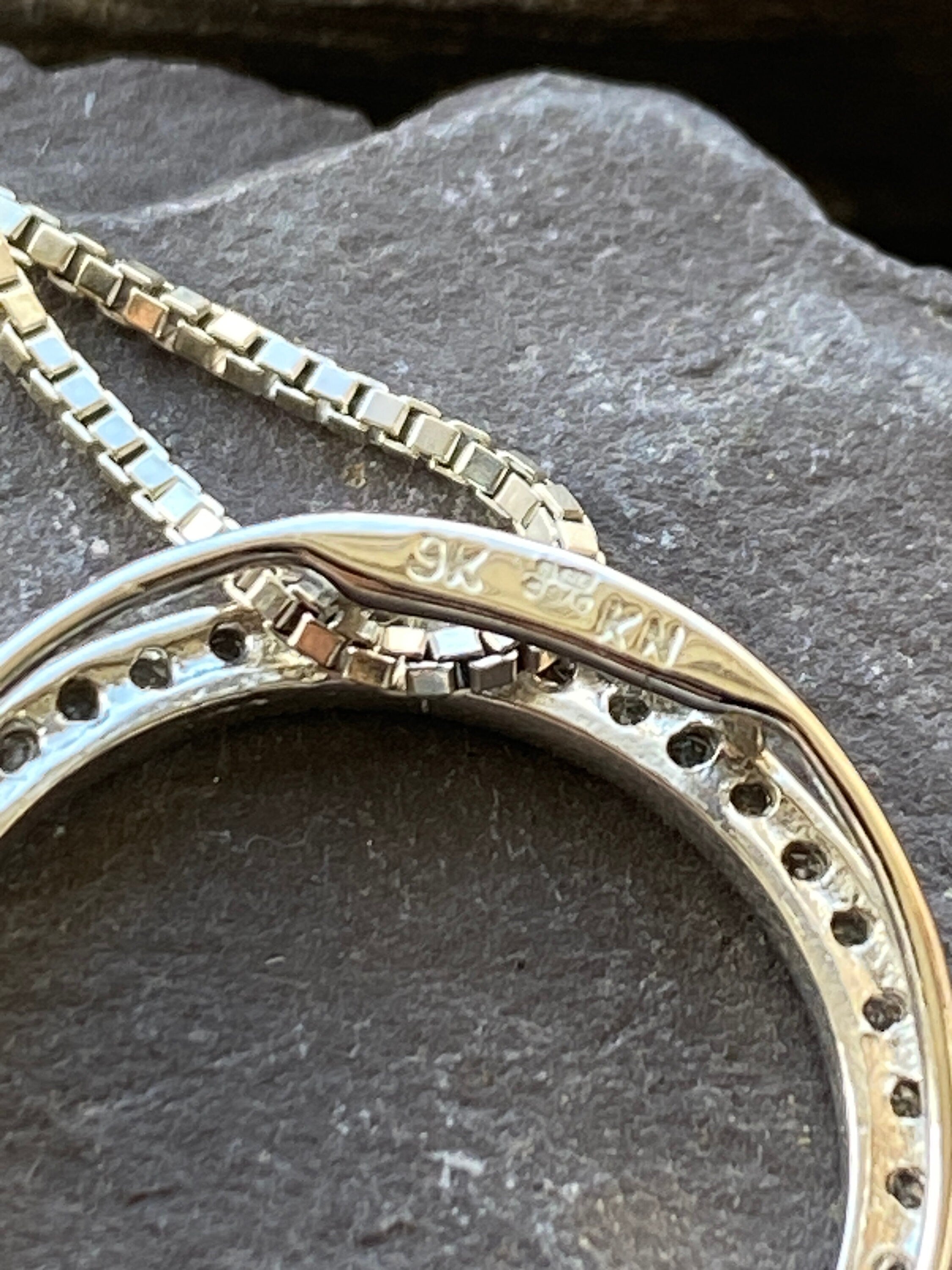 Suspended from a 9ct white gold box link chain- 18 inches long.