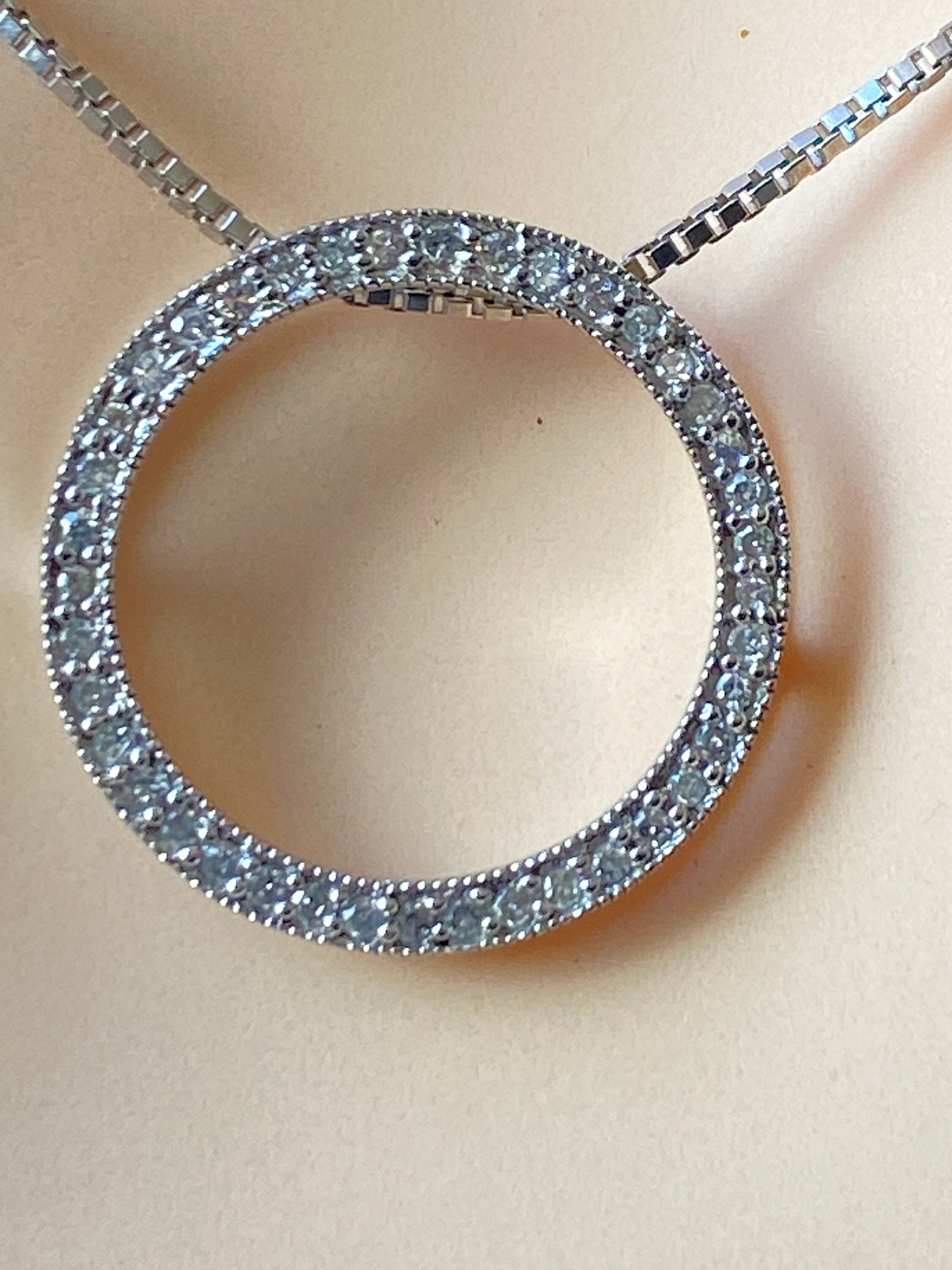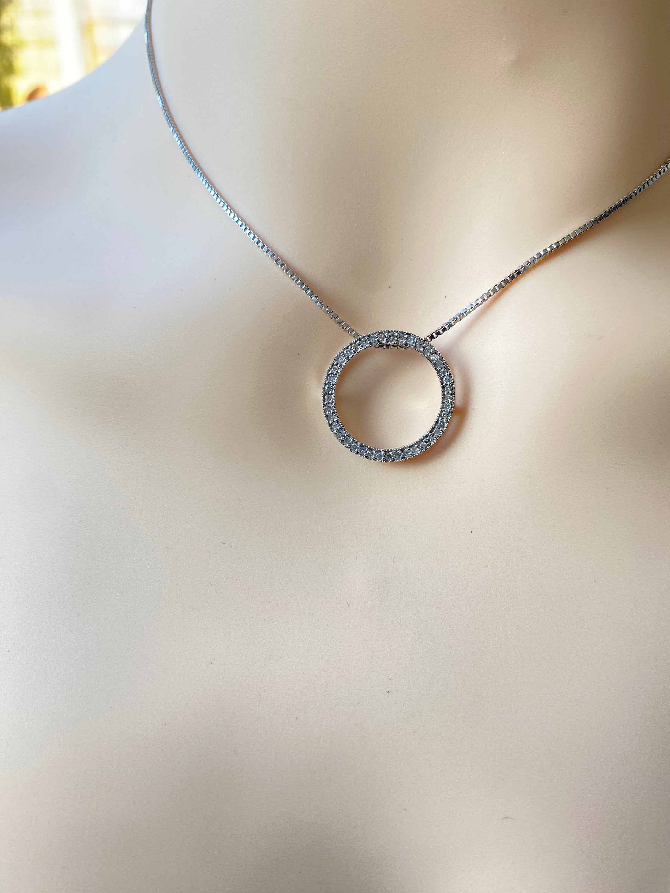 A very pretty 9ct white gold circular pendant set with Diamonds