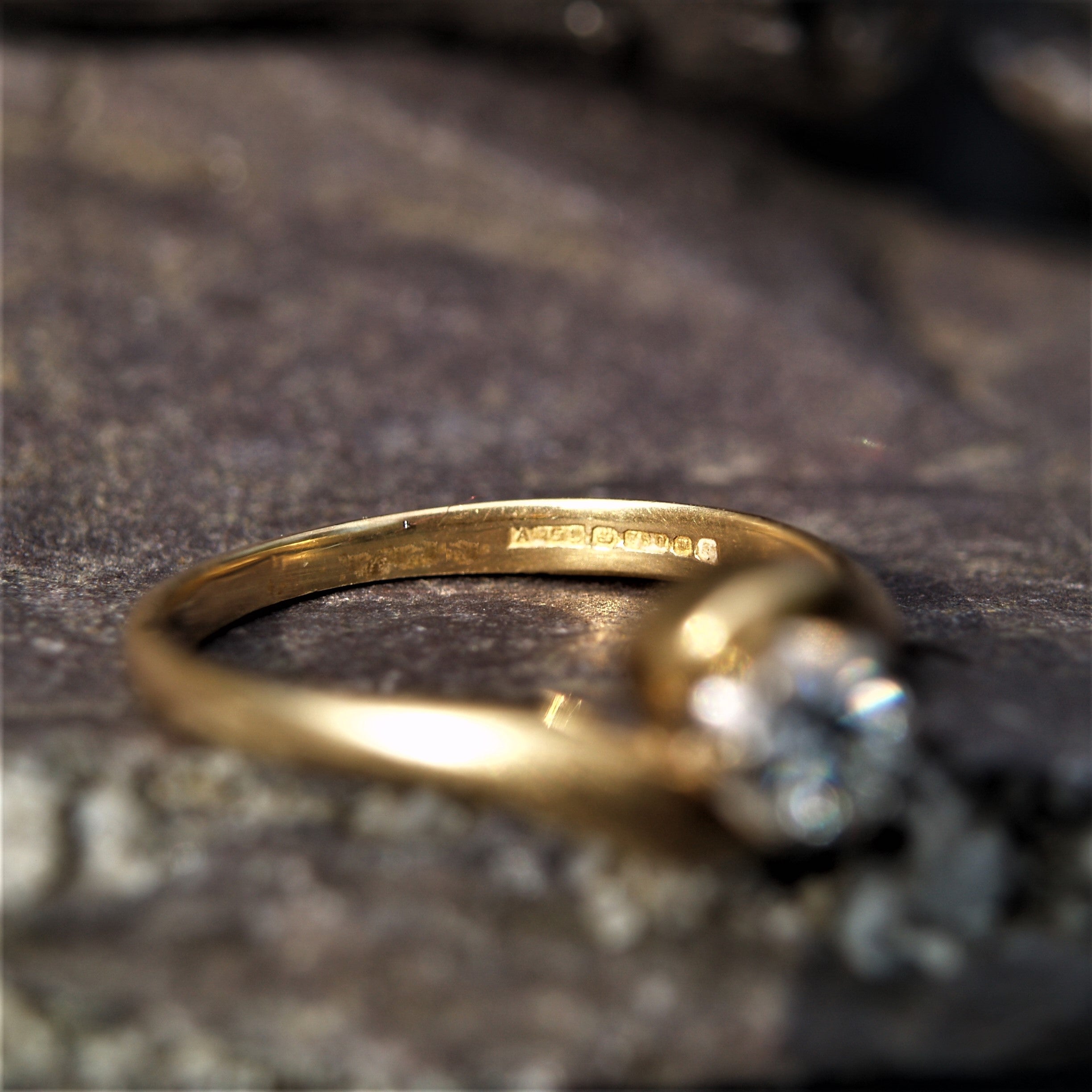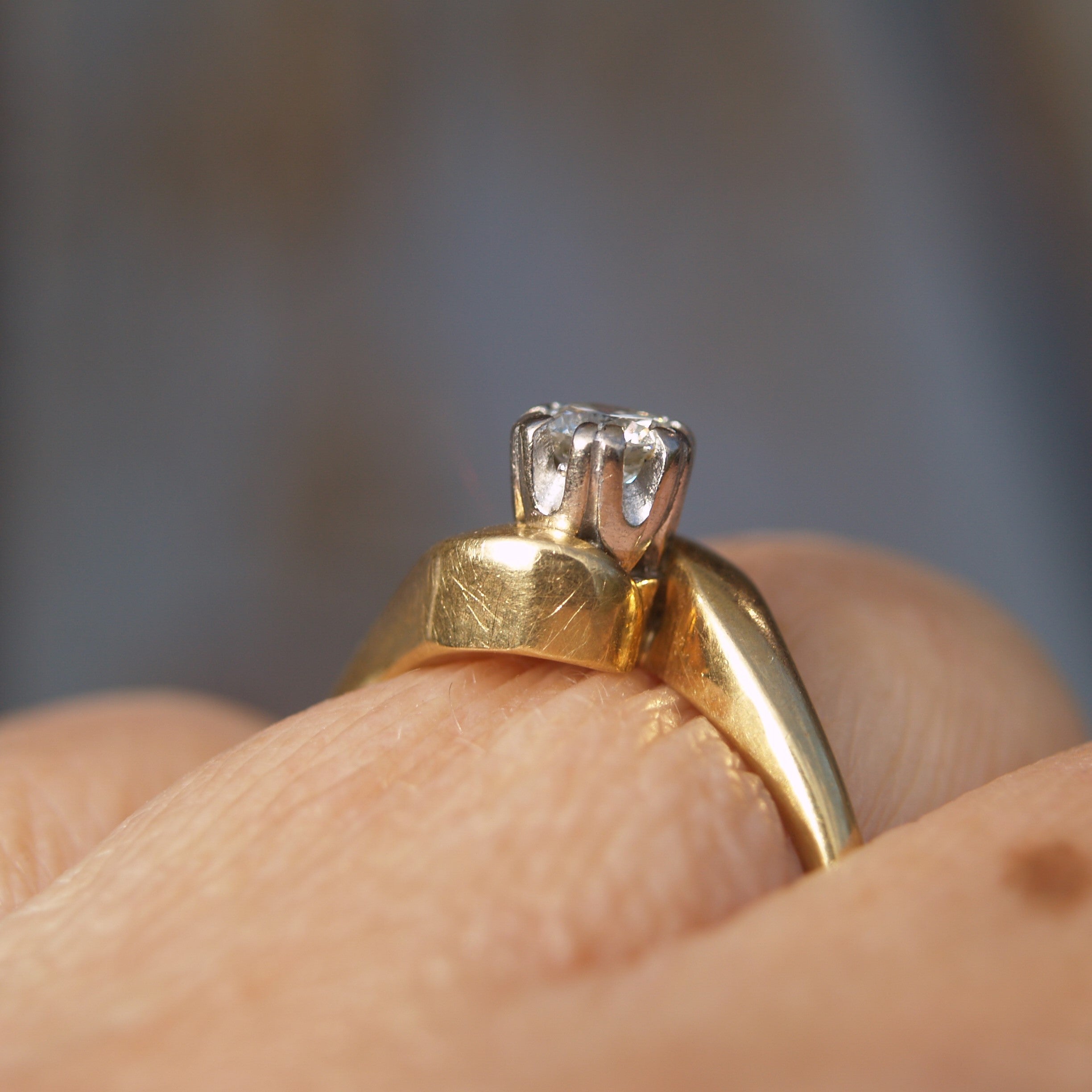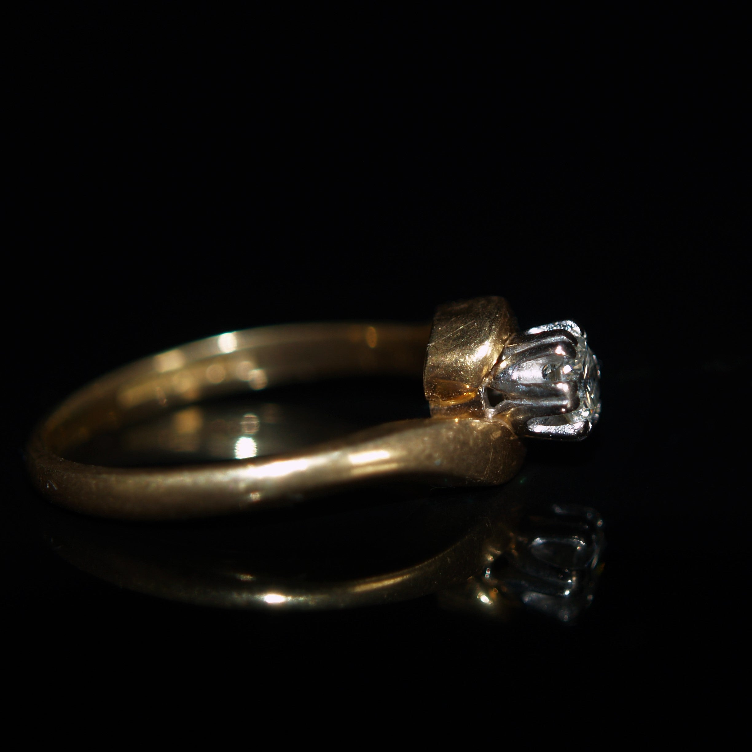 A heavy 18ct yellow gold ring set with a solitaire Diamond of 0.25ct. Weight 3.81tg. Finger size M (uk) or Size 6 (usa).