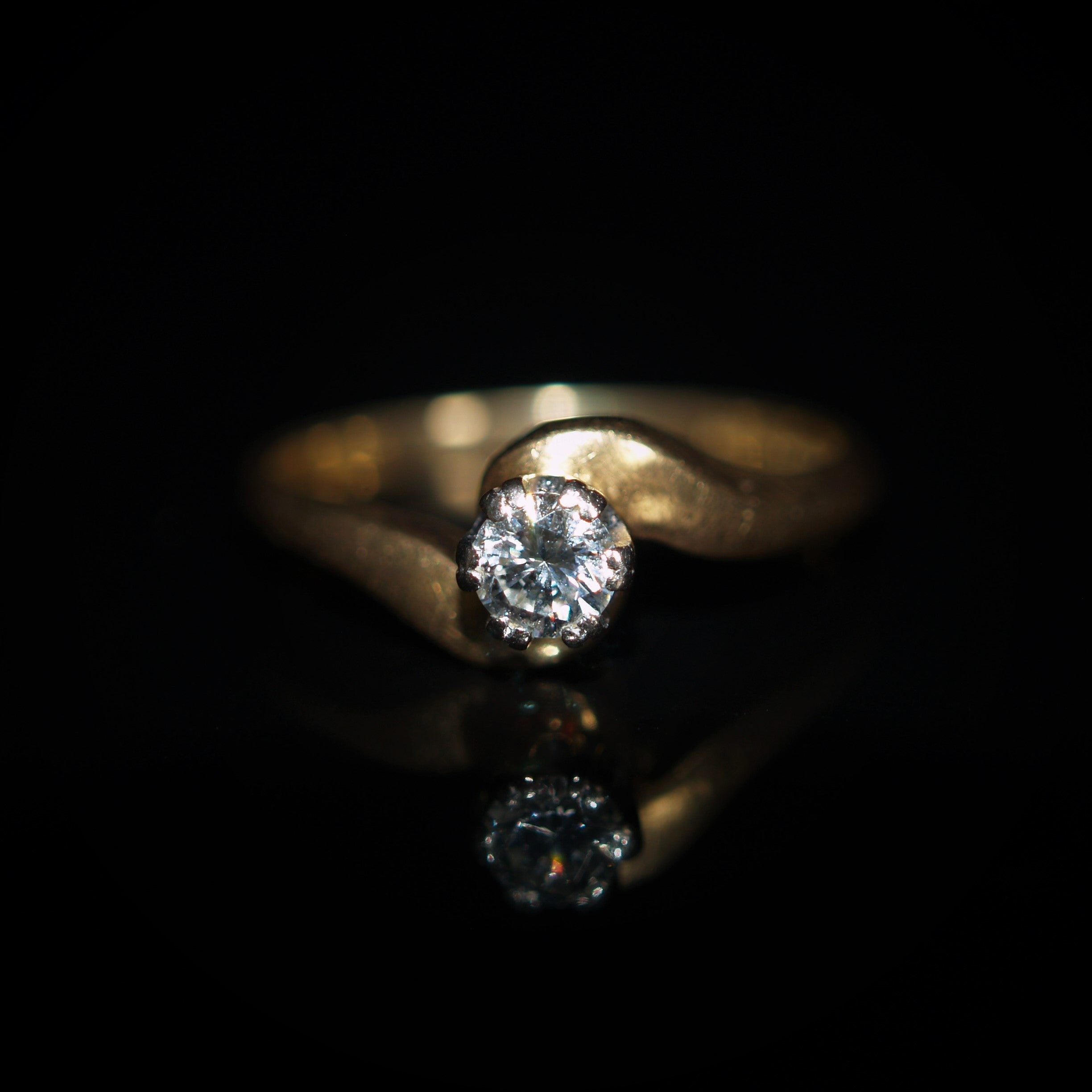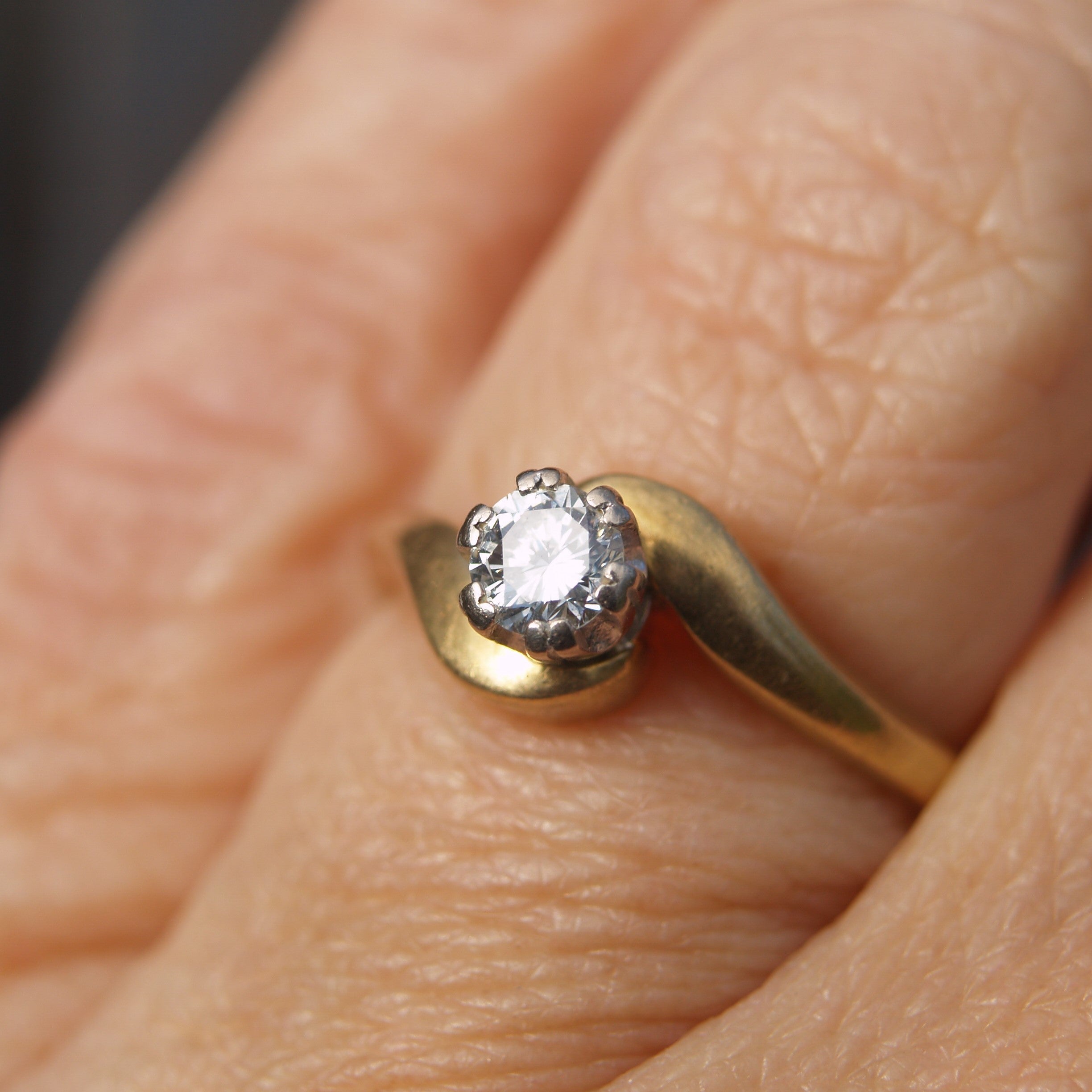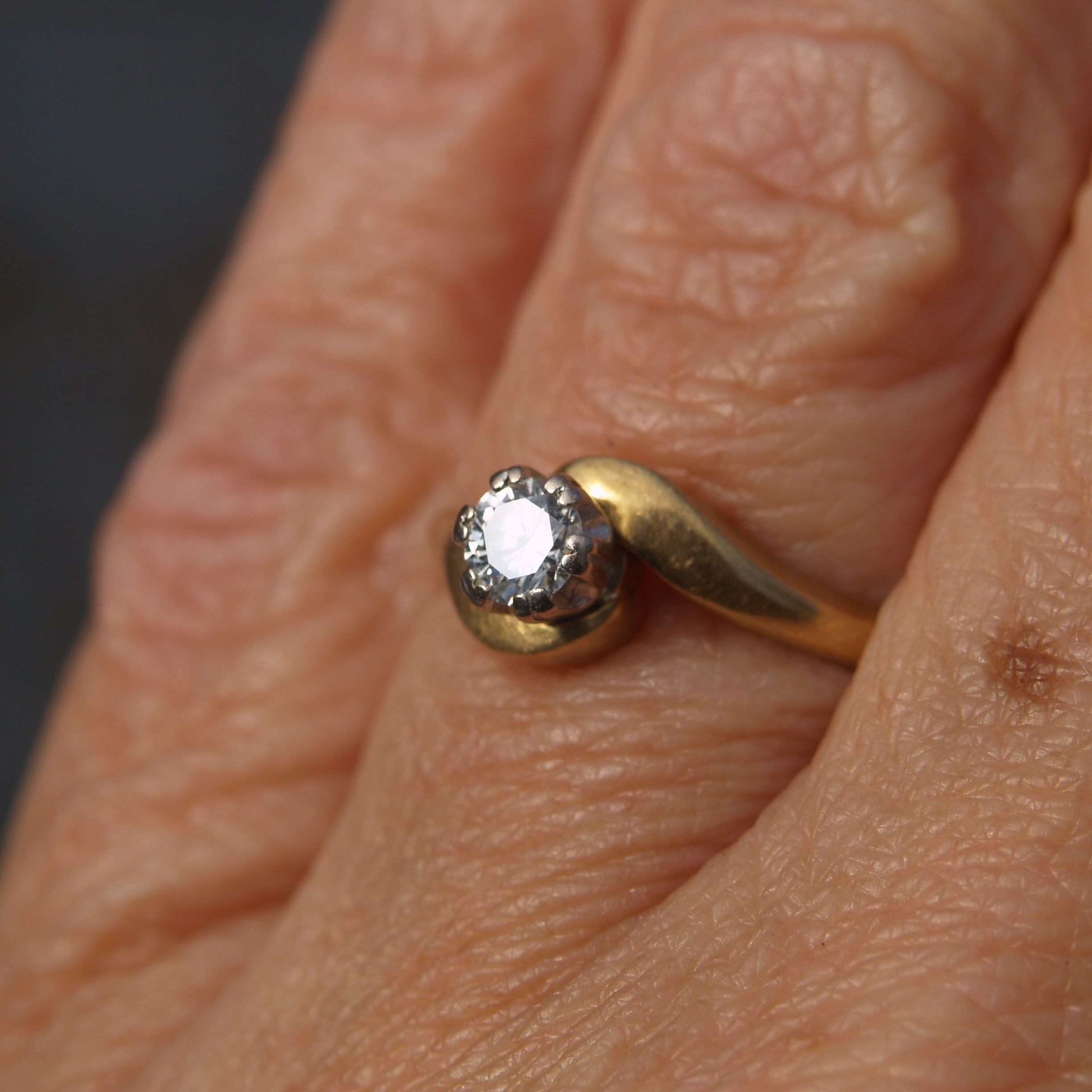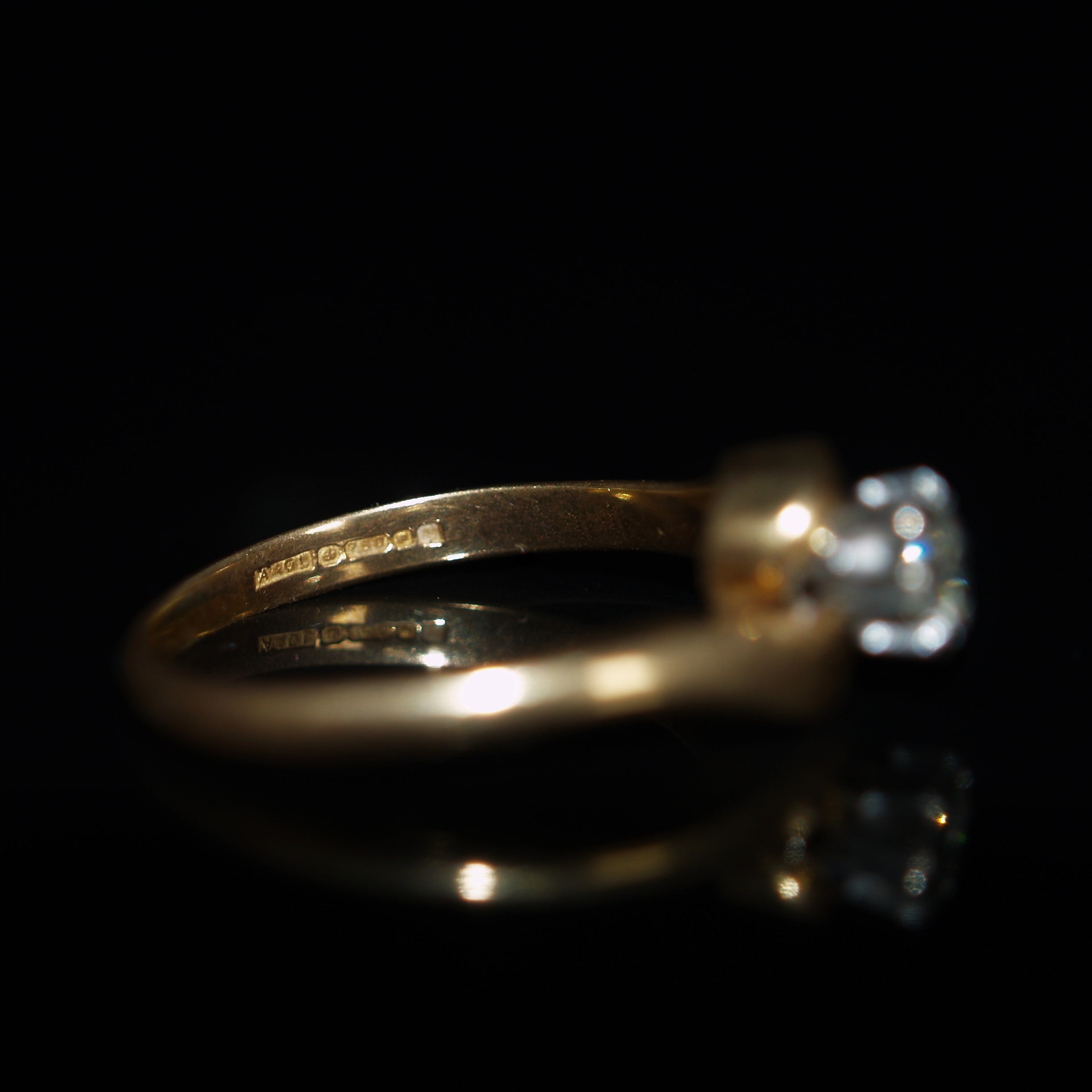 A heavy 18ct yellow gold ring set with a solitaire Diamond of 0.25ct. Weight 3.81tg. Finger size M (uk) or Size 6 (usa).