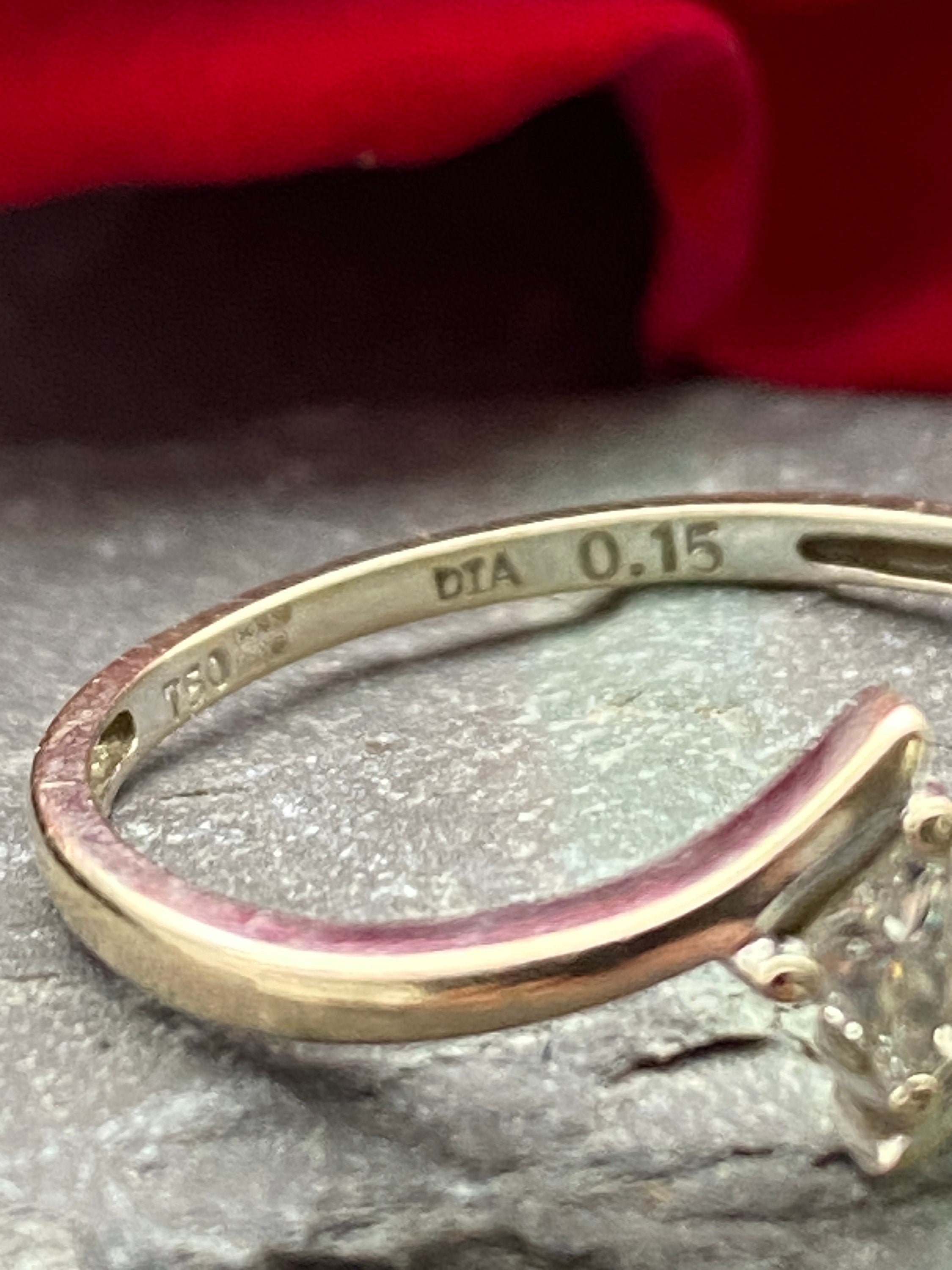 Full marks for 750 18ct gold. Stamped DIA and 0.15