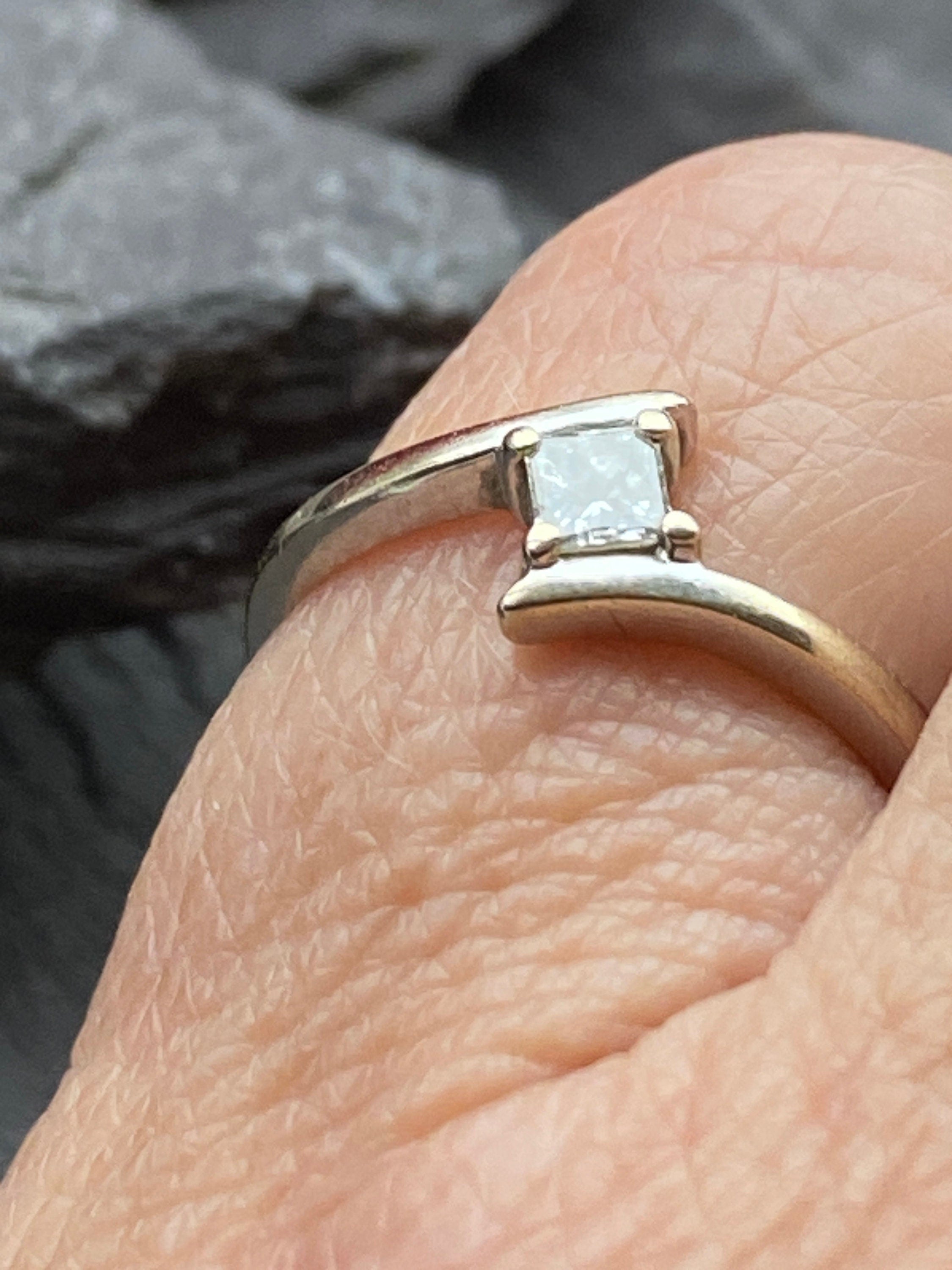 A pretty 18ct white gold engagement ring set with a princess cut Diamond of 0.15 carats.