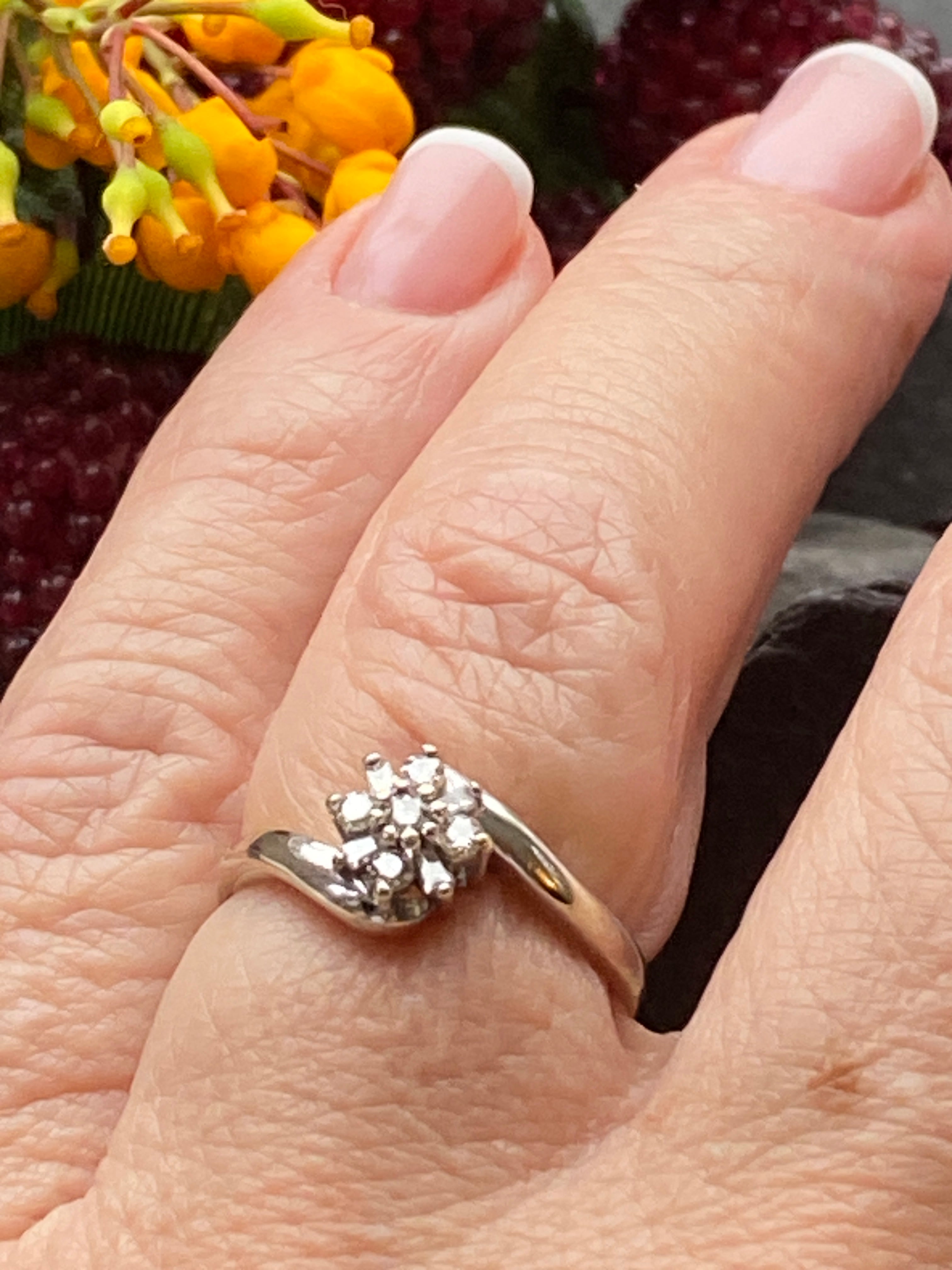 9ct White Gold Diamond Engagement Ring Size M or 6 1/4 US.