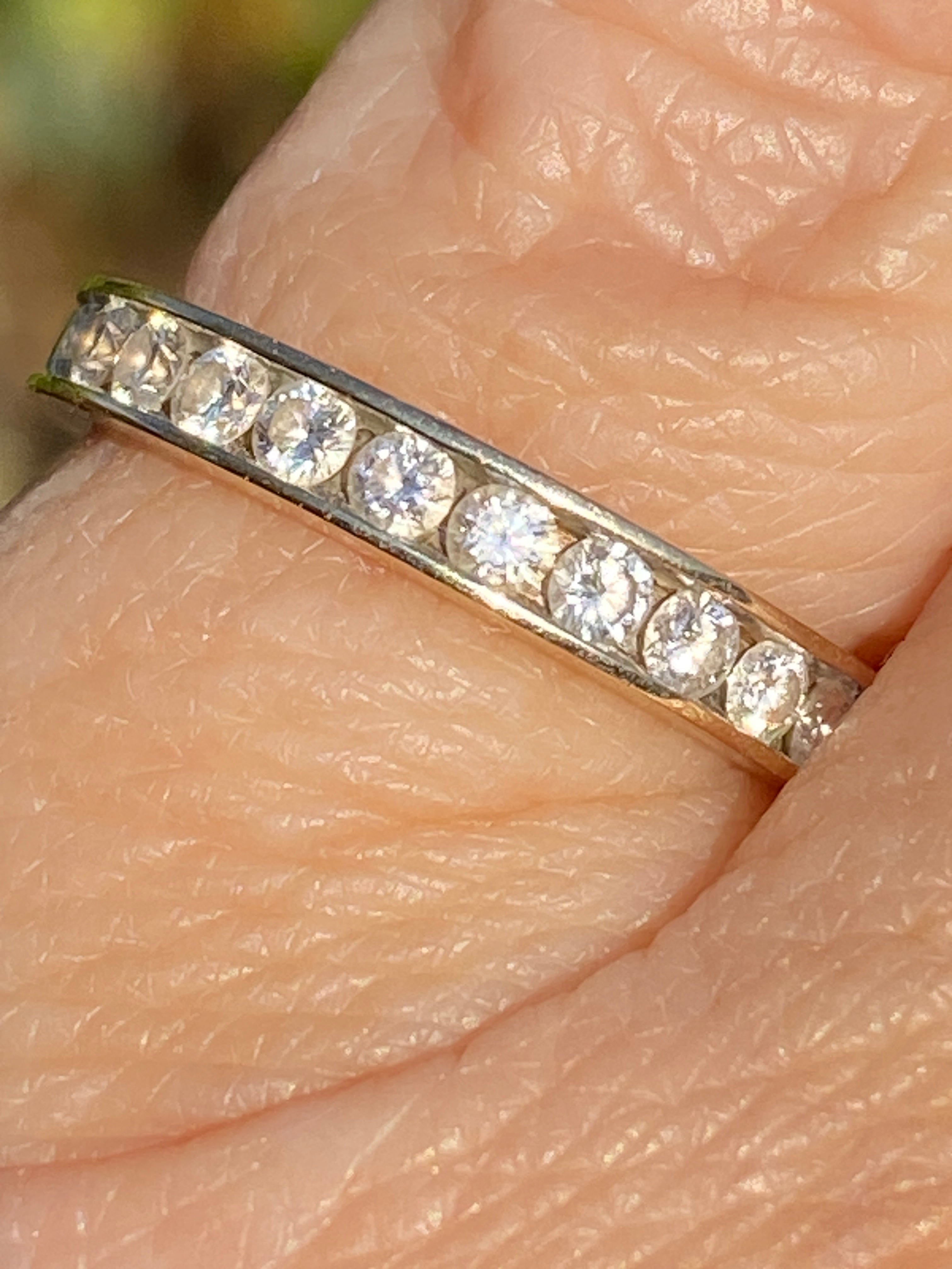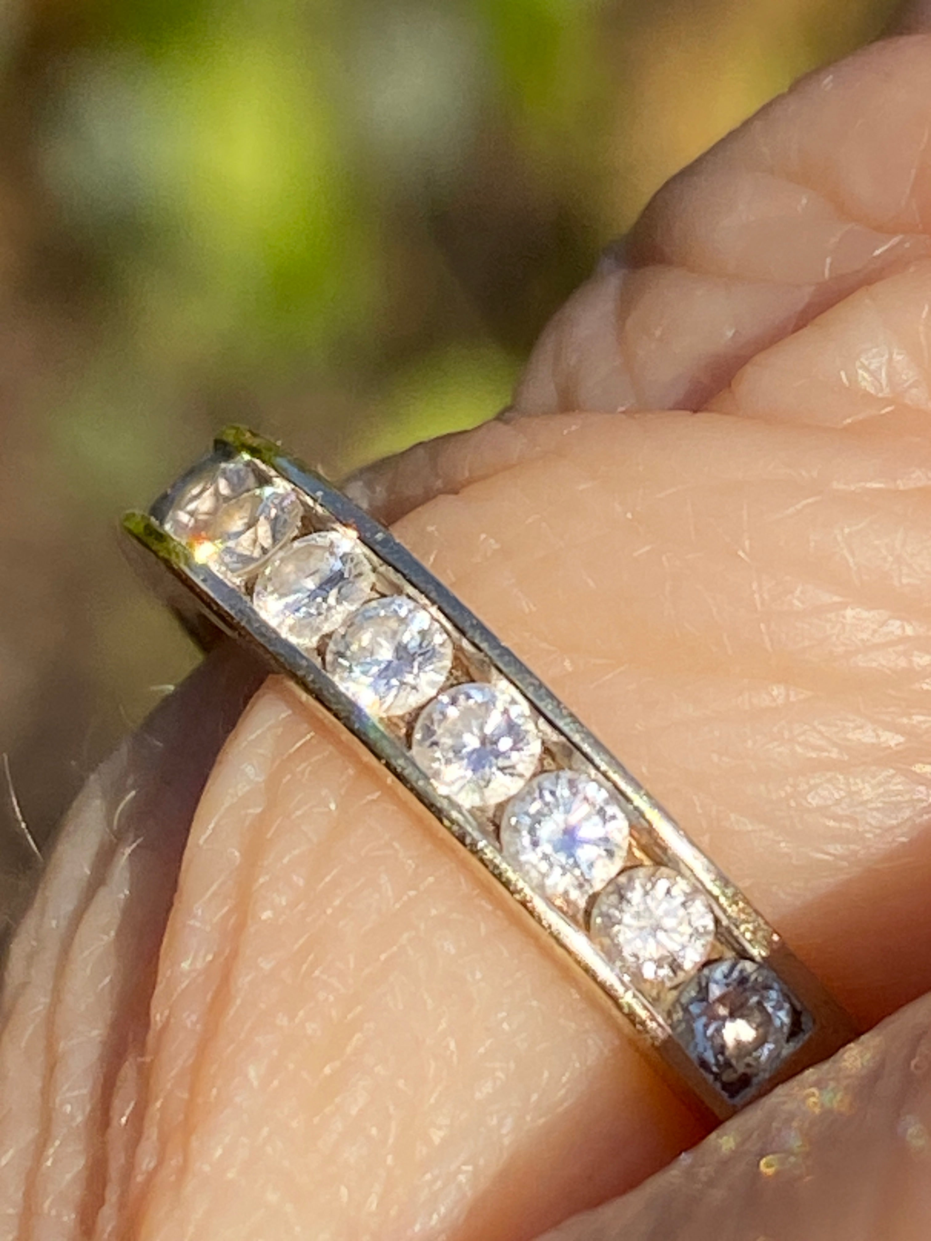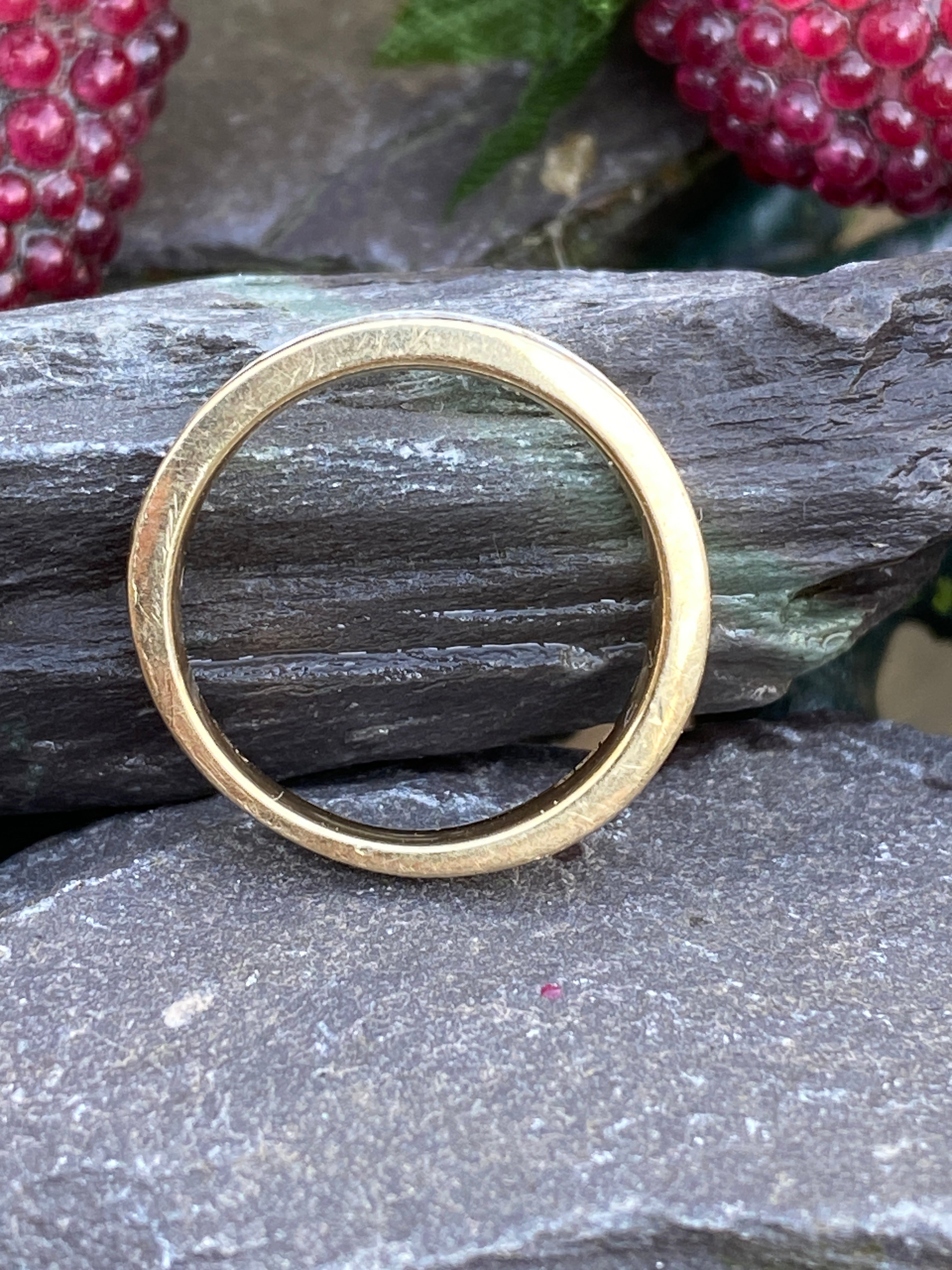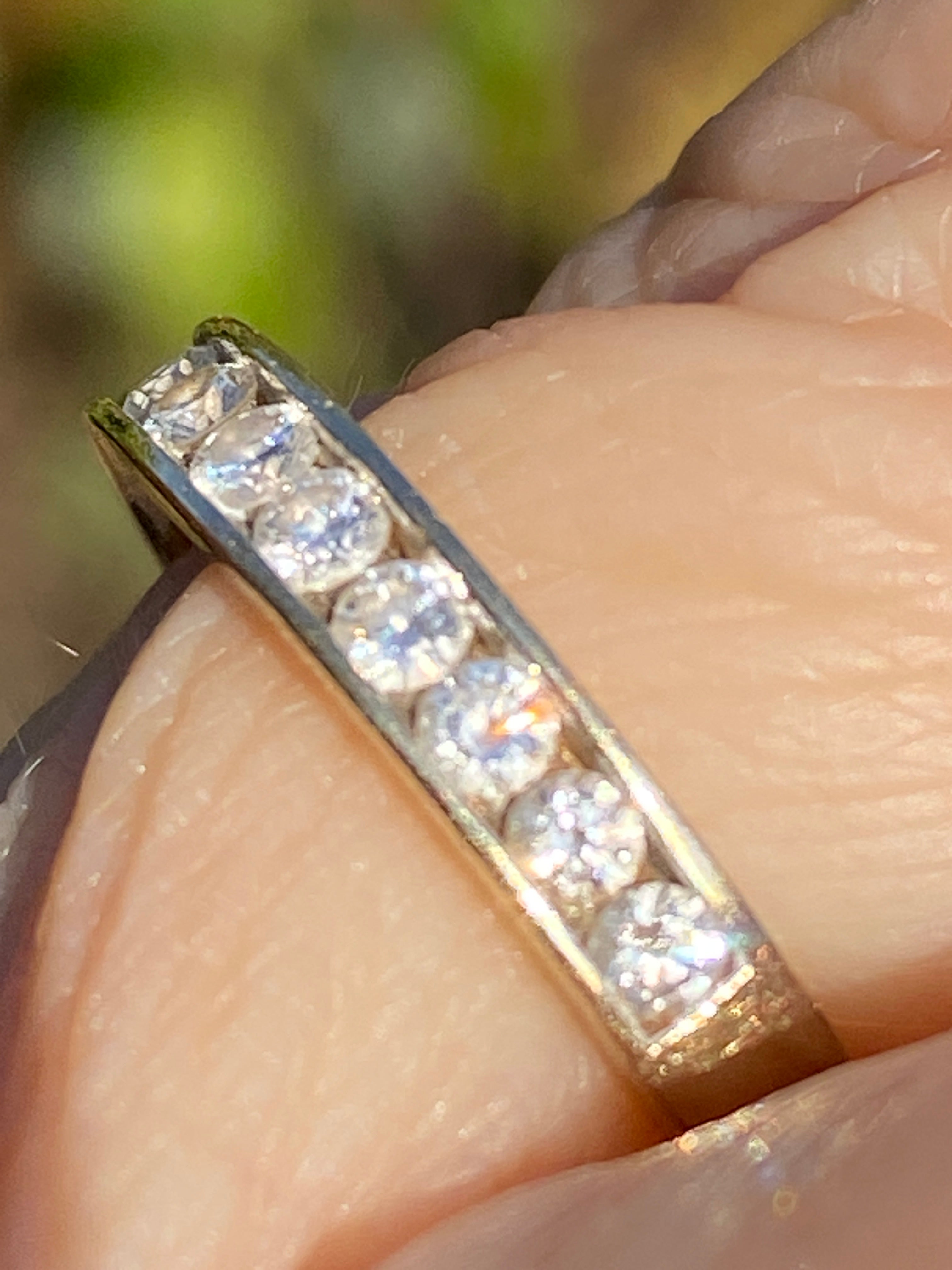A well made 9ct yellow gold ring set with fifteen round brilliant Diamonds in a channel setting.