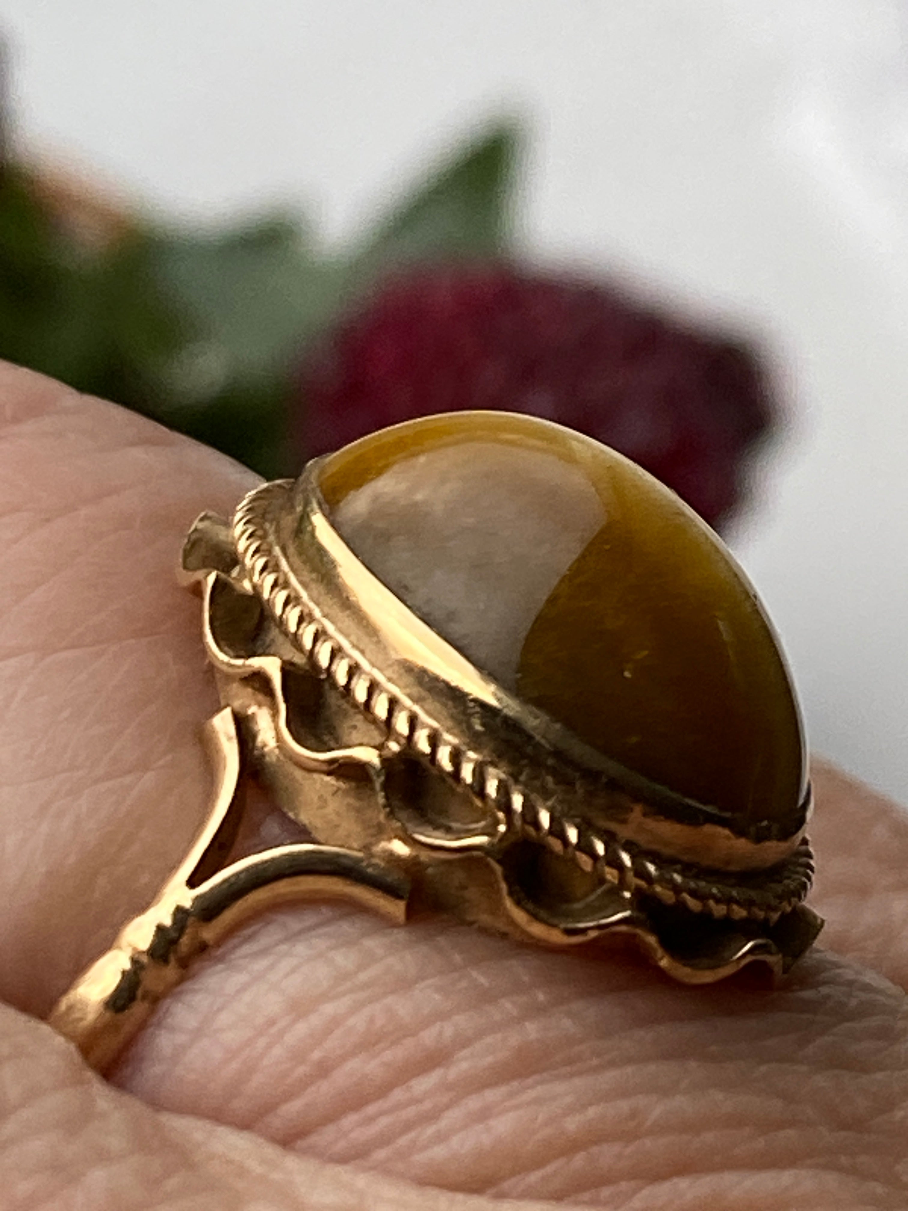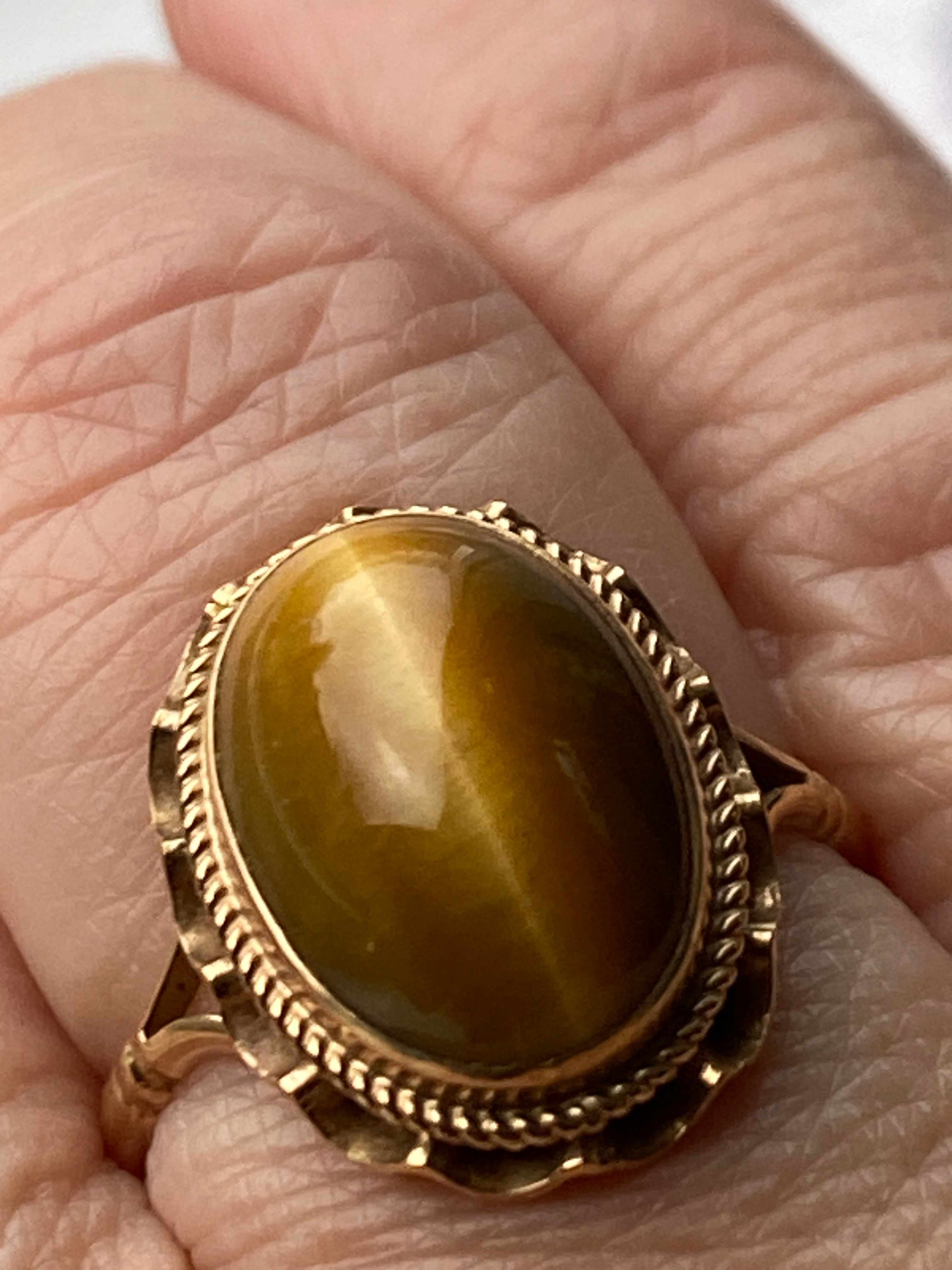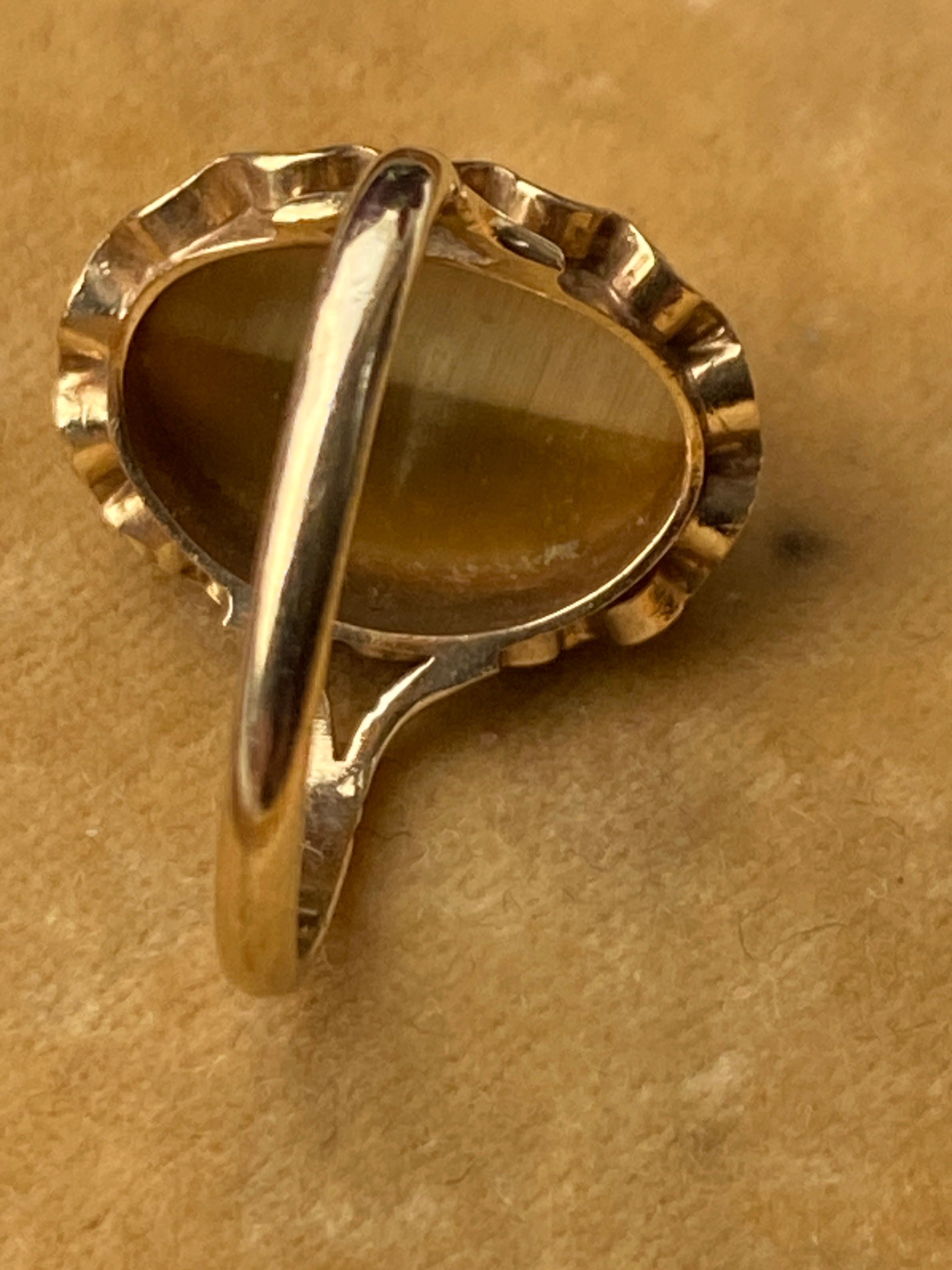 An eye catching 9ct gold ring set with a natural Tigers eye Quartz stone
